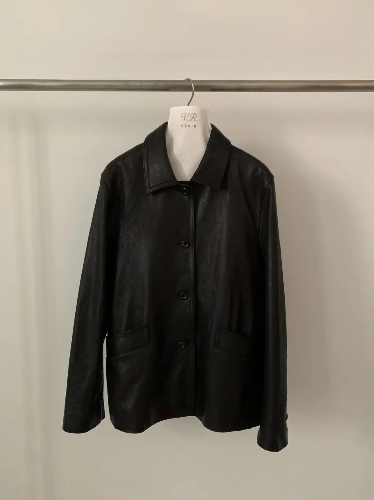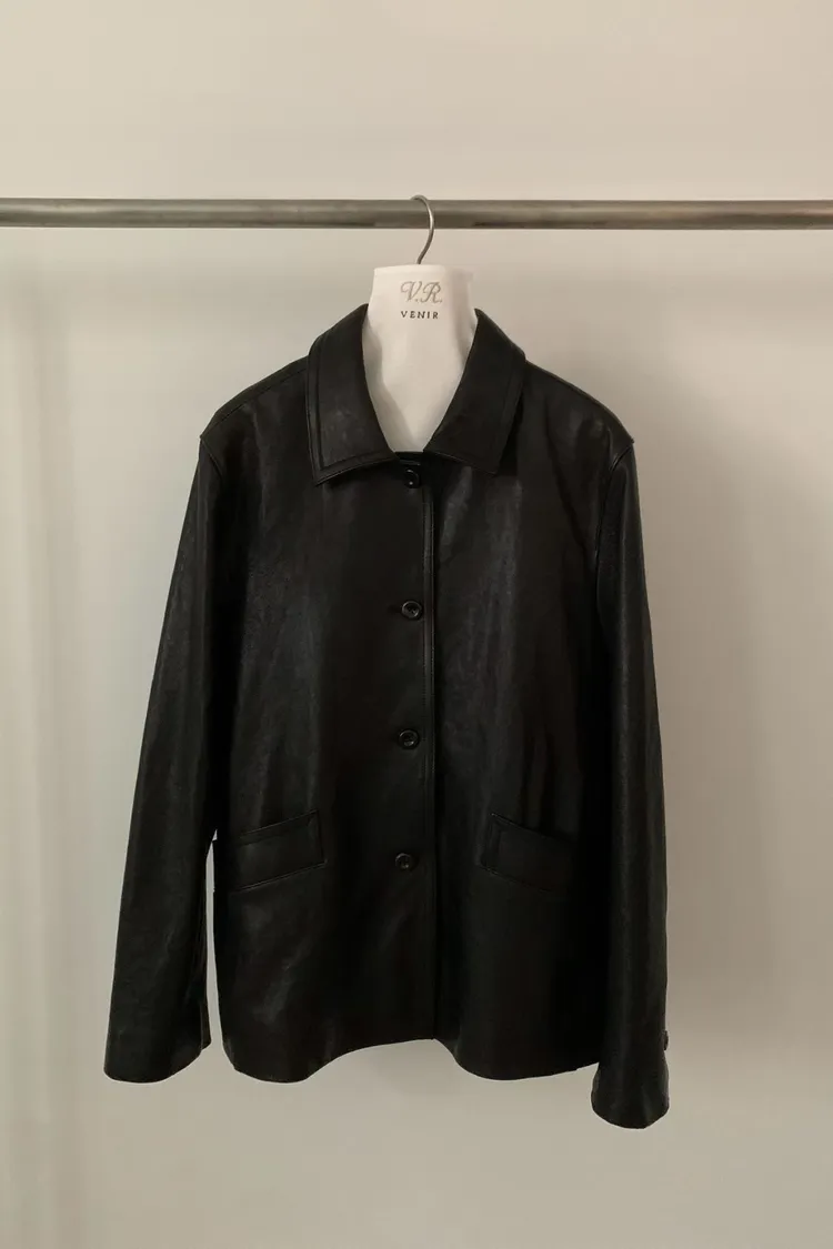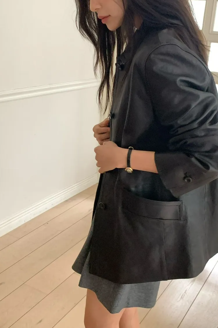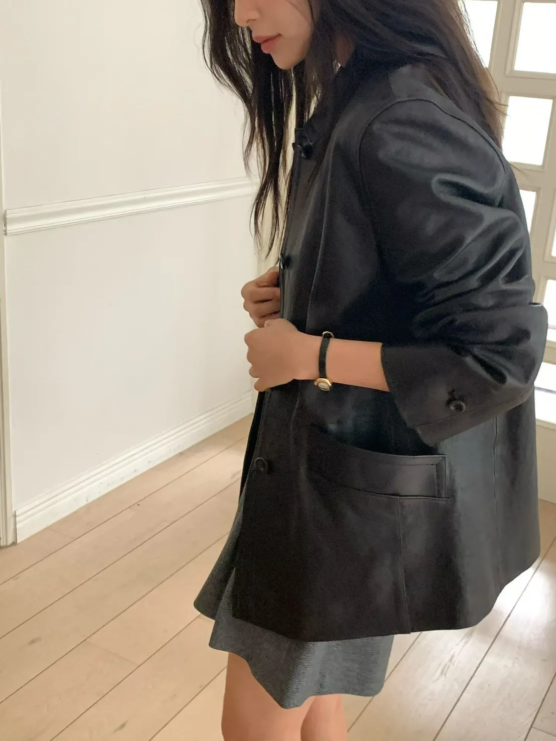 牛皮 皮革柔軟 無墊肩 釦子穿脫 有口袋 背後小金標