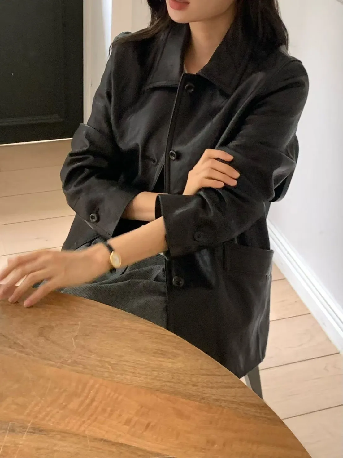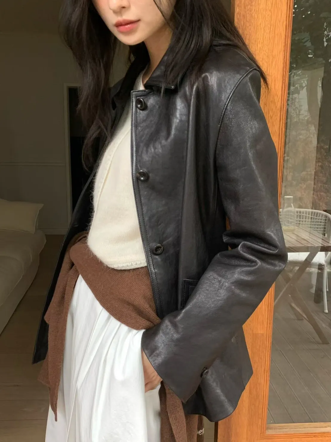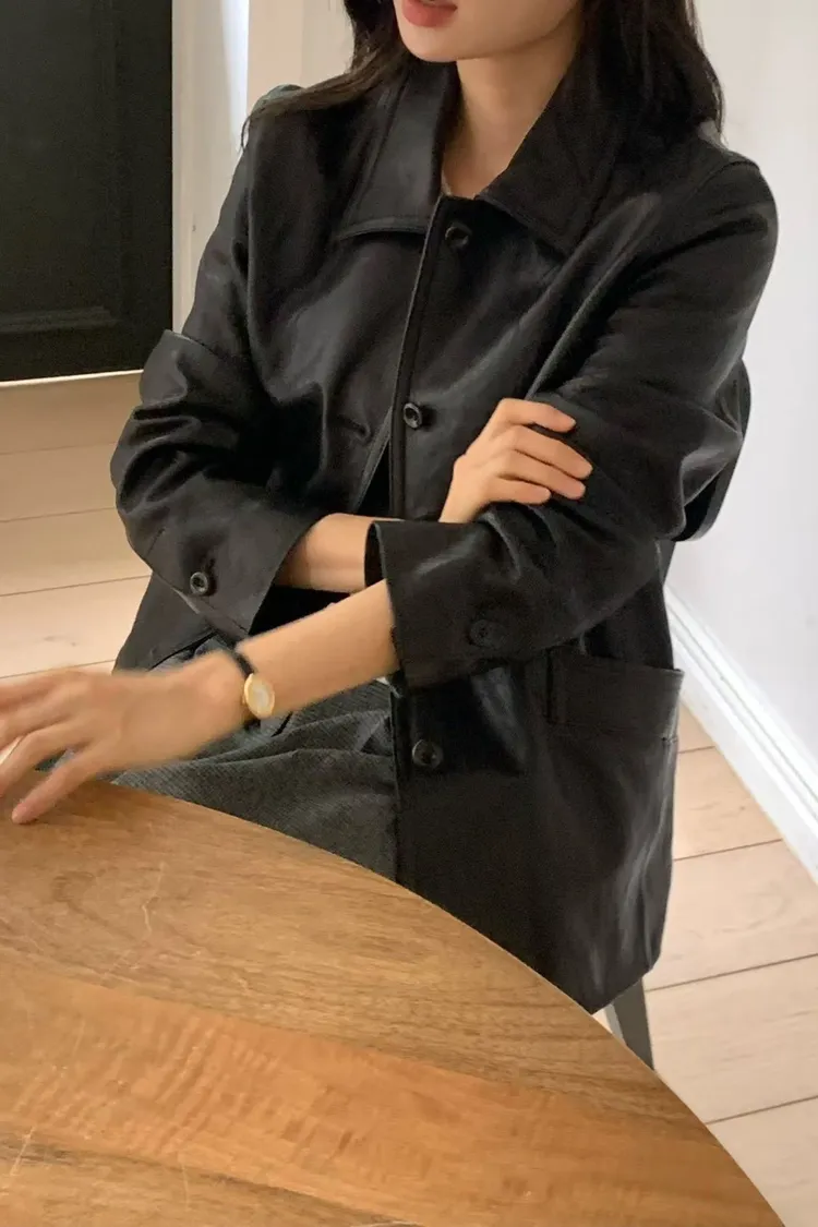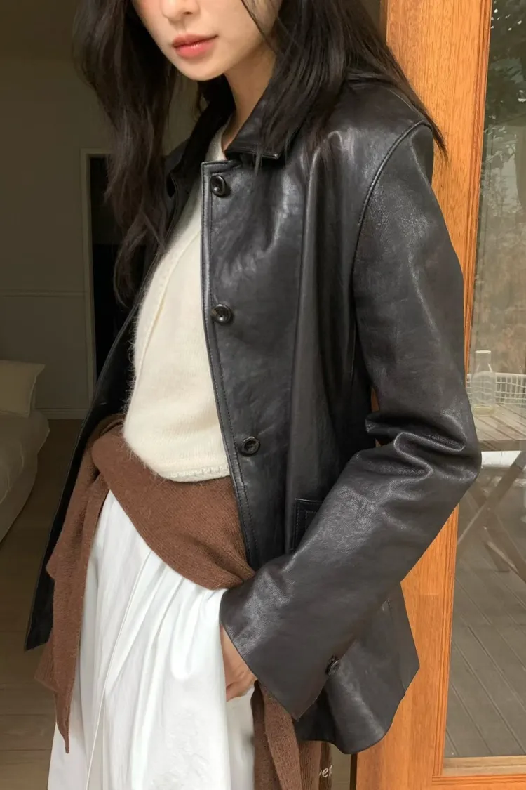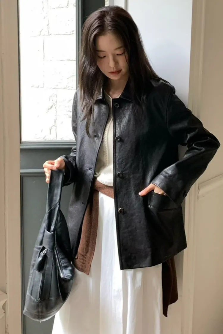 牛皮 皮革柔軟 無墊肩 釦子穿脫 有口袋 背後小金標