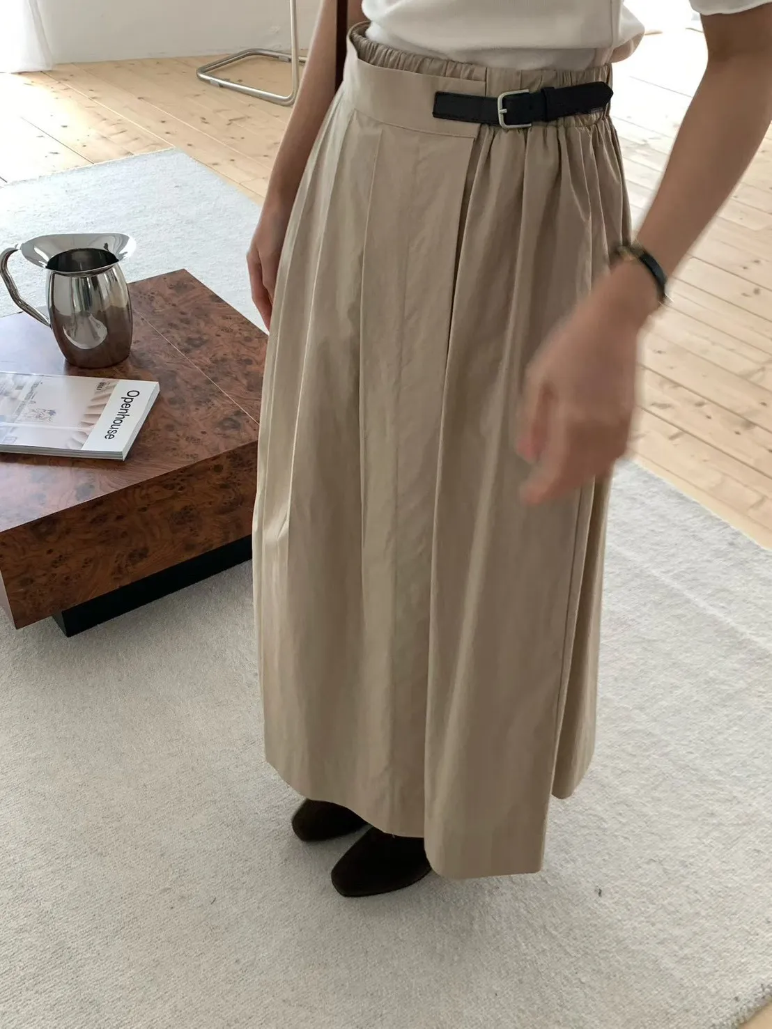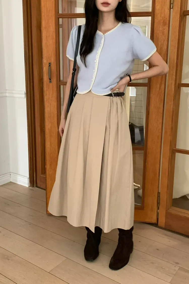 MK058設計感側腰皮革環美裙 白 黑 奶茶 官網價$1450 線上價$1420