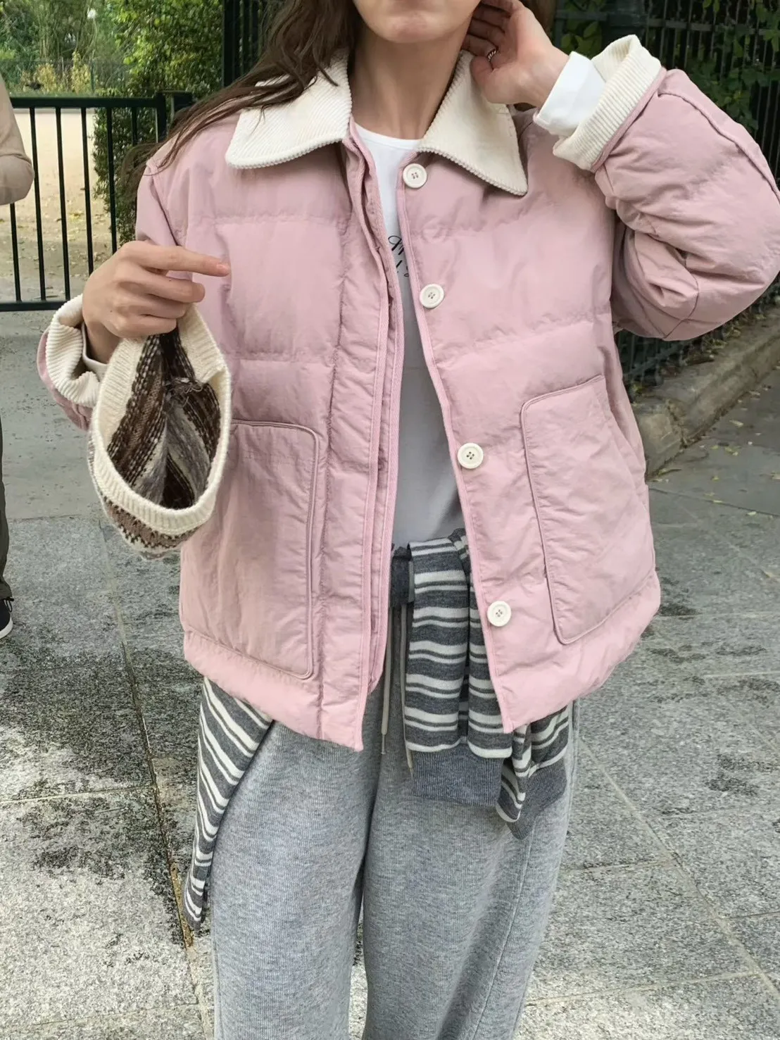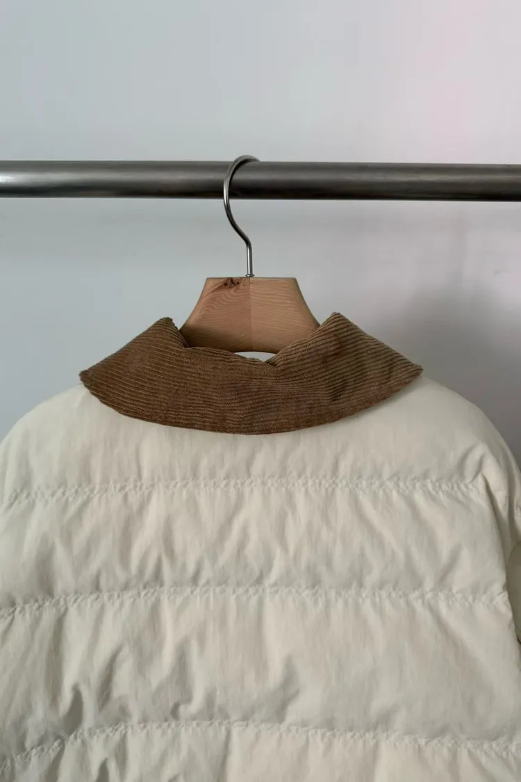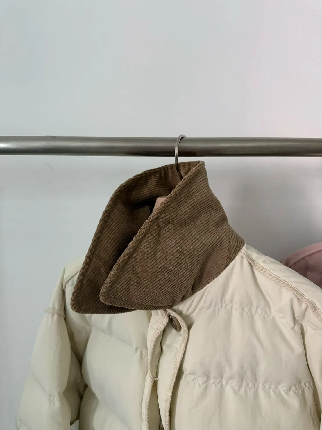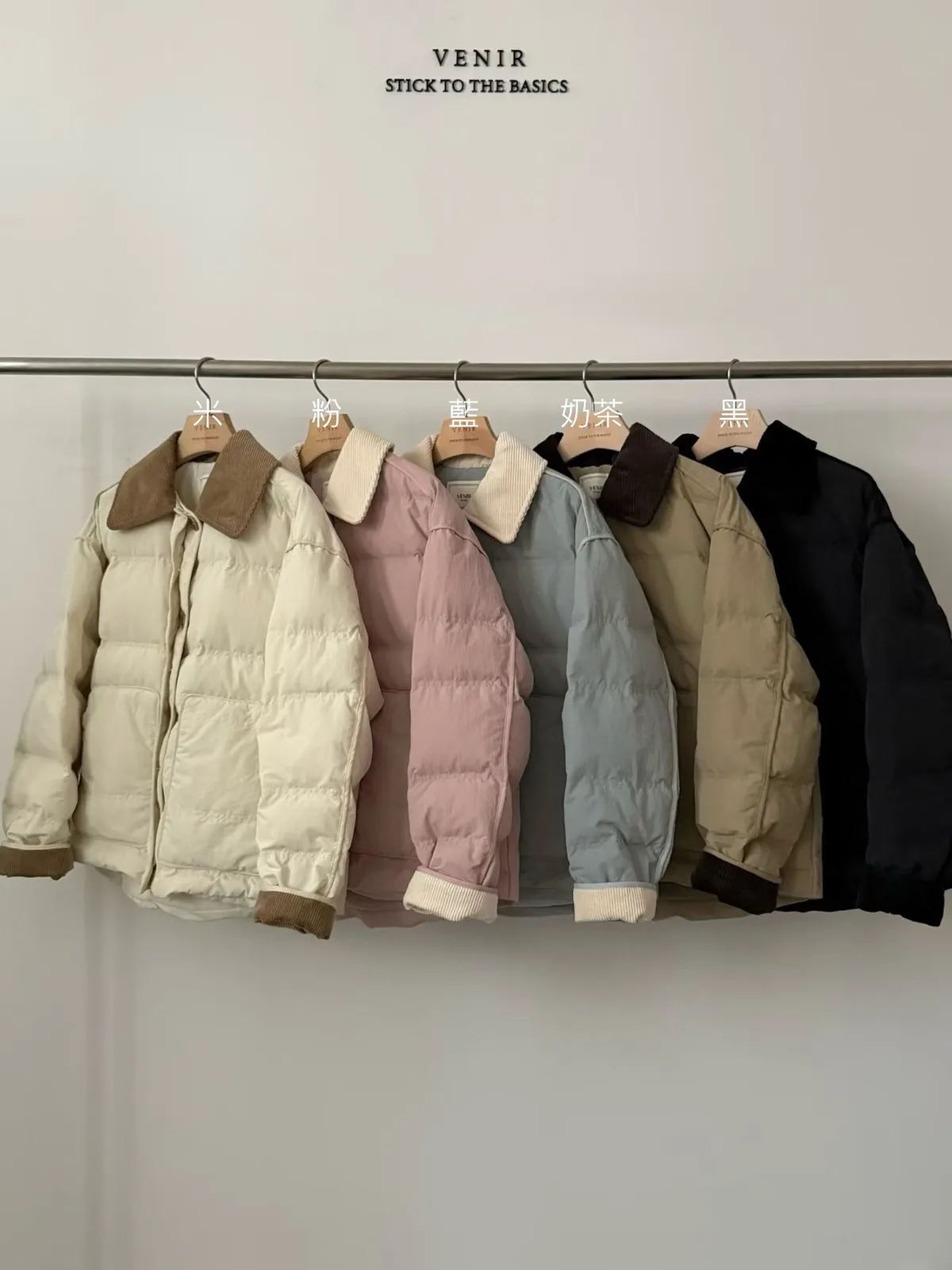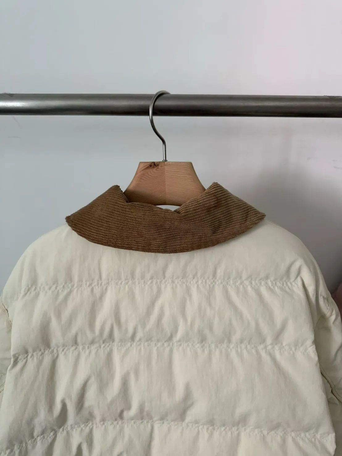 鴨絨100% 燈心絨領 有口袋 釦子穿脫 手袖反摺燈心絨 有暖度