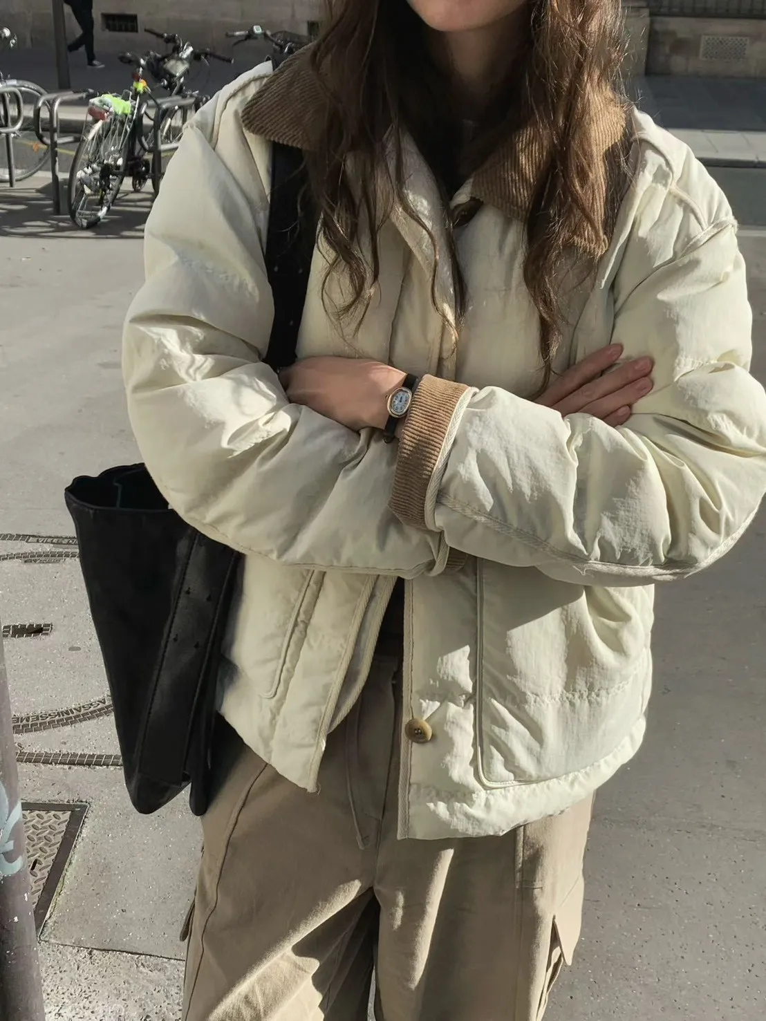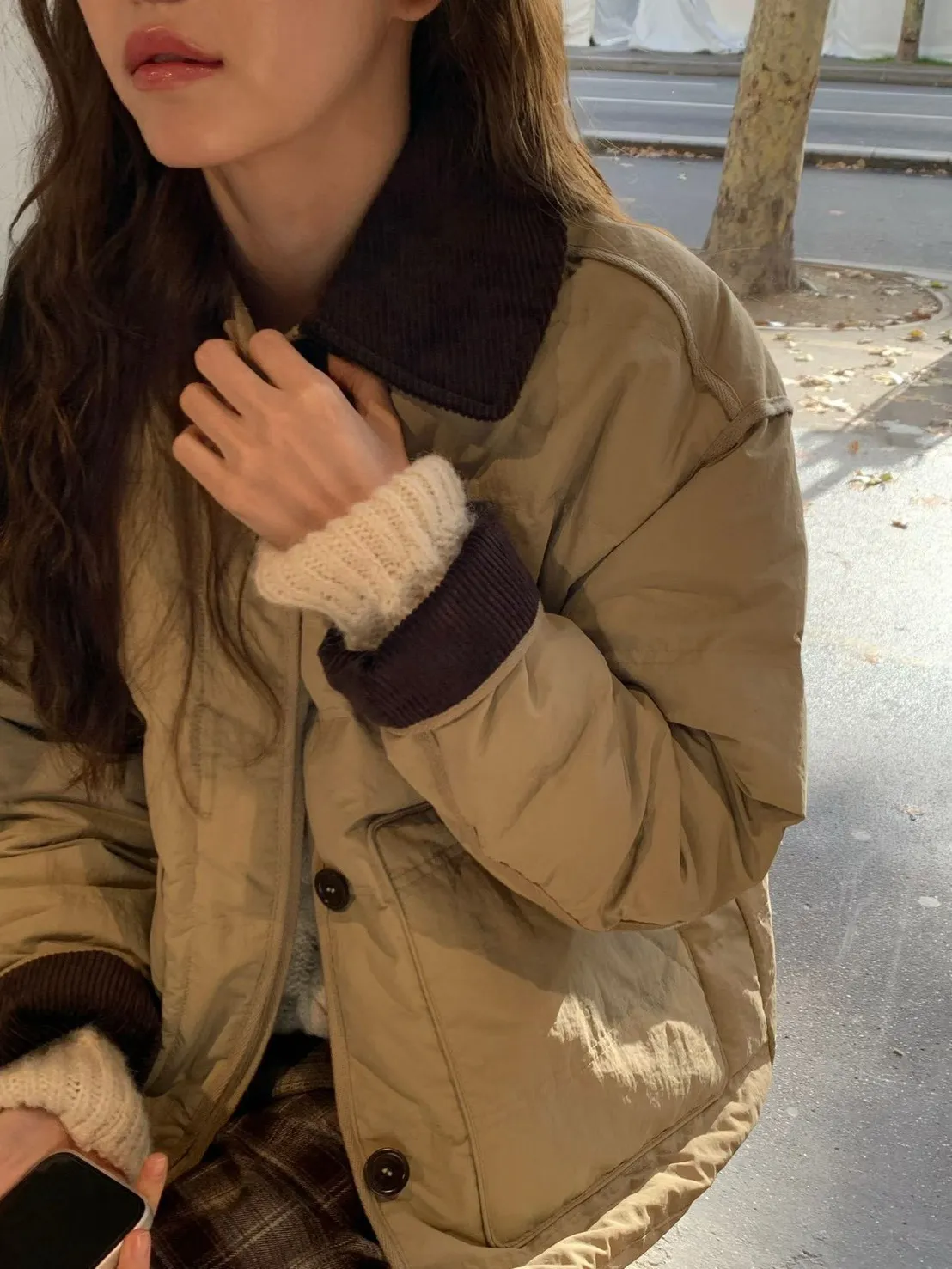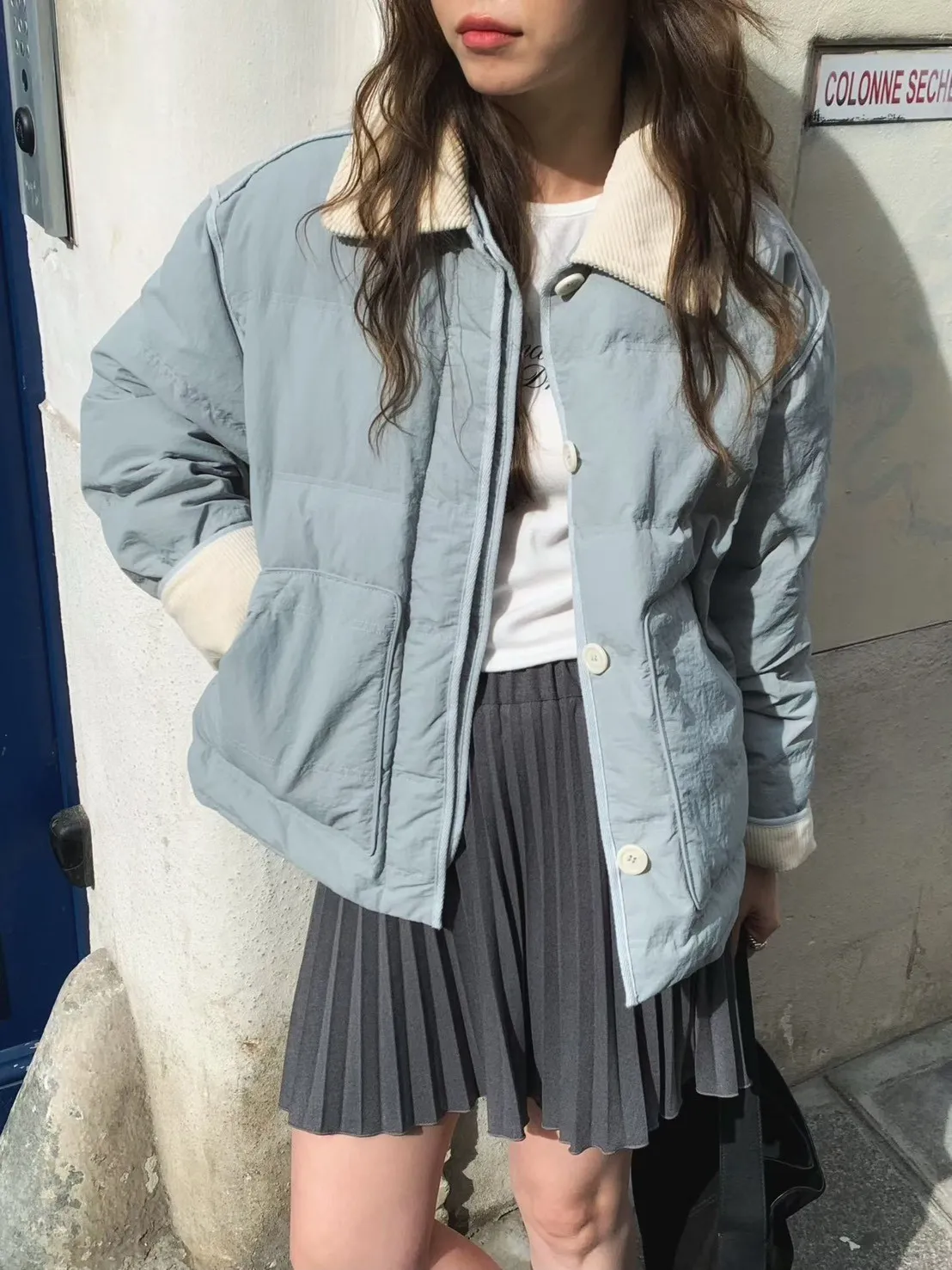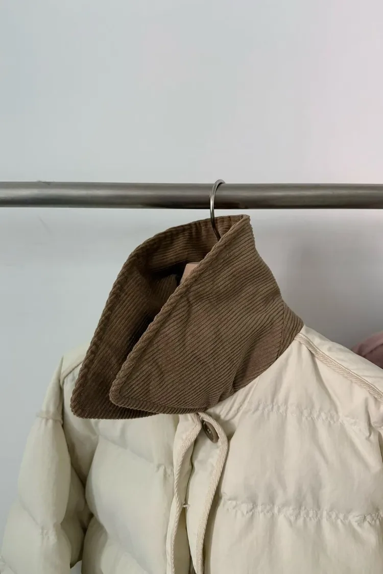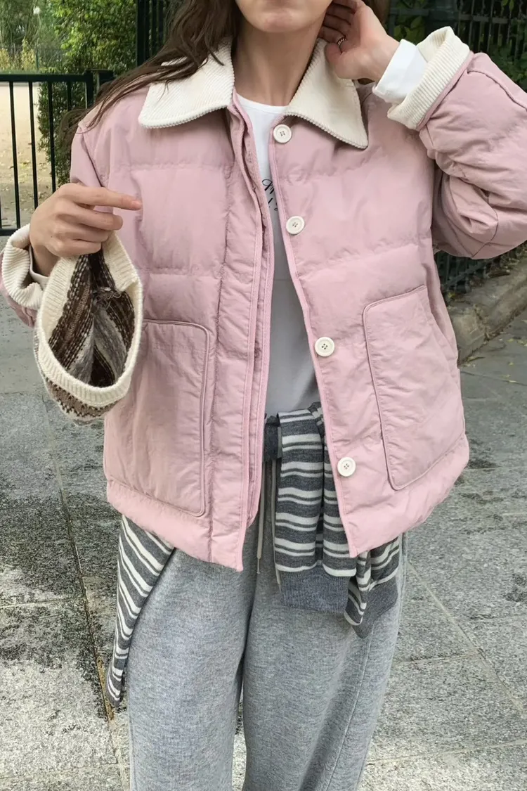 鴨絨100% 燈心絨領 有口袋 釦子穿脫 手袖反摺燈心絨 有暖度