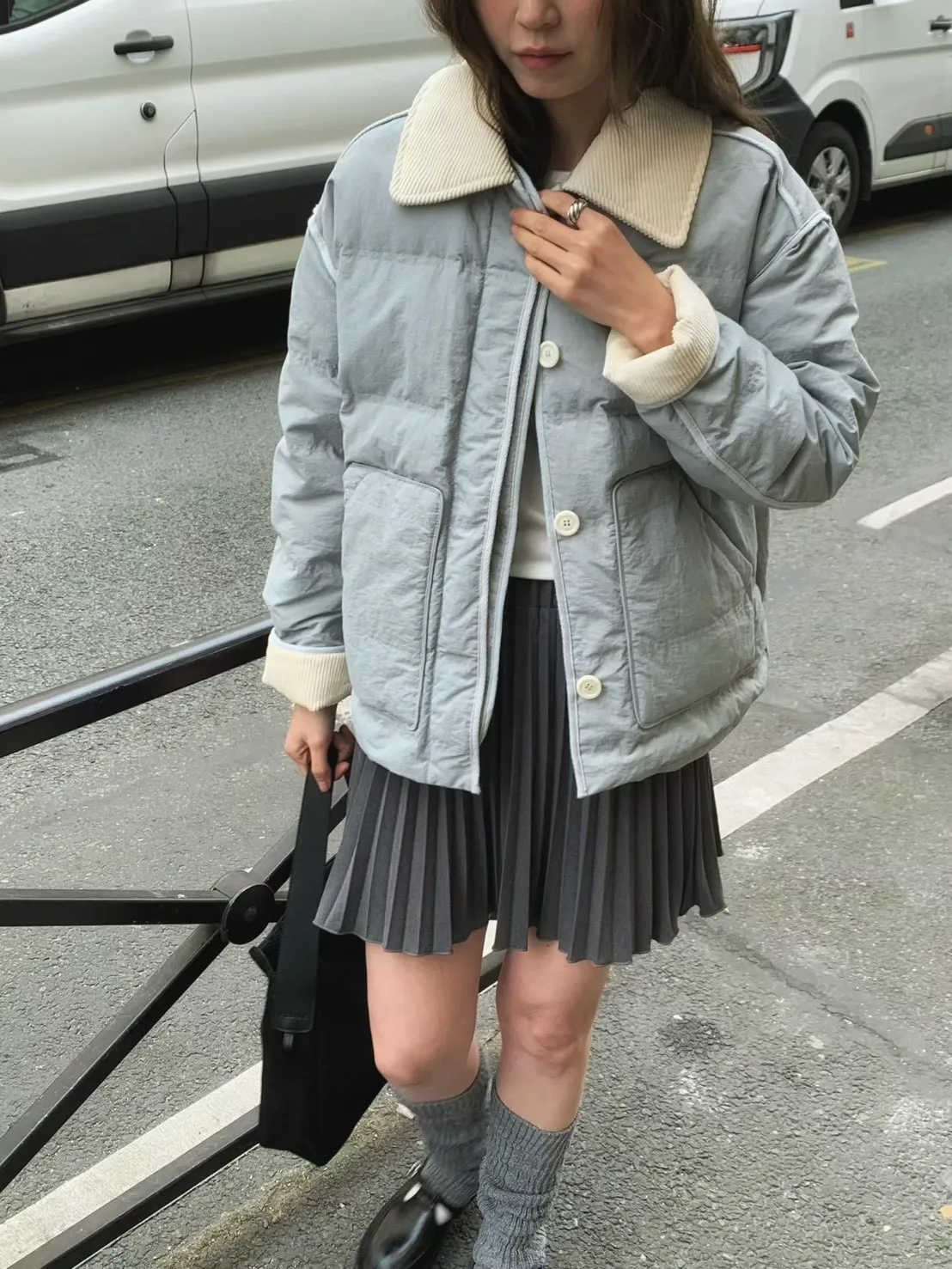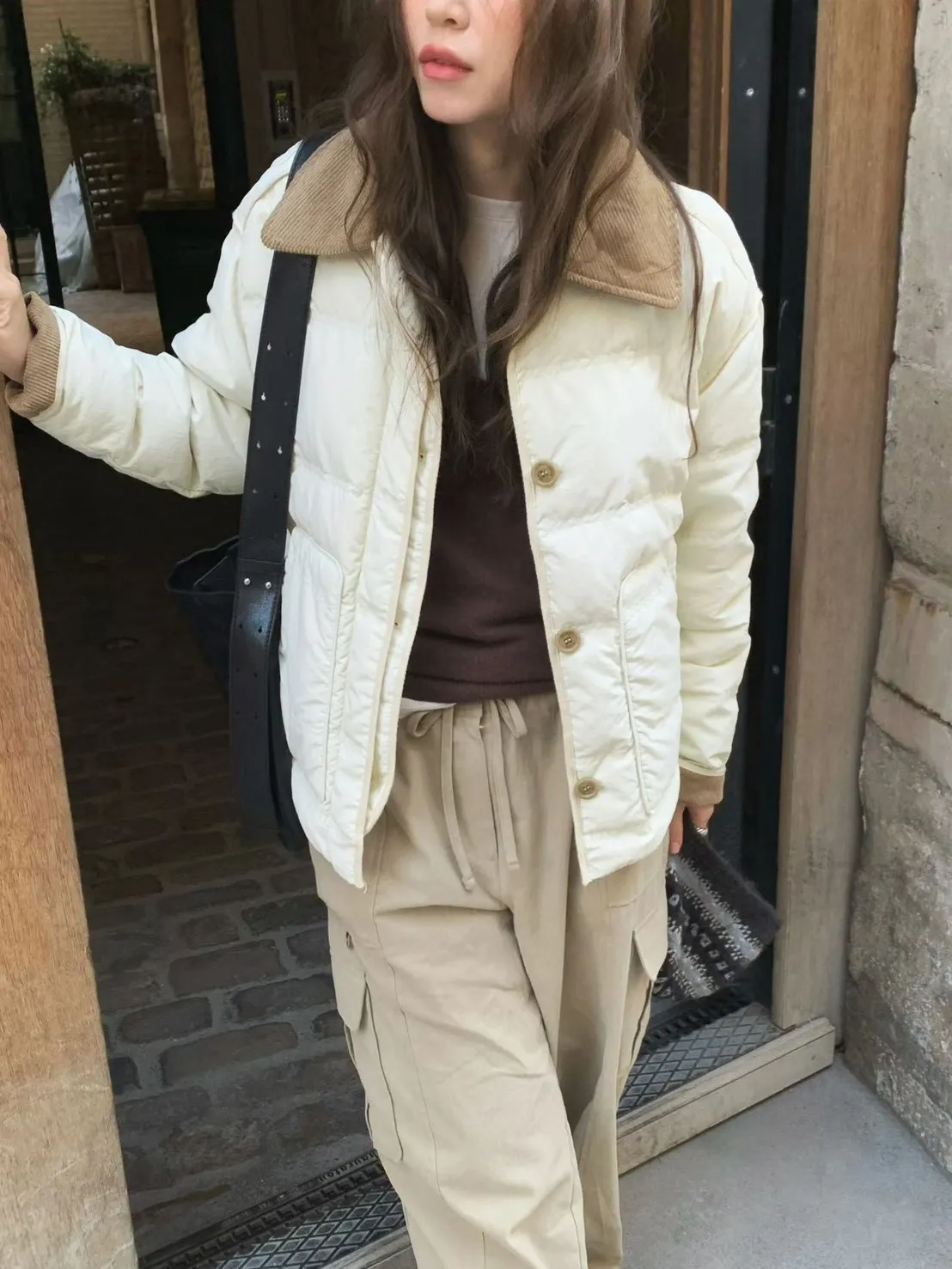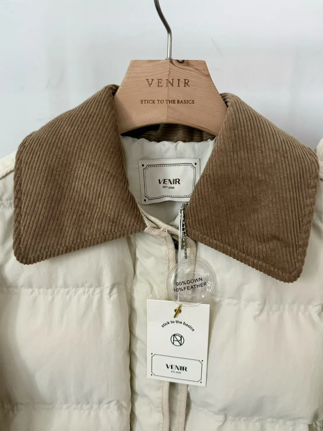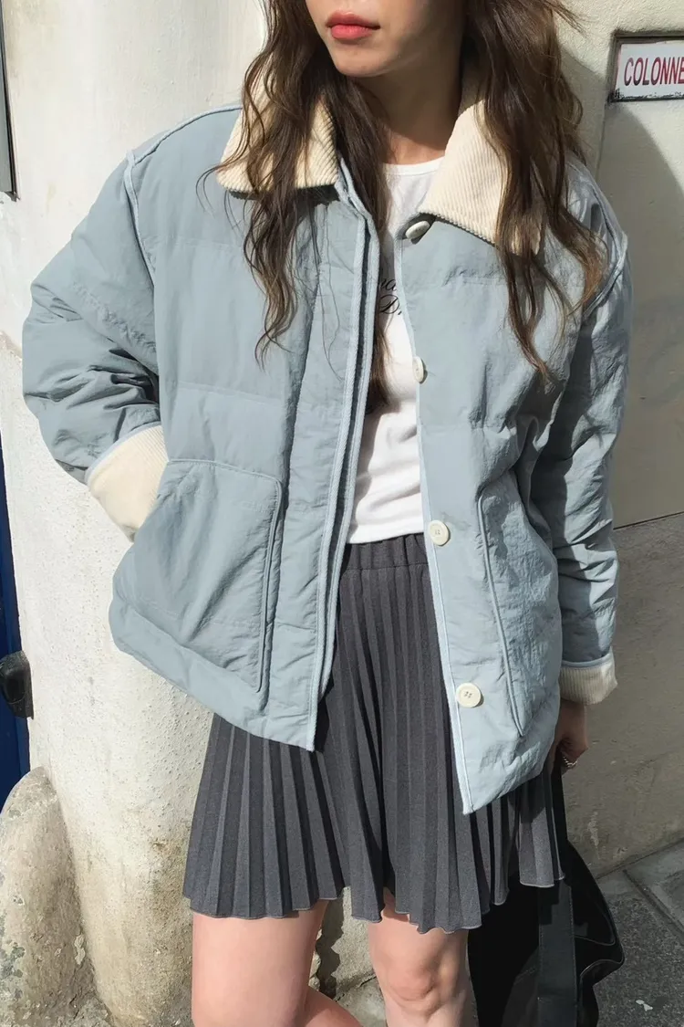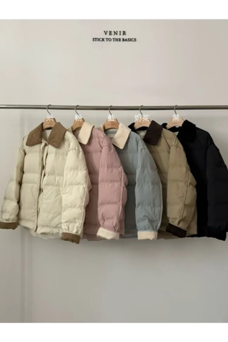 鴨絨100% 燈心絨領 有口袋 釦子穿脫 手袖反摺燈心絨 有暖度
