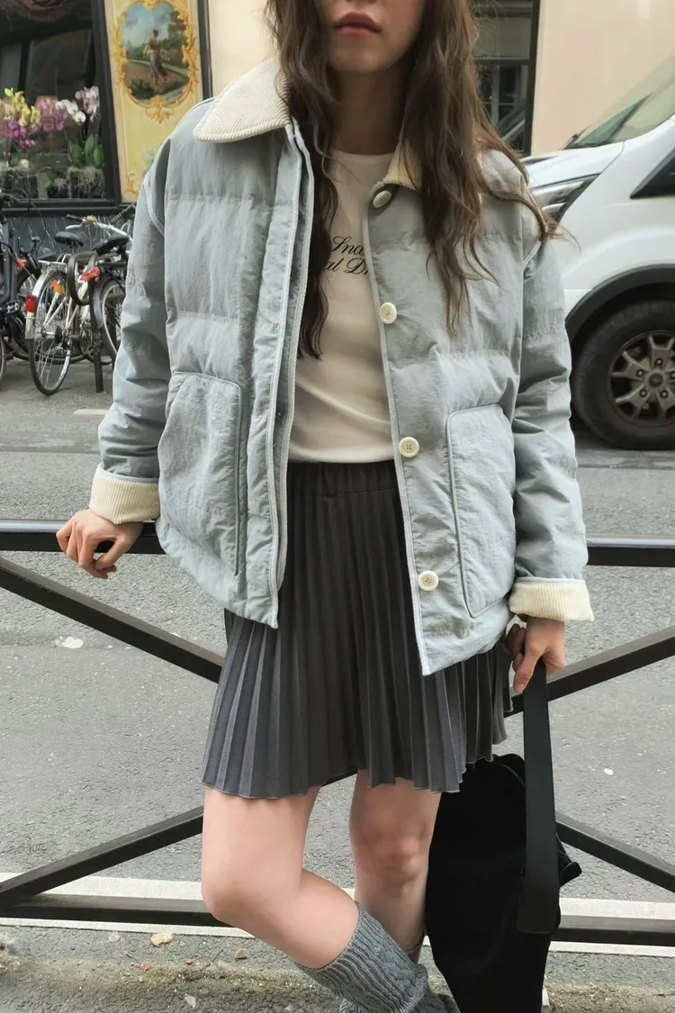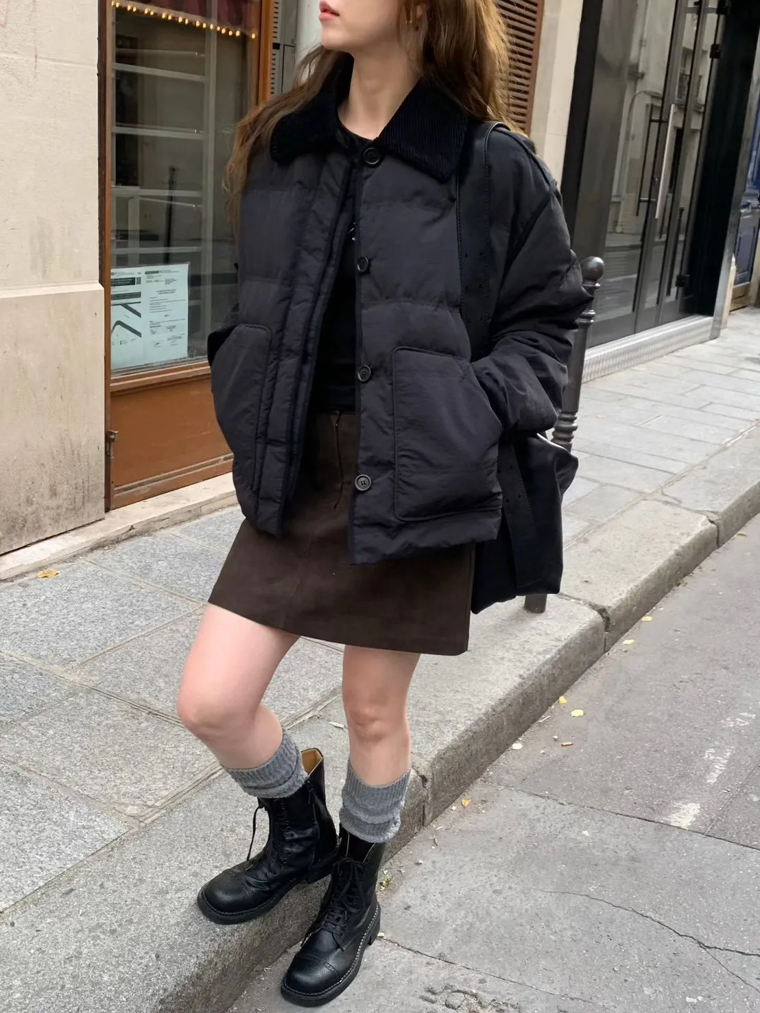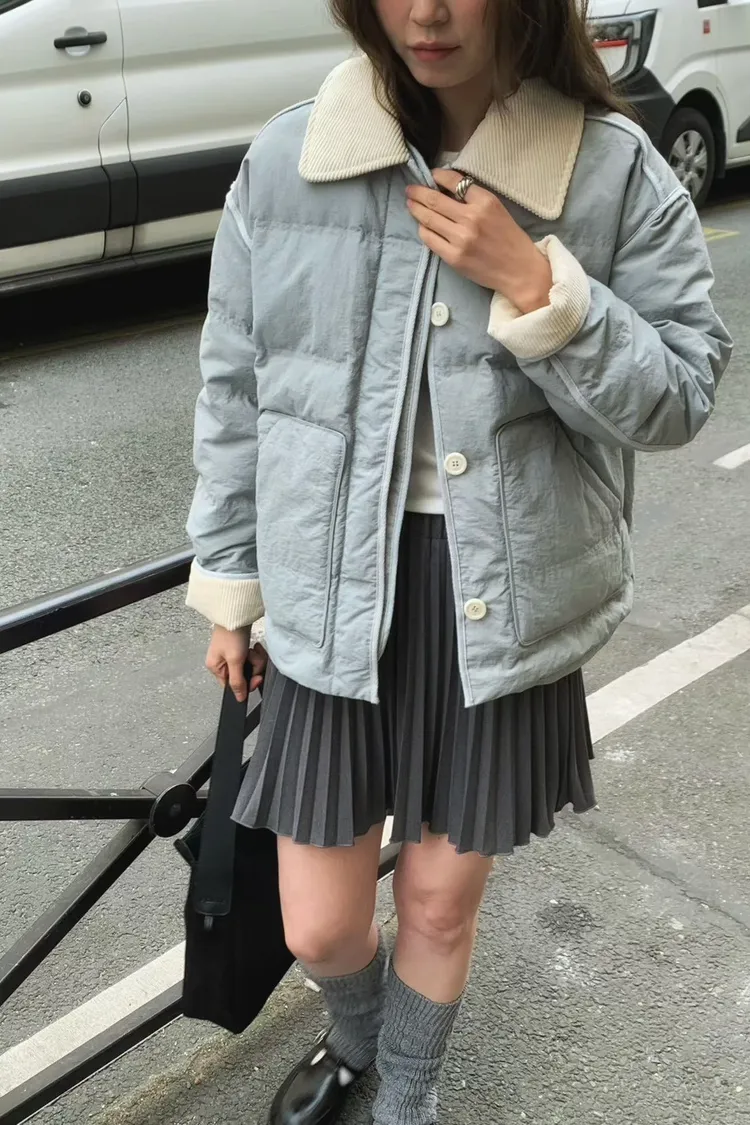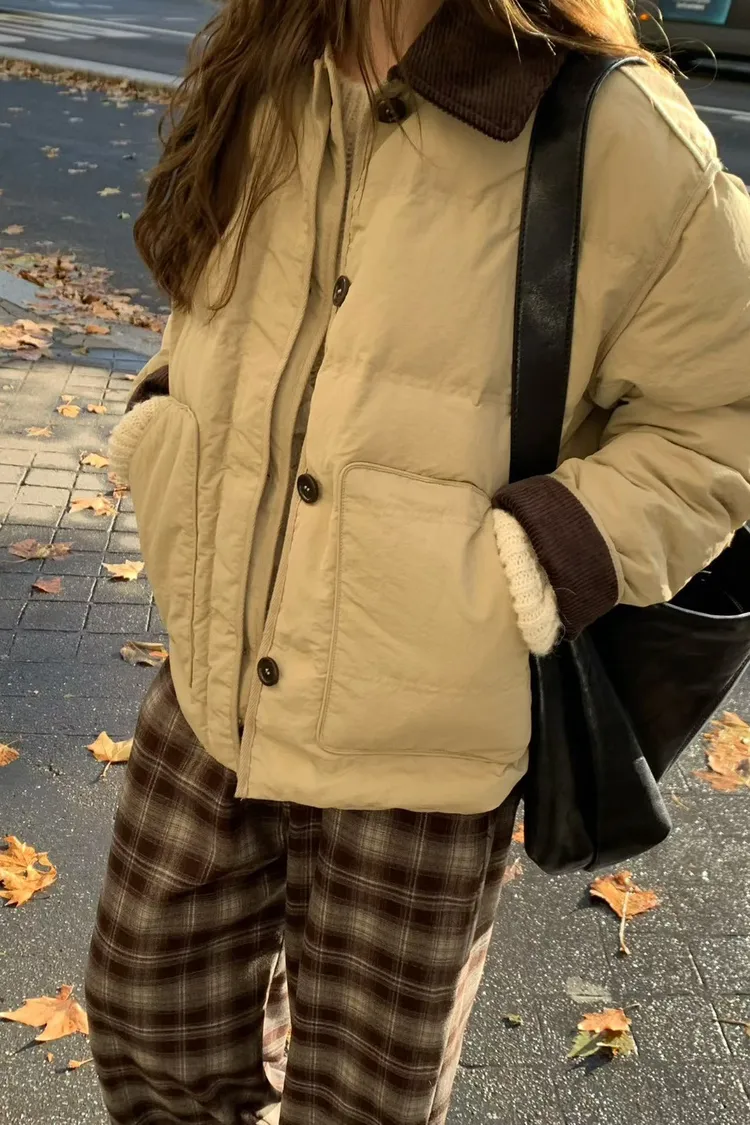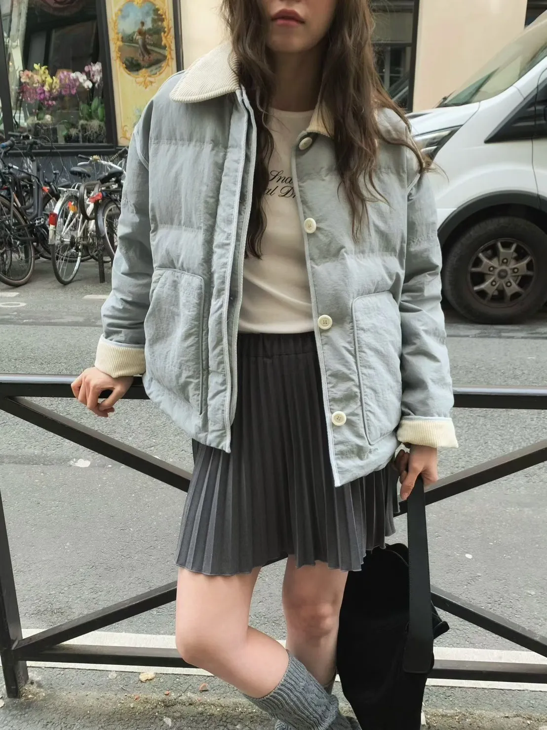 鴨絨100% 燈心絨領 有口袋 釦子穿脫 手袖反摺燈心絨 有暖度