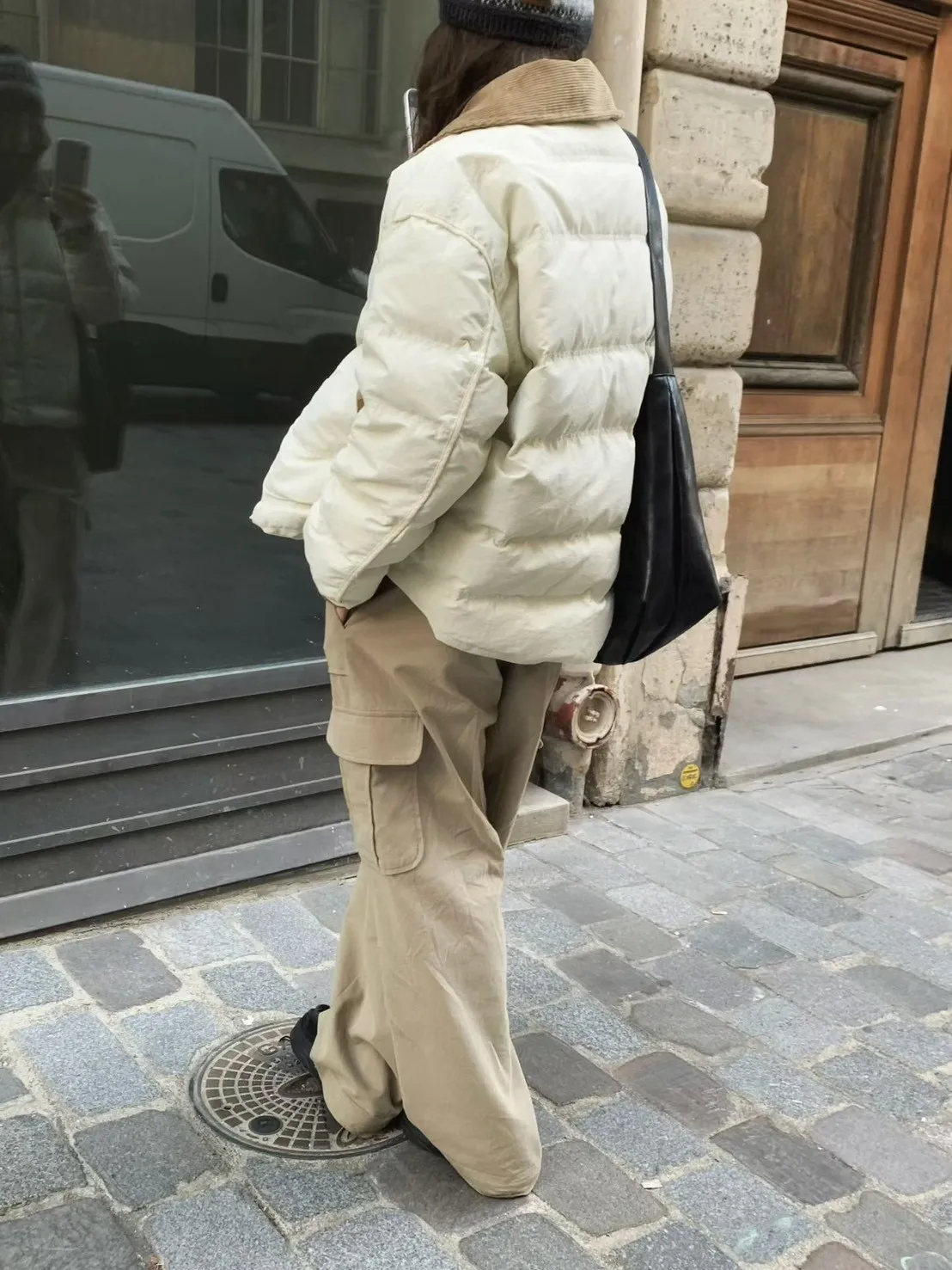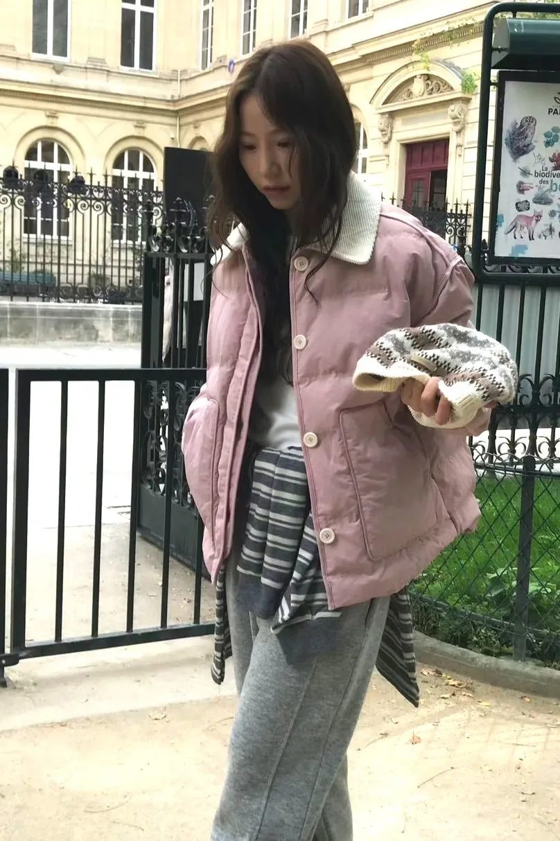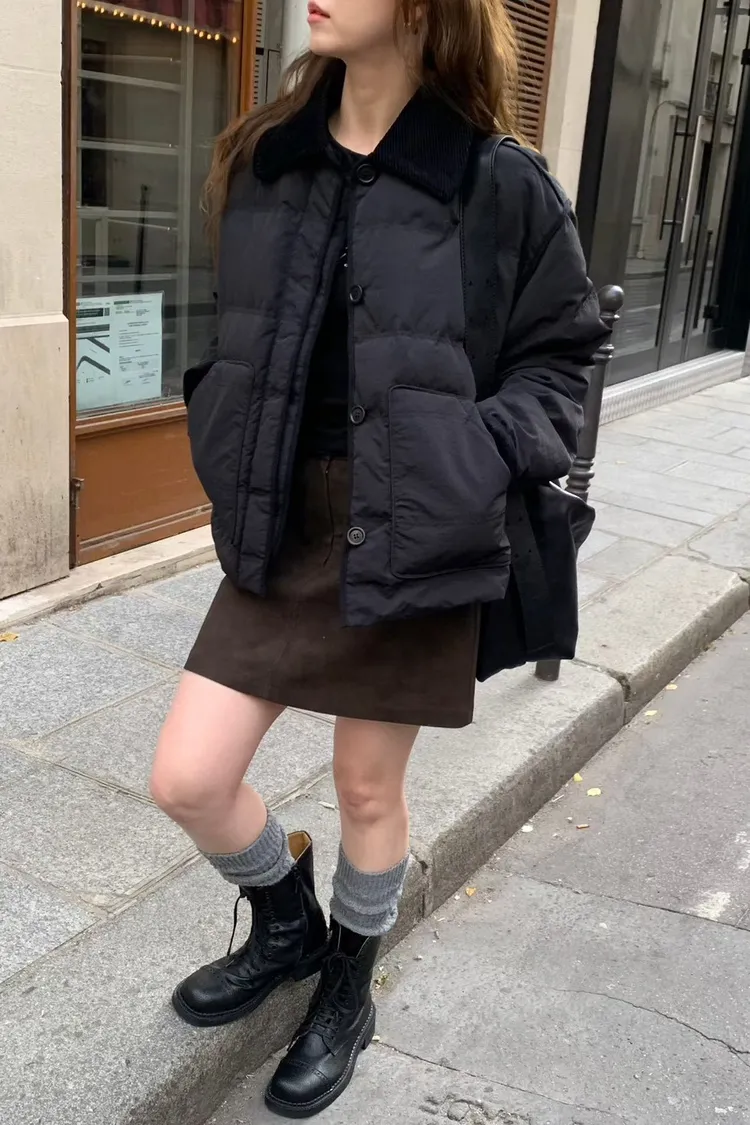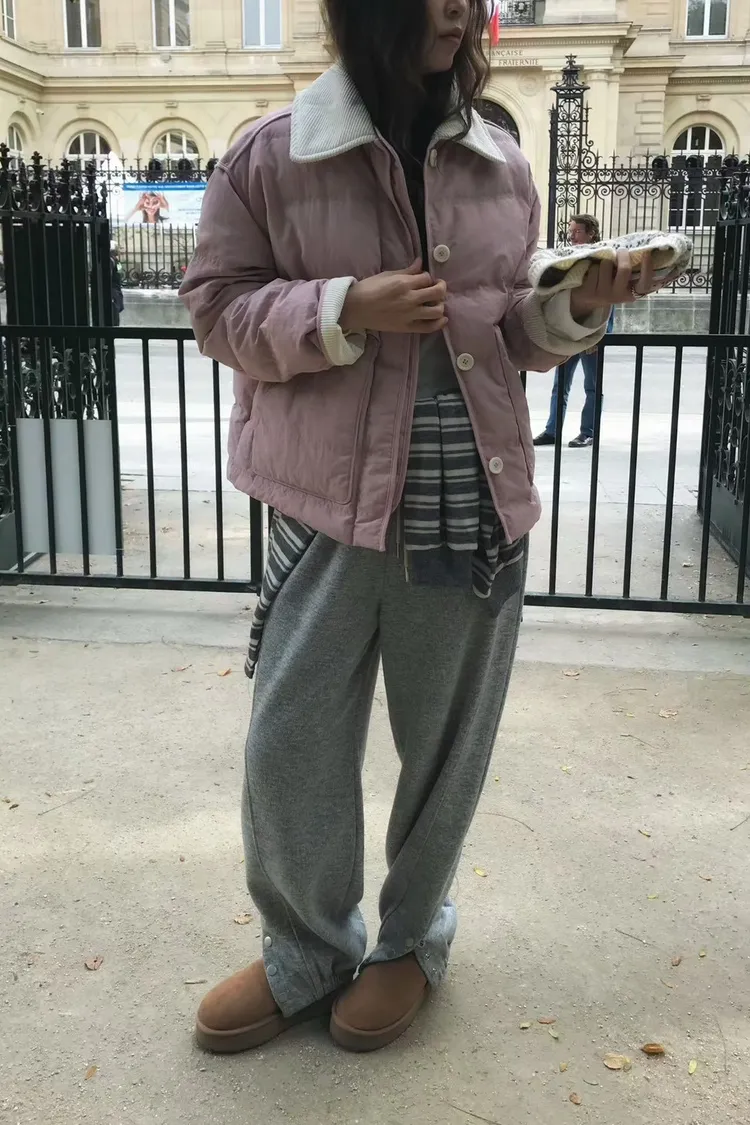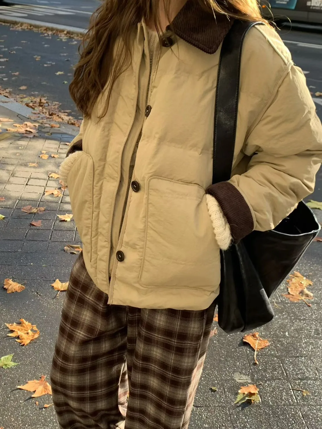 鴨絨100% 燈心絨領 有口袋 釦子穿脫 手袖反摺燈心絨 有暖度