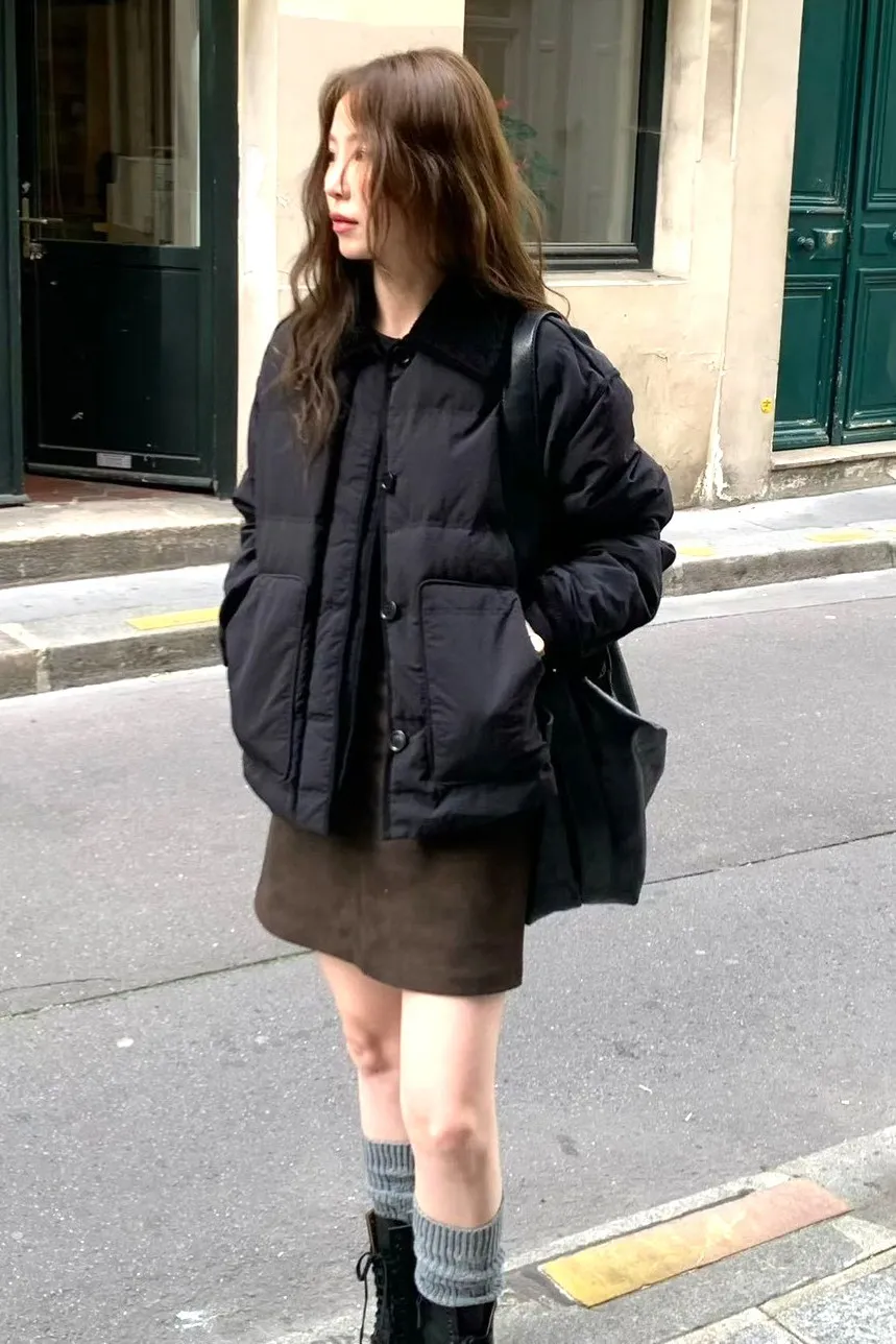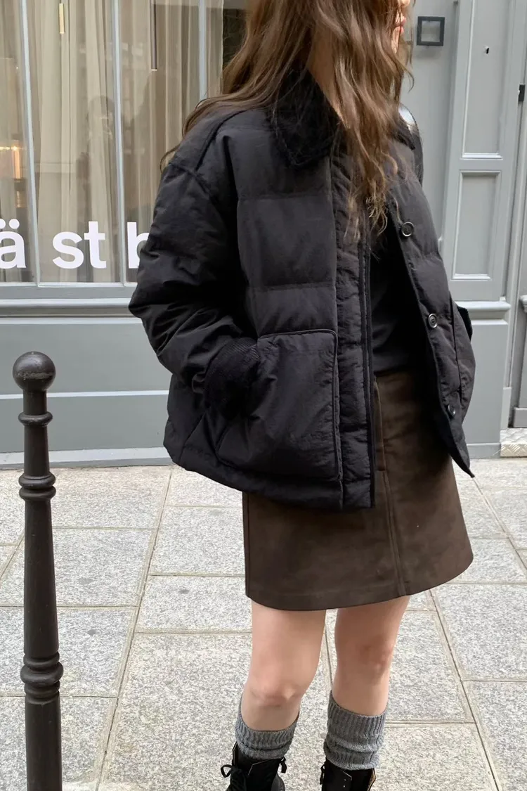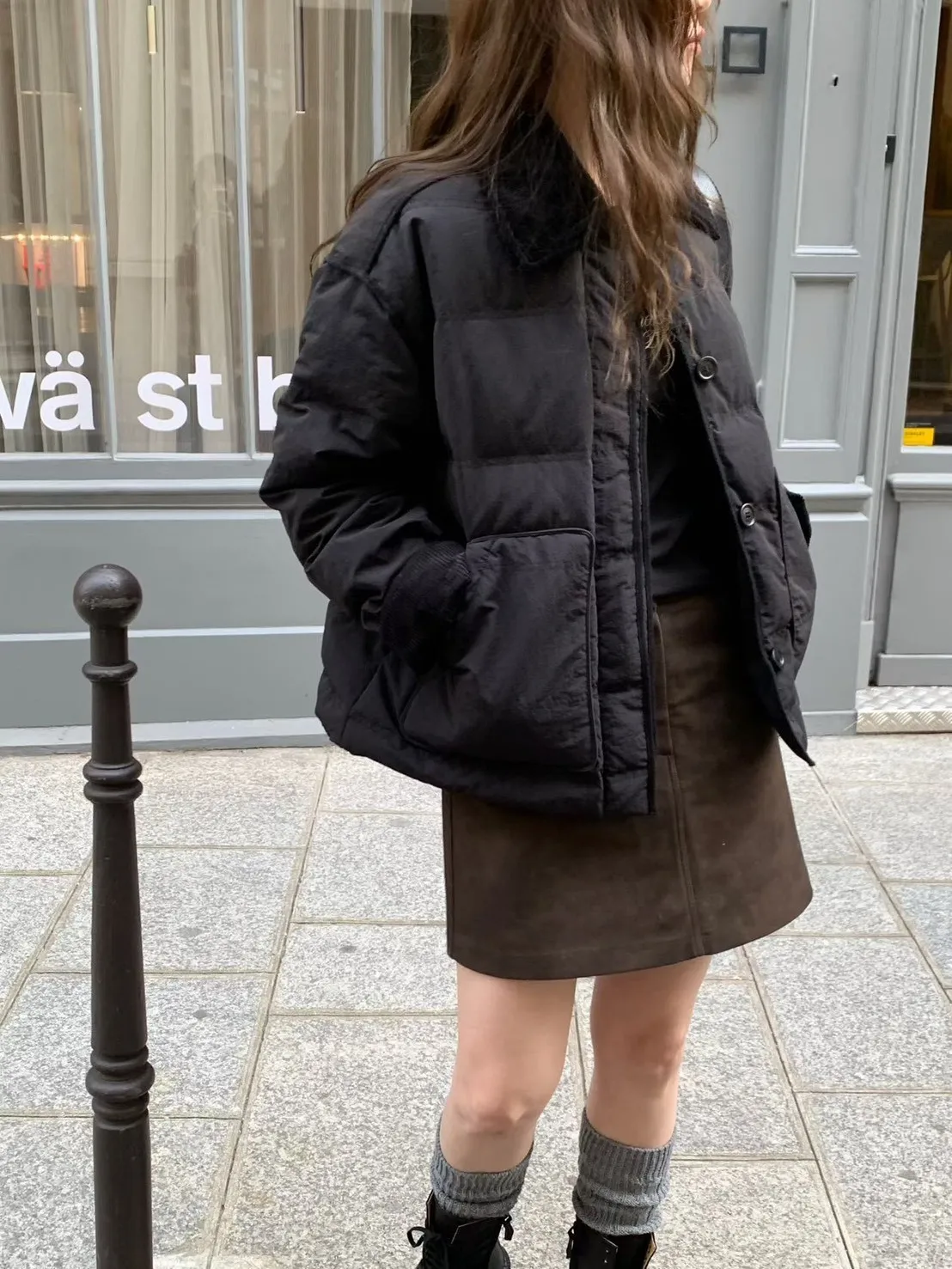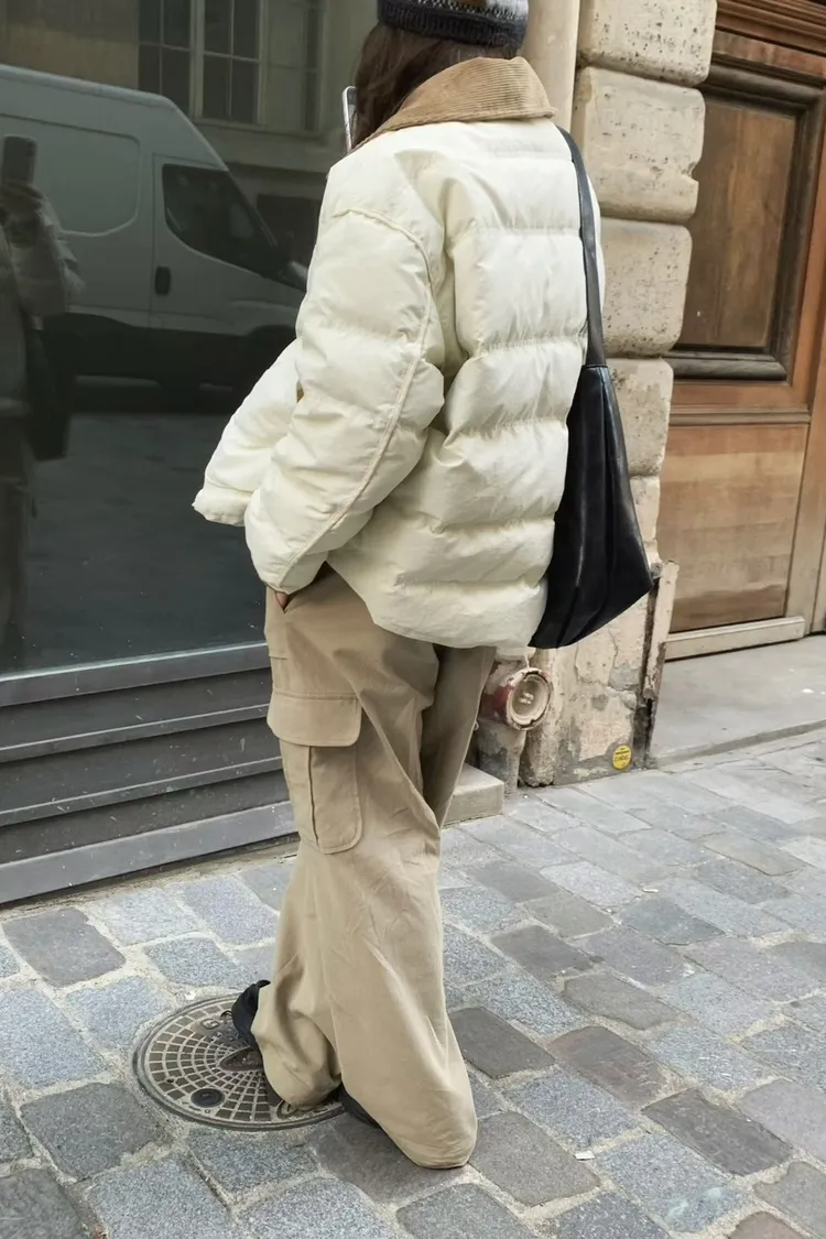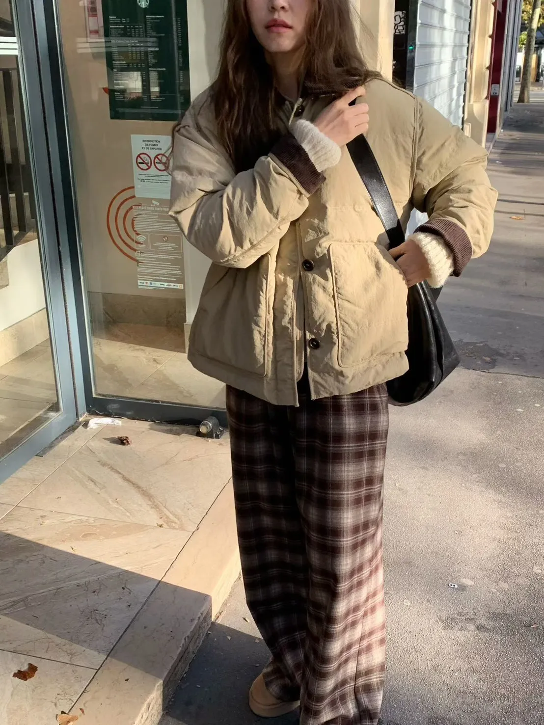 鴨絨100% 燈心絨領 有口袋 釦子穿脫 手袖反摺燈心絨 有暖度