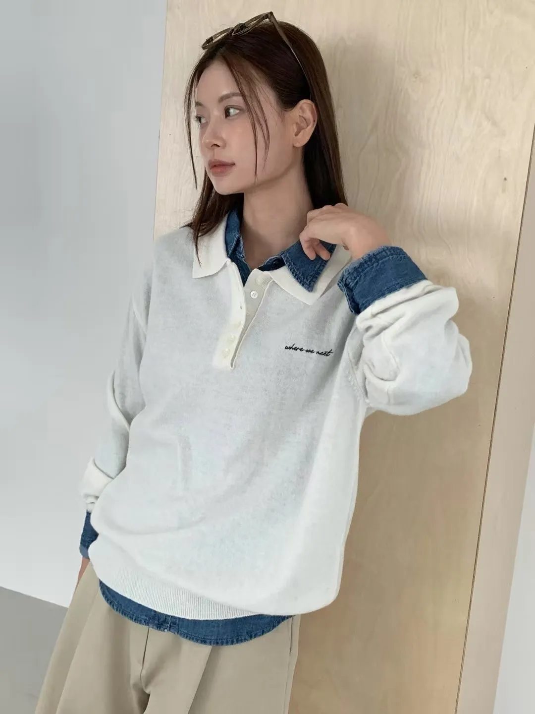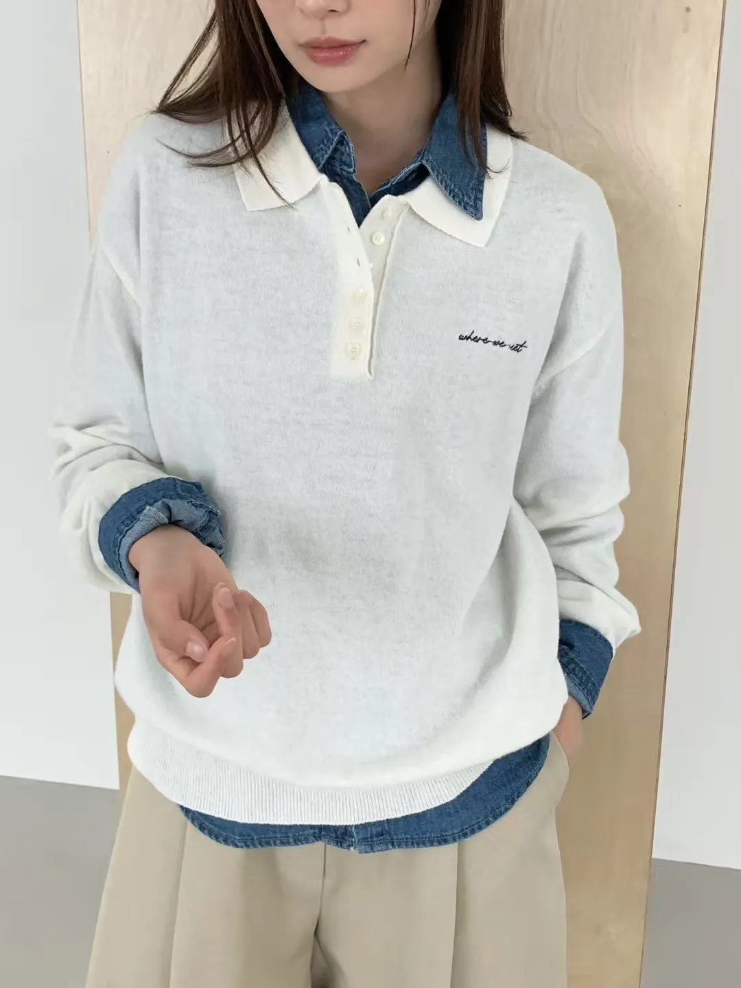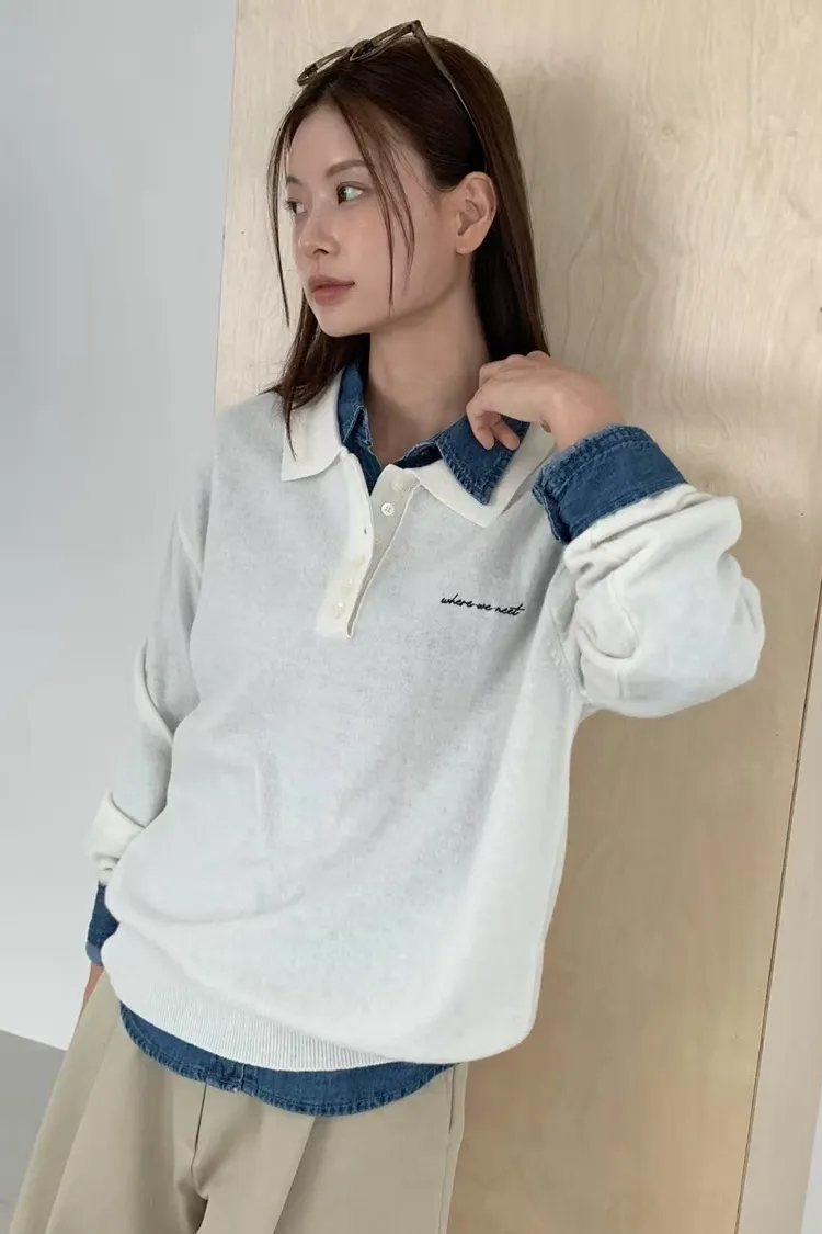 高級羊毛50%+尼龍聚酯 薄款面料 胸前刺繡 有暖度 超敏肌略過
