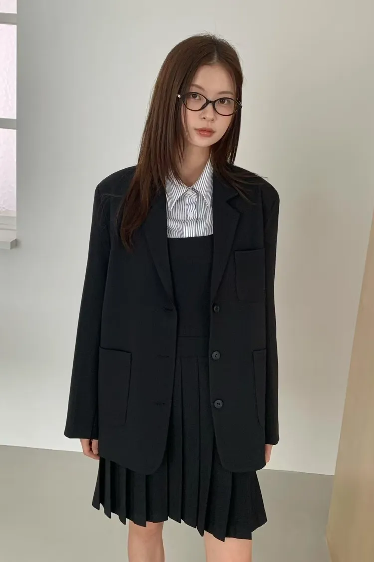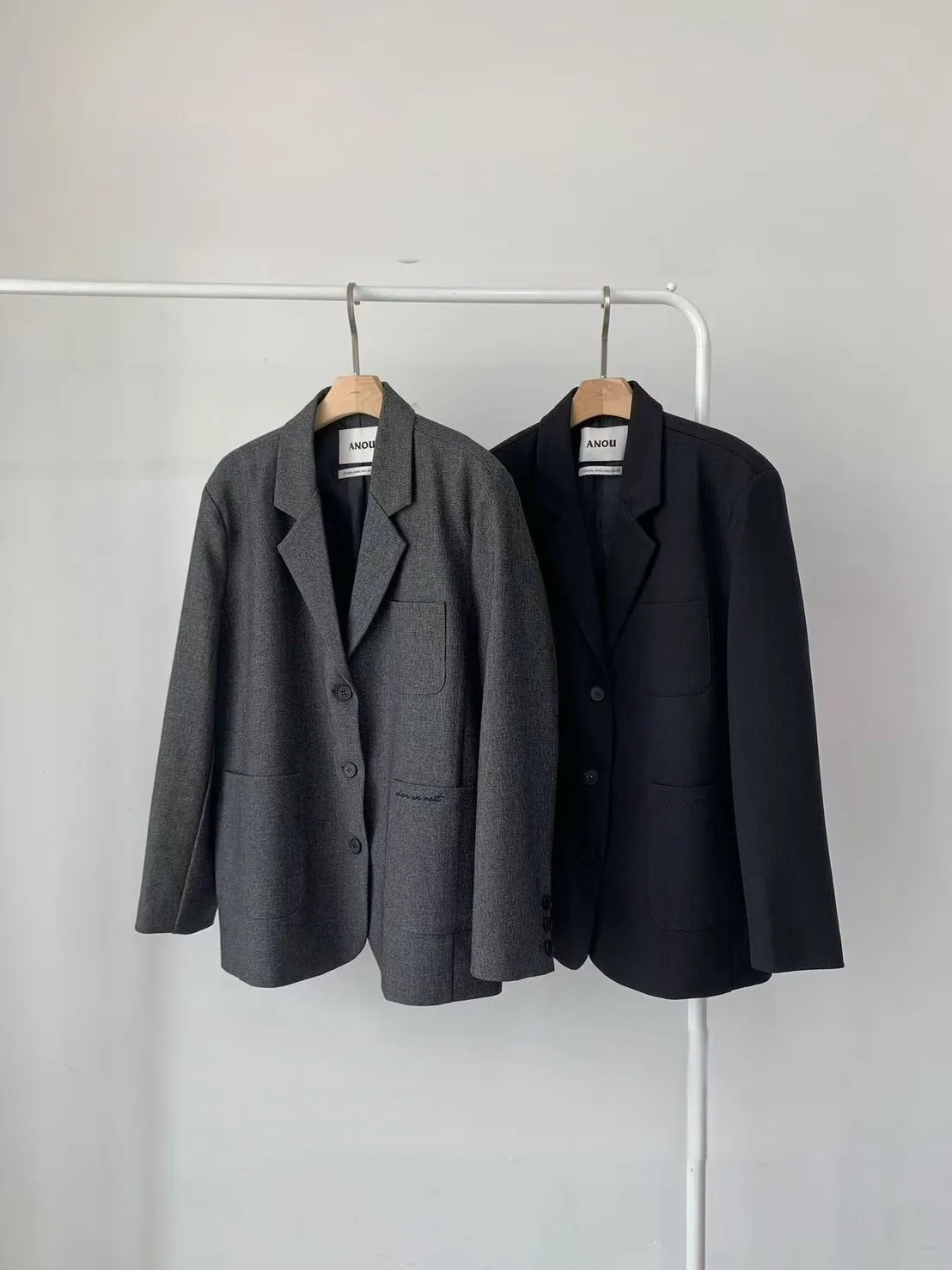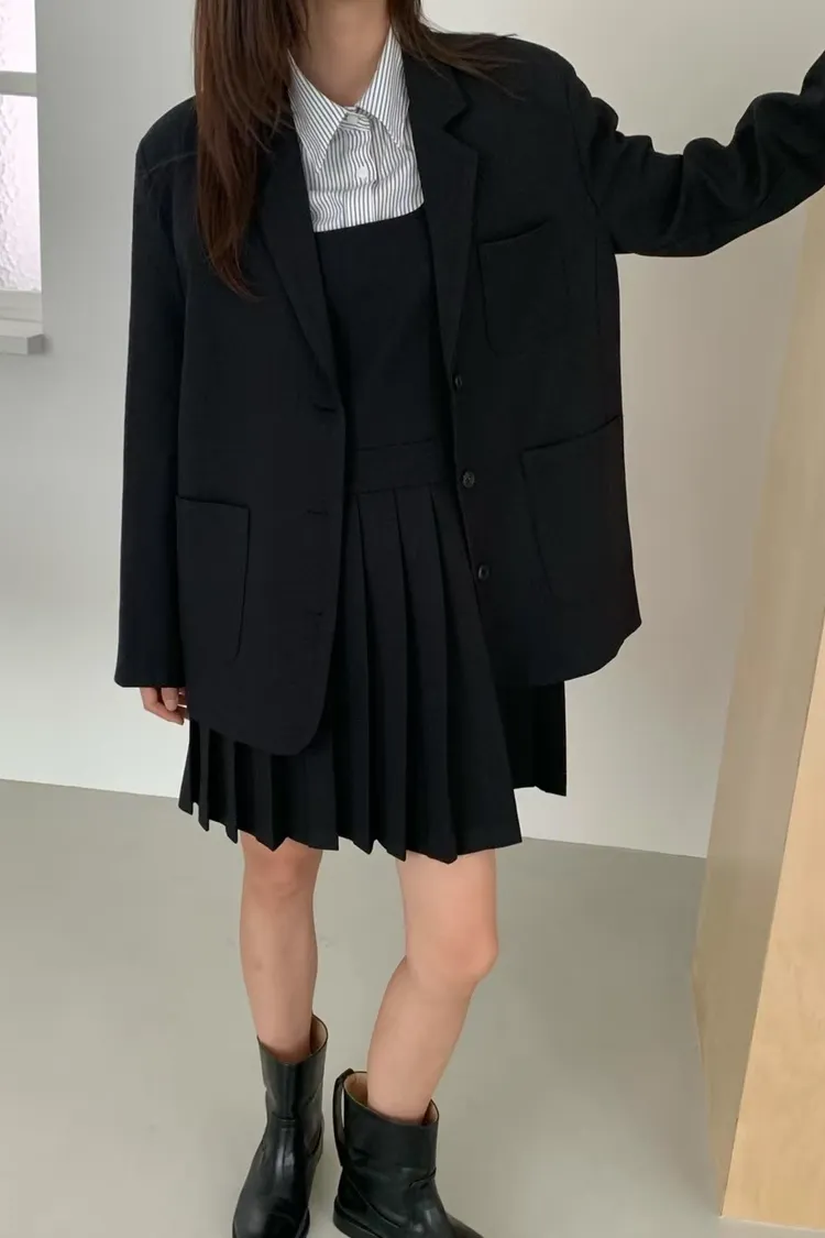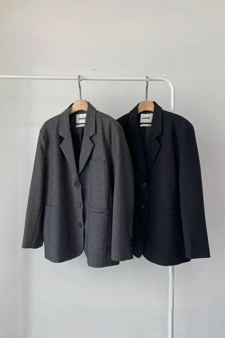 羊毛10%+縲縈聚酯 三口袋設計感 oversize 薄薄墊肩 有內裡