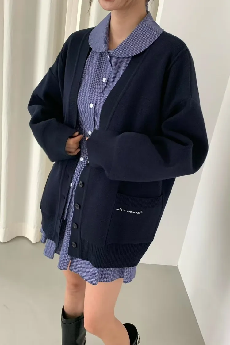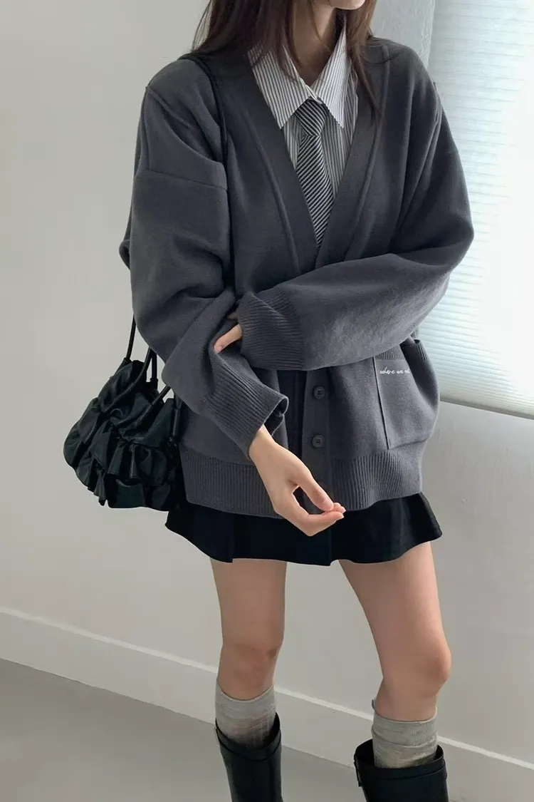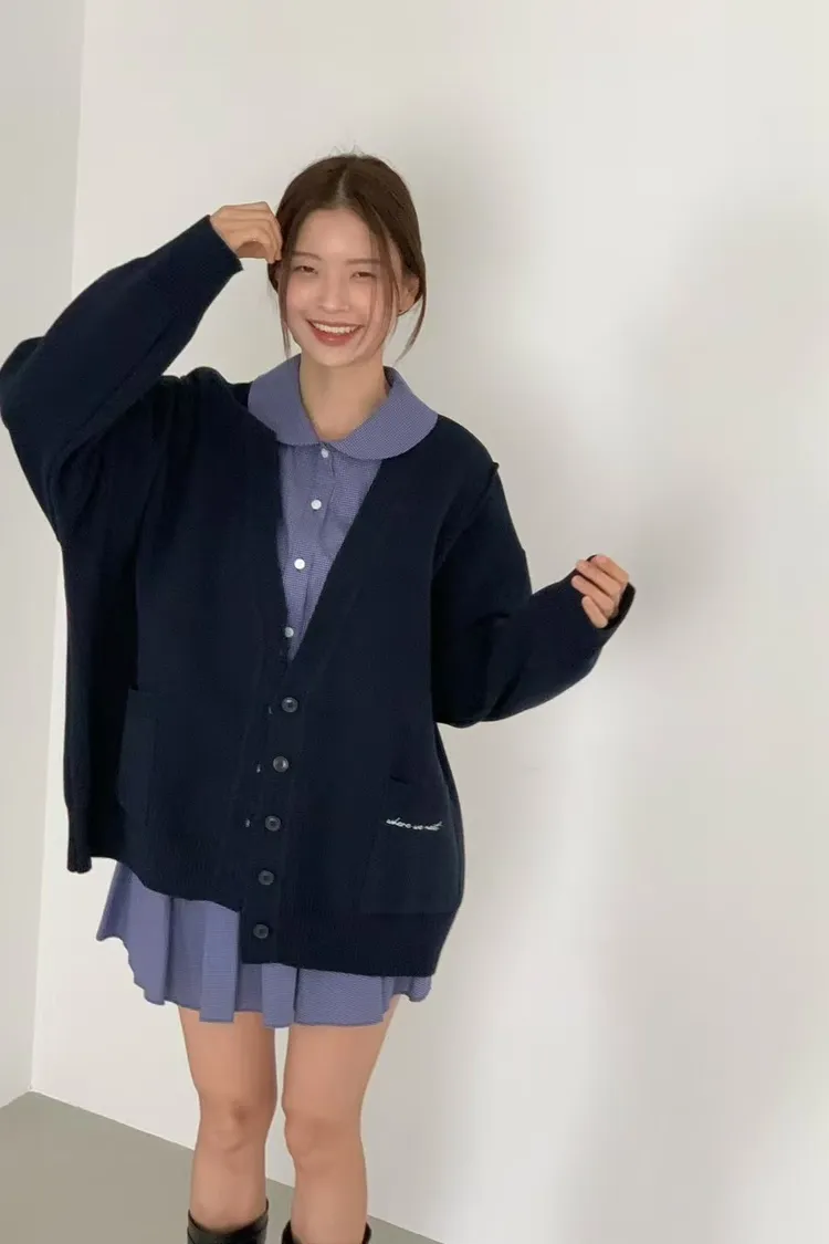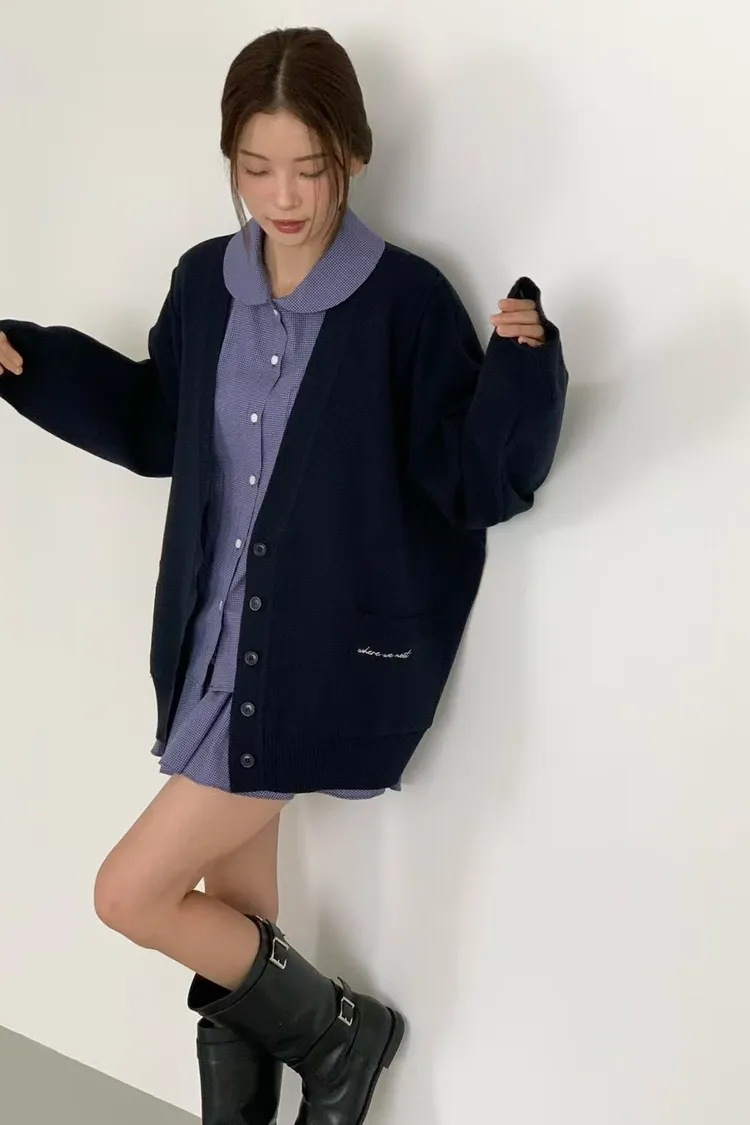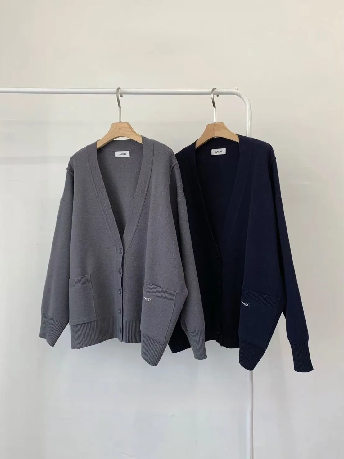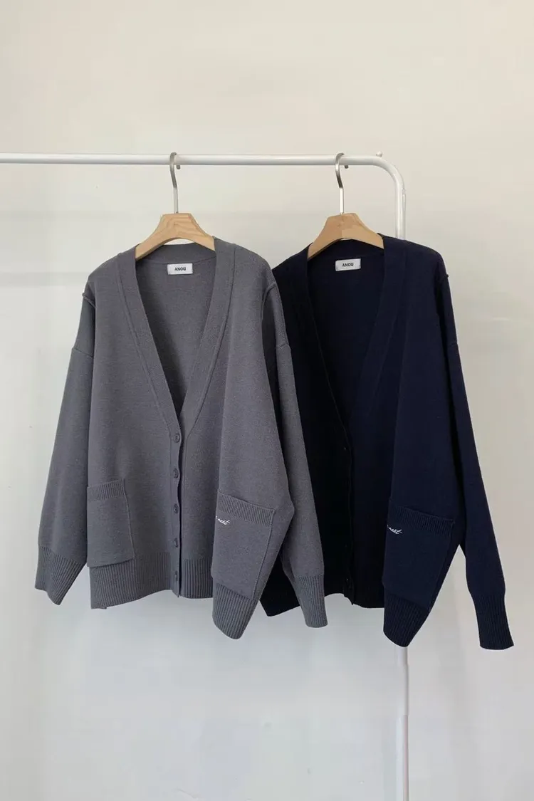 夏季羊毛20%+壓克力+彈力 刺繡雙口袋 排釦穿脫 oversize