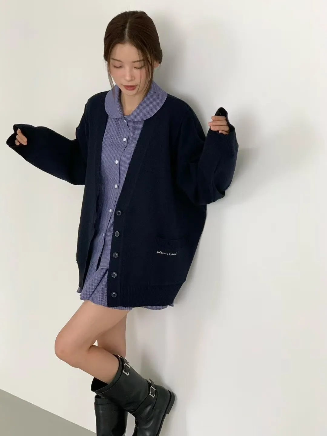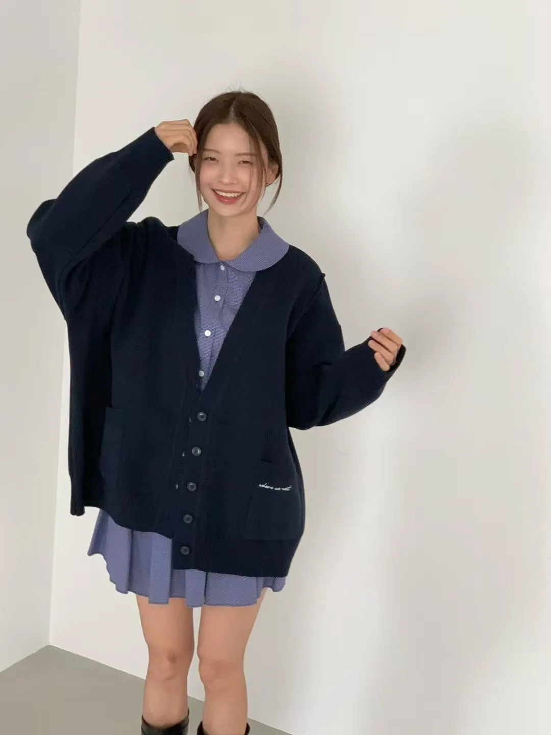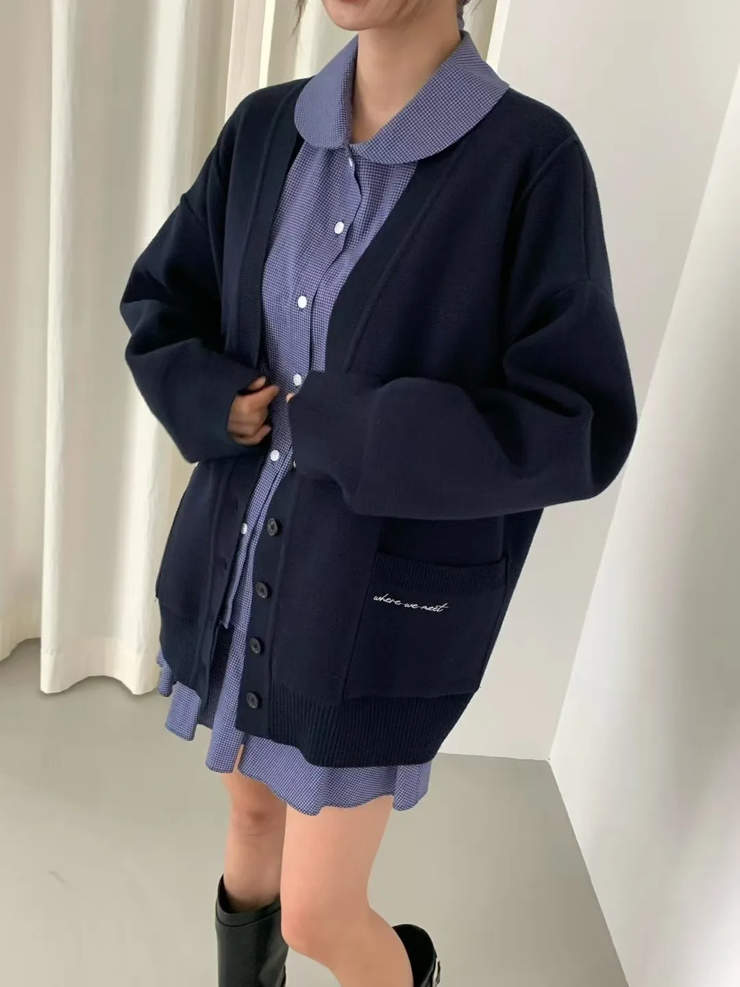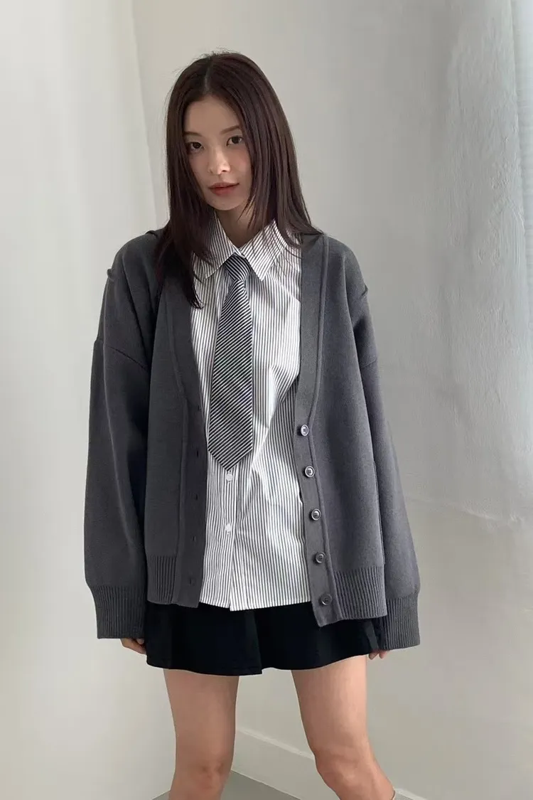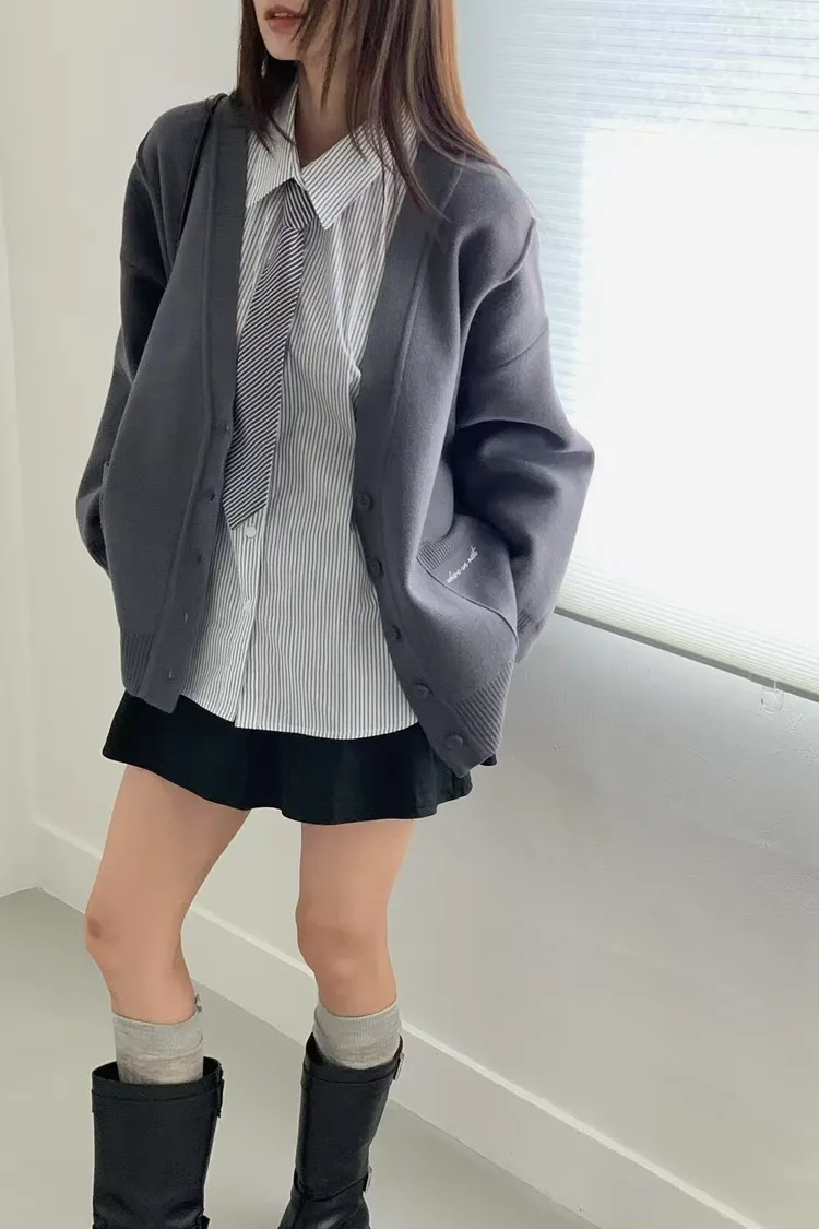 夏季羊毛20%+壓克力+彈力 刺繡雙口袋 排釦穿脫 oversize