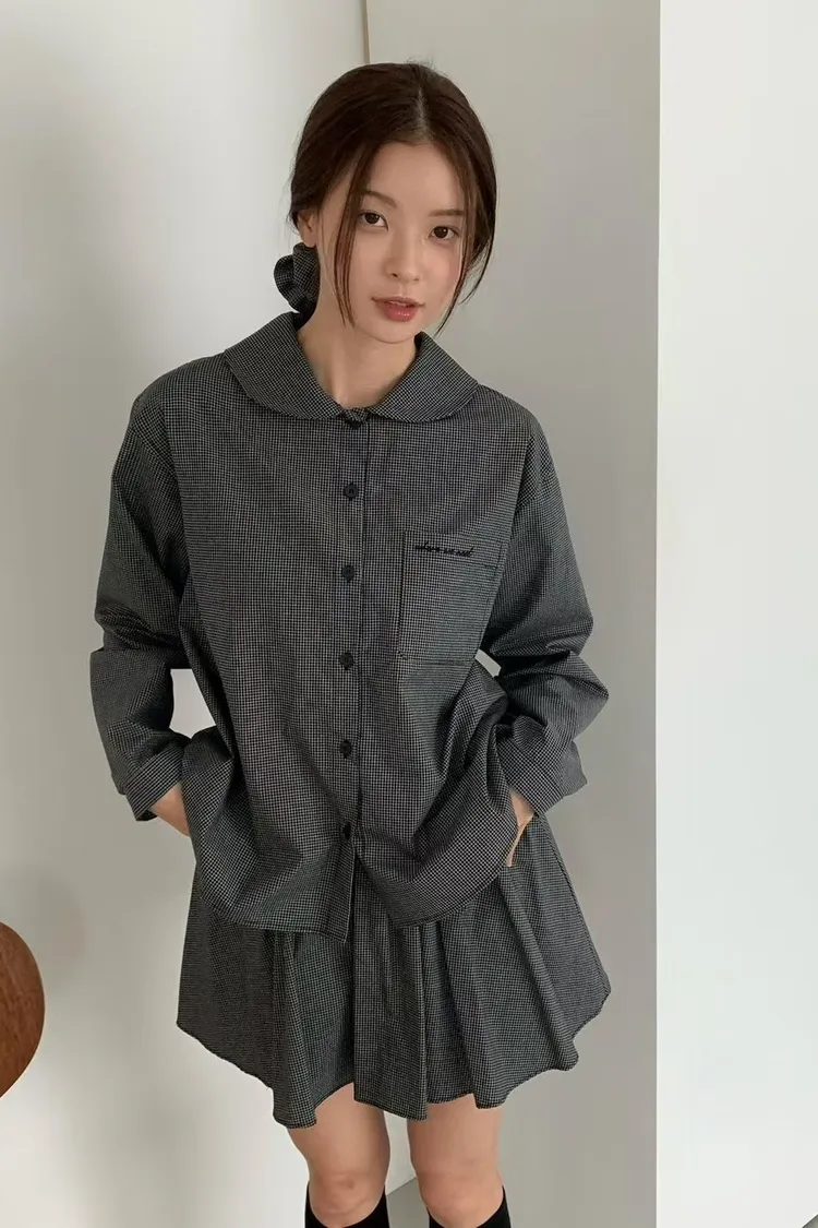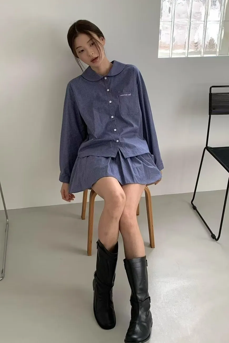 棉 刺繡口袋 排釦穿脫 圓翻領 空間友善 送一個髮圈