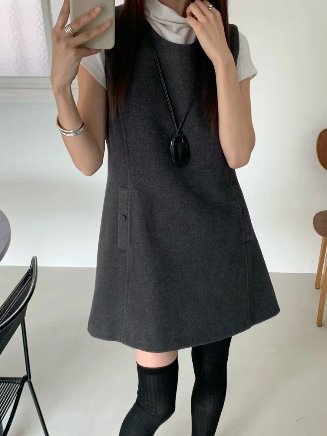 天絲60%+羊毛10+縲縈+壓克力 顯瘦腰身傘擺 有口袋 小個友善