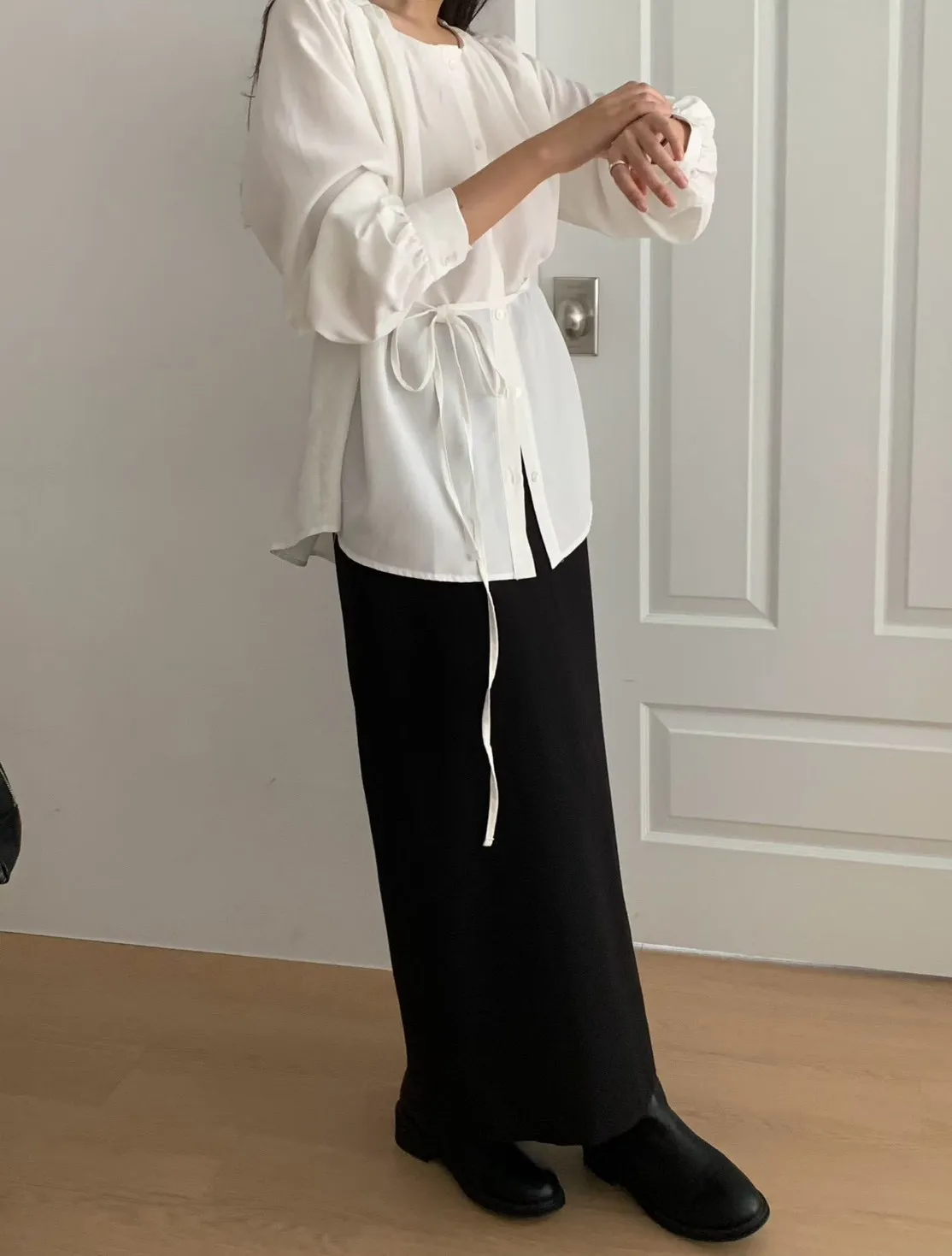 MK153氣質天絲腰綁帶娃娃裝 白 灰 官網價$990 永恆甜甜價$960