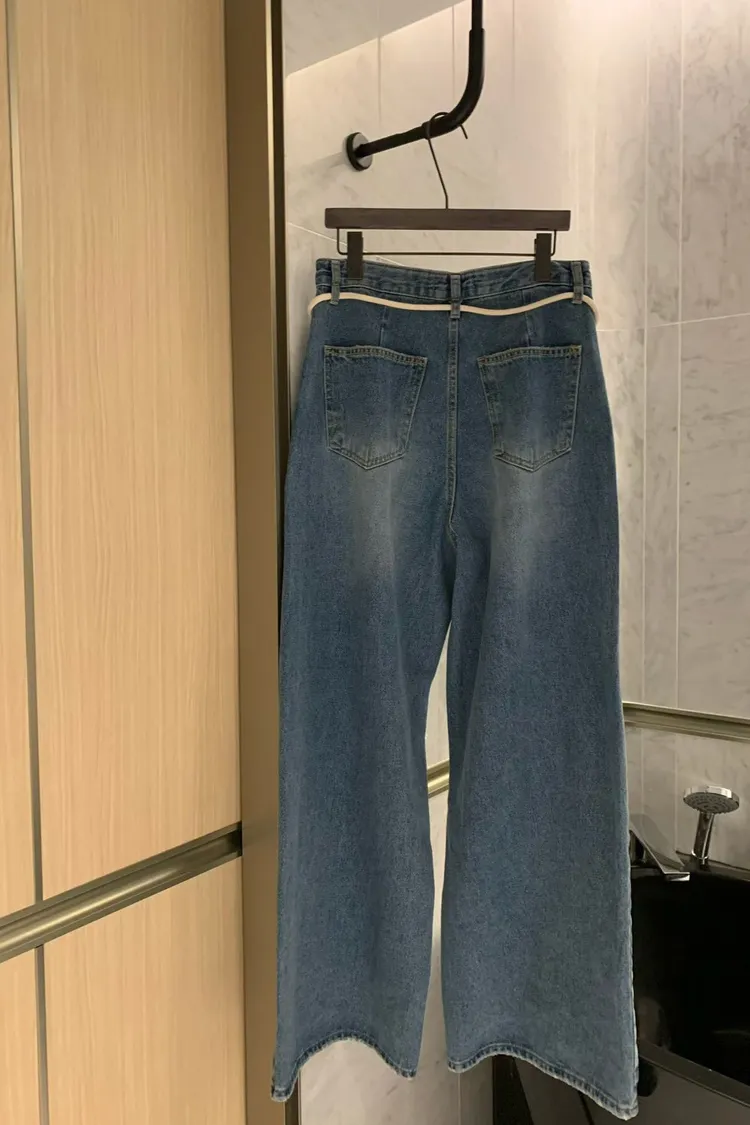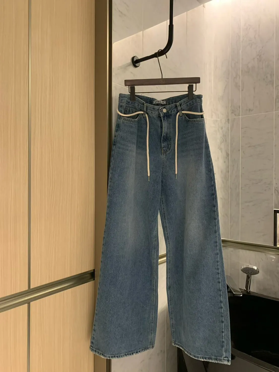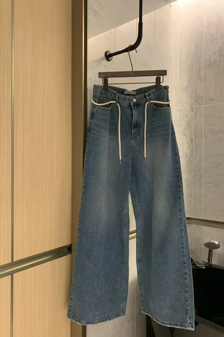 棉 超顯腿長 垂直寬長褲 厚度四季皆可穿 腰有綁繩