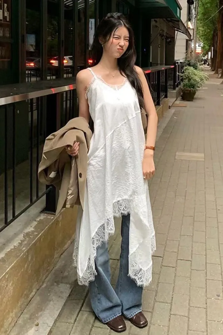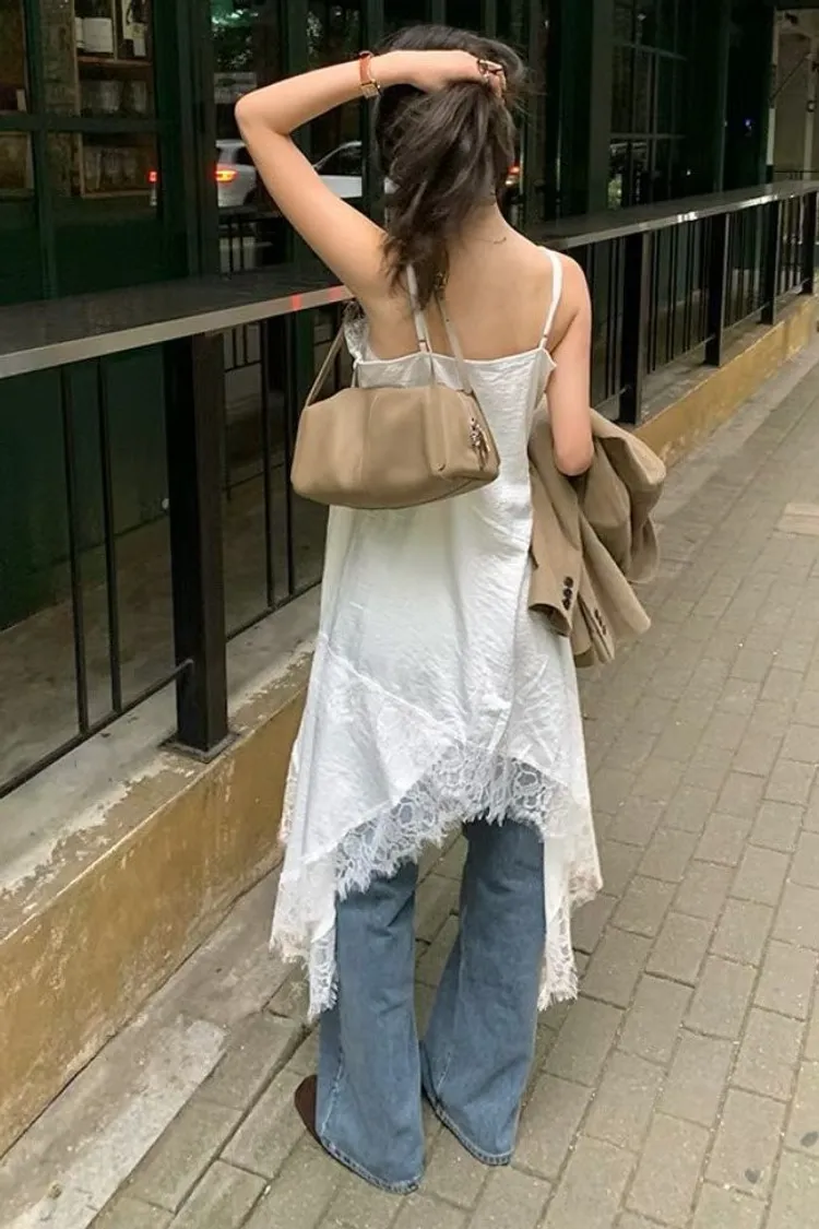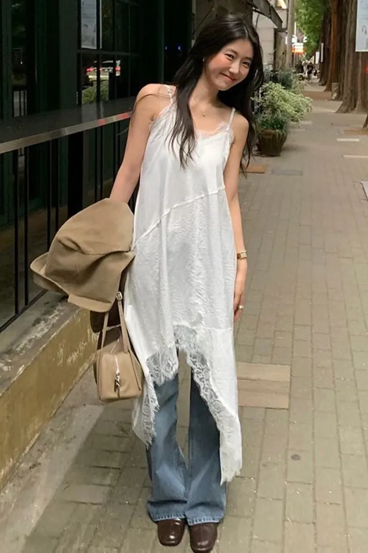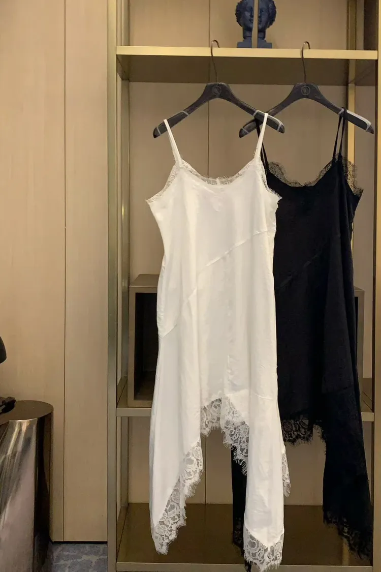 聚酯 柔軟睫毛蕾絲 緞面光澤 肩帶可調 不透 側拉鍊穿脫