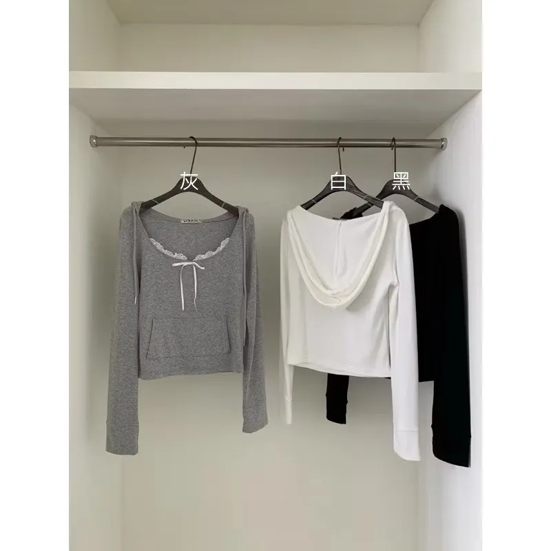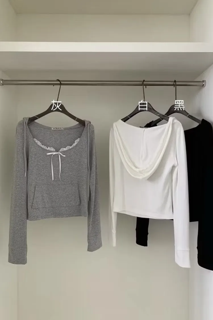 棉+彈力 柔軟舒適 領口蕾絲 胸前綁帶 連帽設計