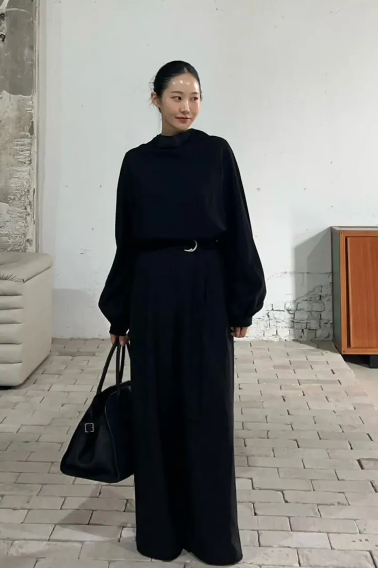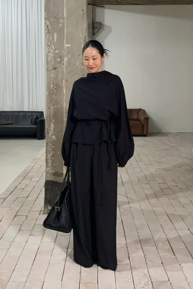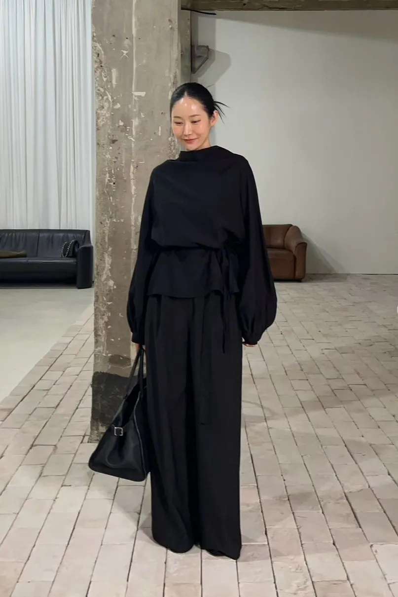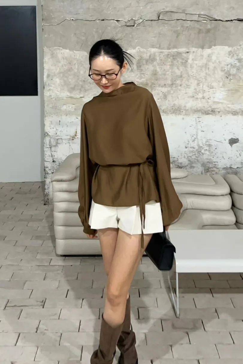 蠶絲+聚酯 光澤感面料 氣質版型 細腰綁帶