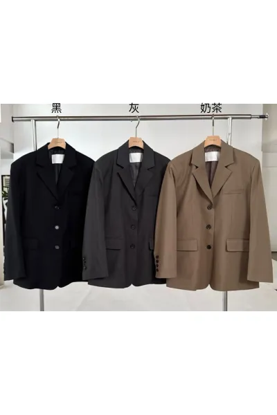羊毛10%+縲縈+聚酯 質感高級 三釦穿脫 有口袋 微墊肩