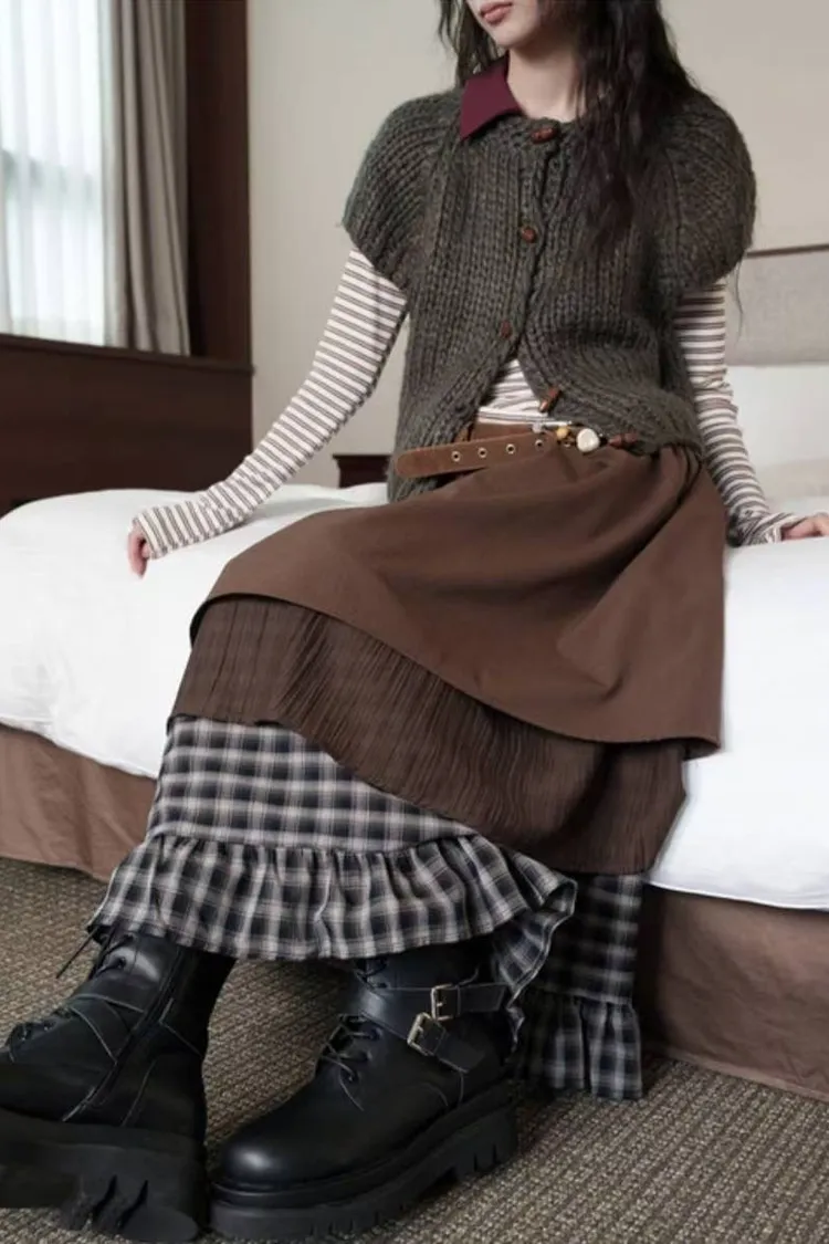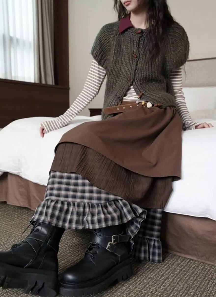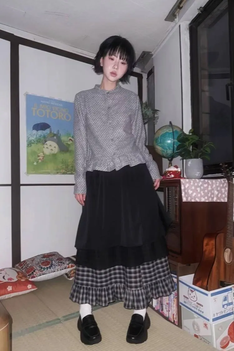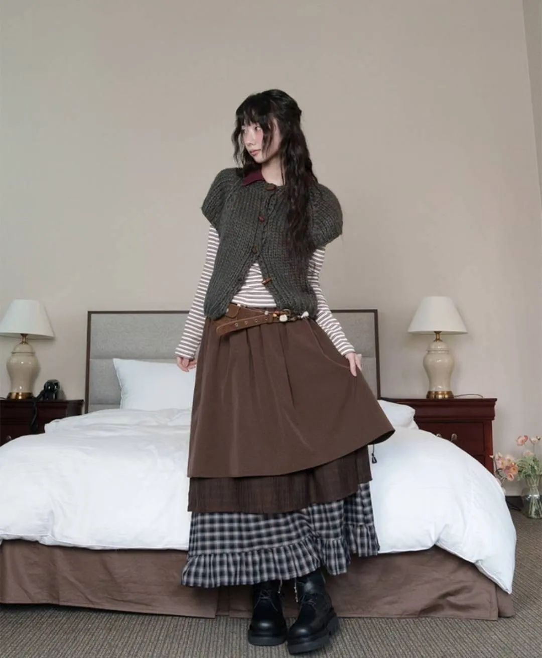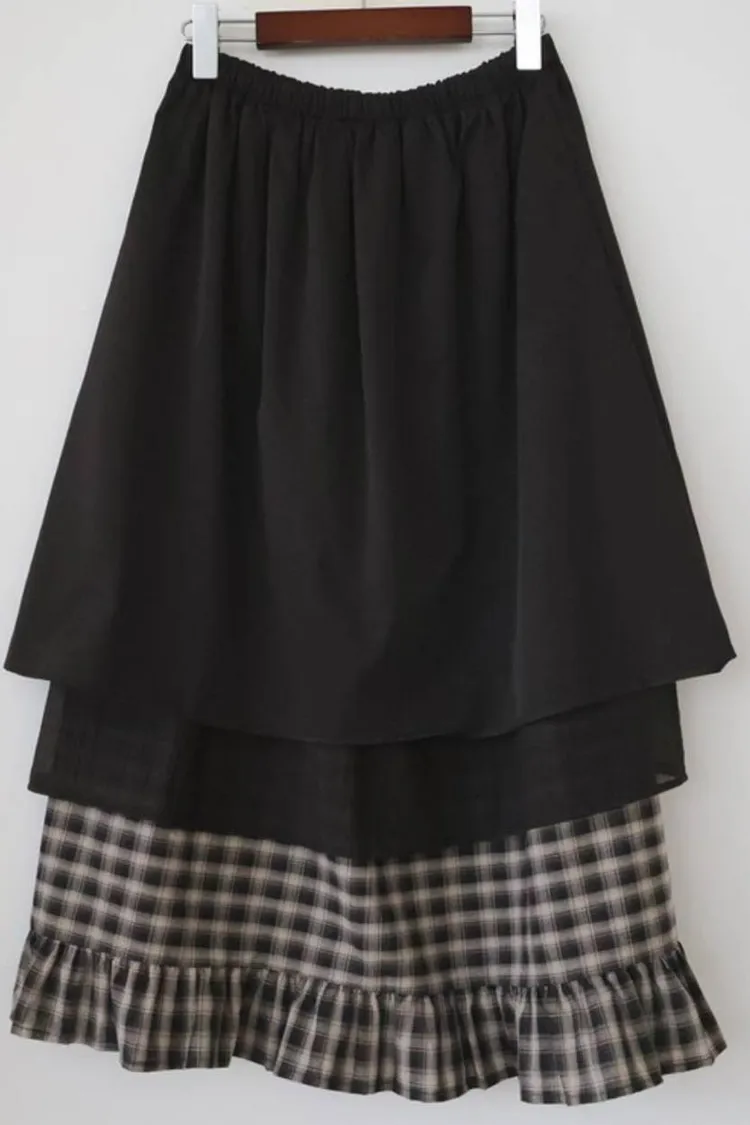棉+雪紡 輕盈薄款 重工拼接 層次設計 腰寬超大彈性 尺寸友善