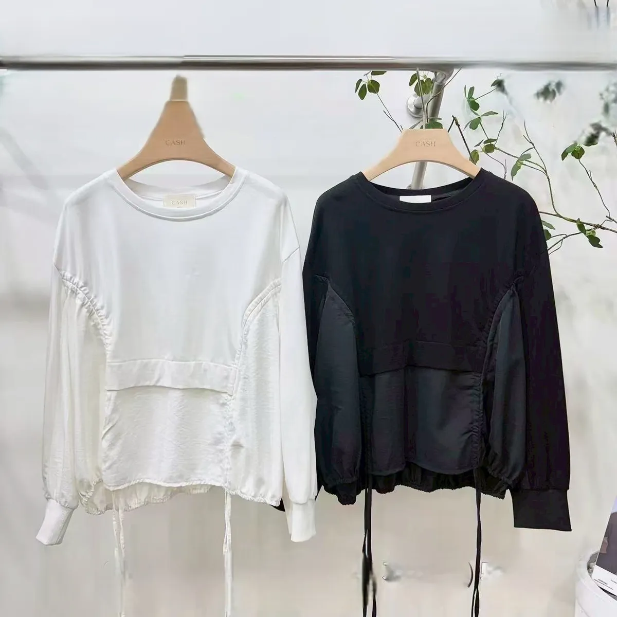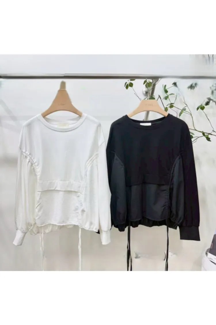 棉+雪紡 微涼感 下擺抽繩 拼接異材質 下擺大彈性