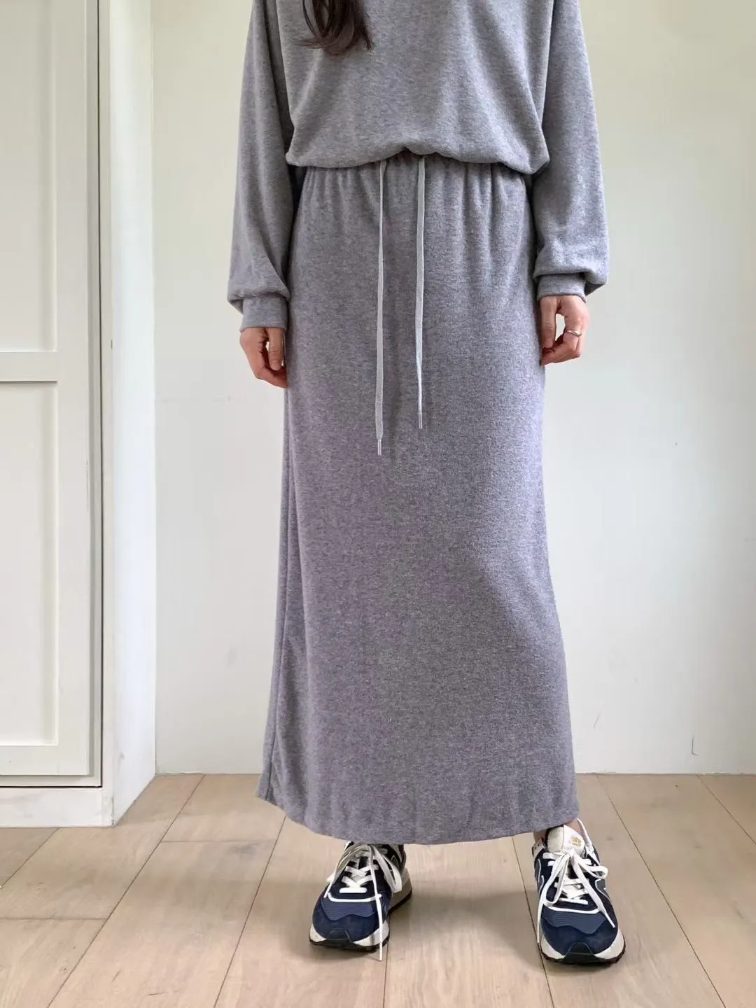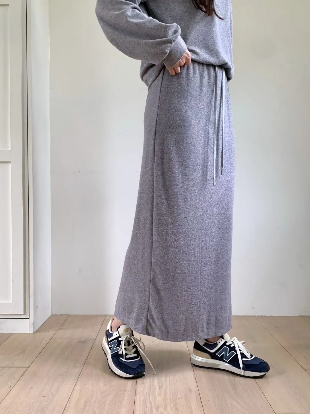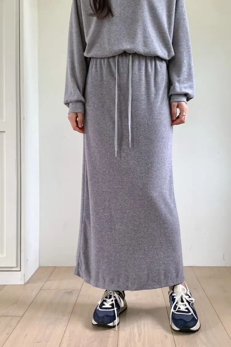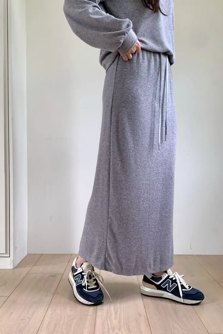 聚酯+縲縈+尼龍 觸感舒適 顯瘦修飾 全腰鬆緊有抽繩 灰有混色感