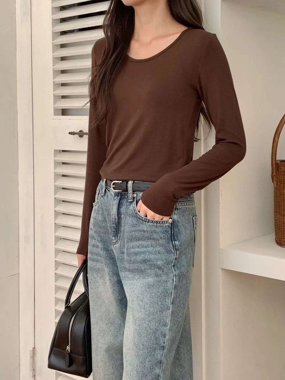 縲縈+彈力纖維 舒適度高 麻糬彈力 顯瘦好看 微合身版型 寬U領