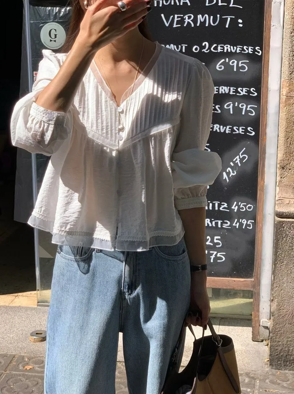縲縈+尼龍 推薦款 輕盈薄款 細節精緻 透光V領 排釦穿脫