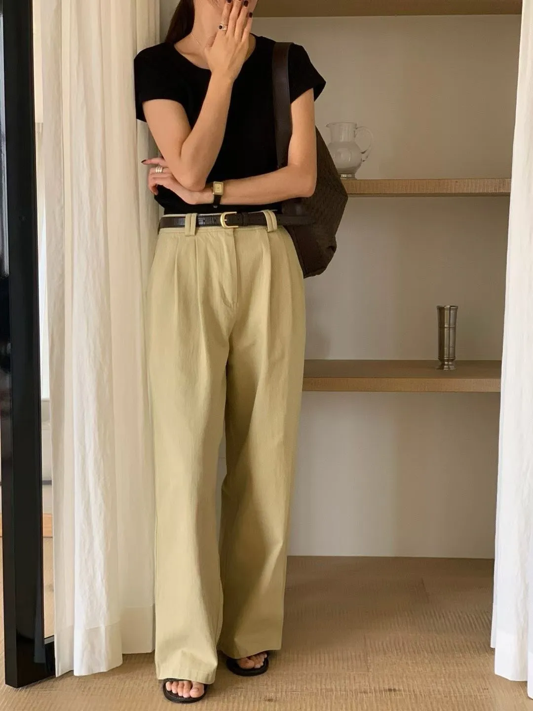 棉 藏釦設計 雙腰耳 褲管雙摺線 有口袋