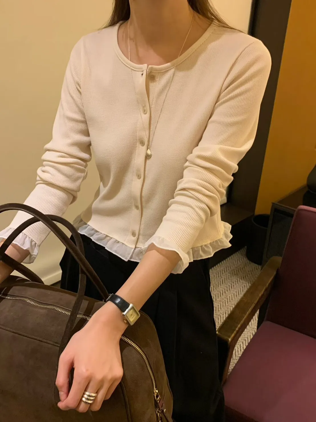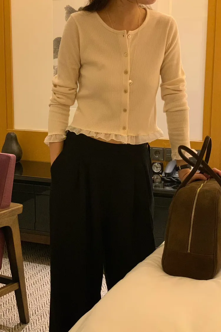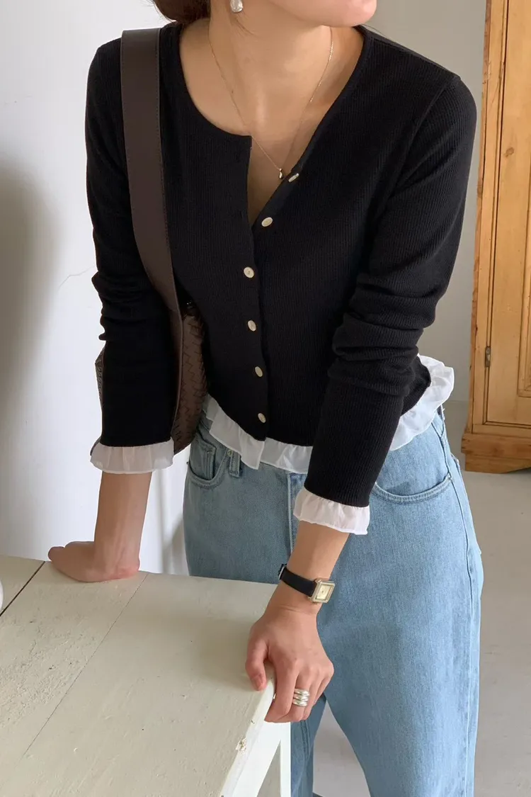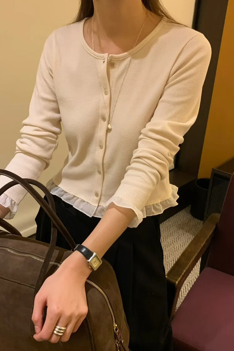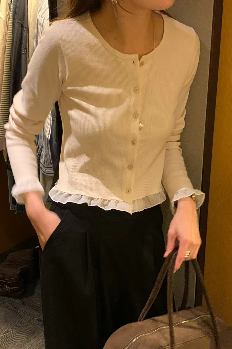 棉+彈力 面料舒適 短版好比例 下擺袖口拼接荷葉設計