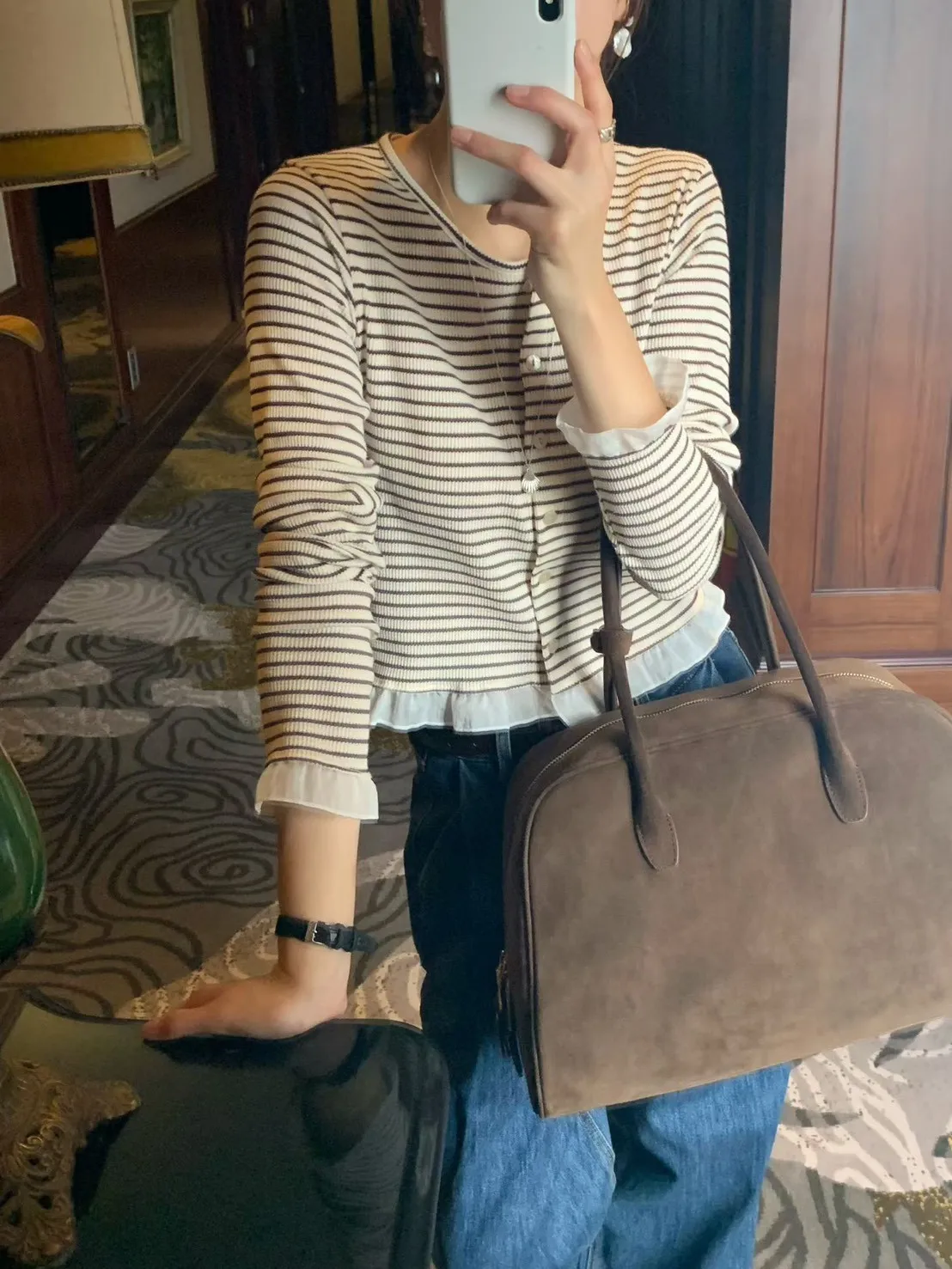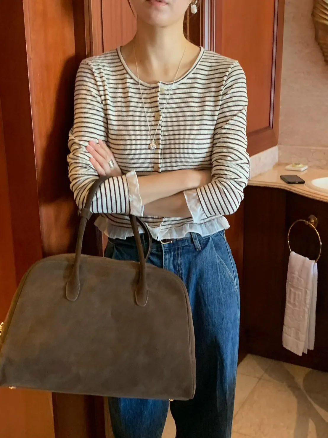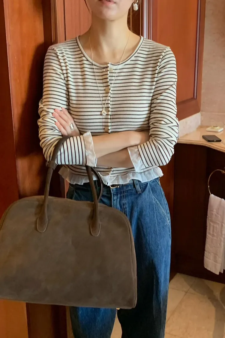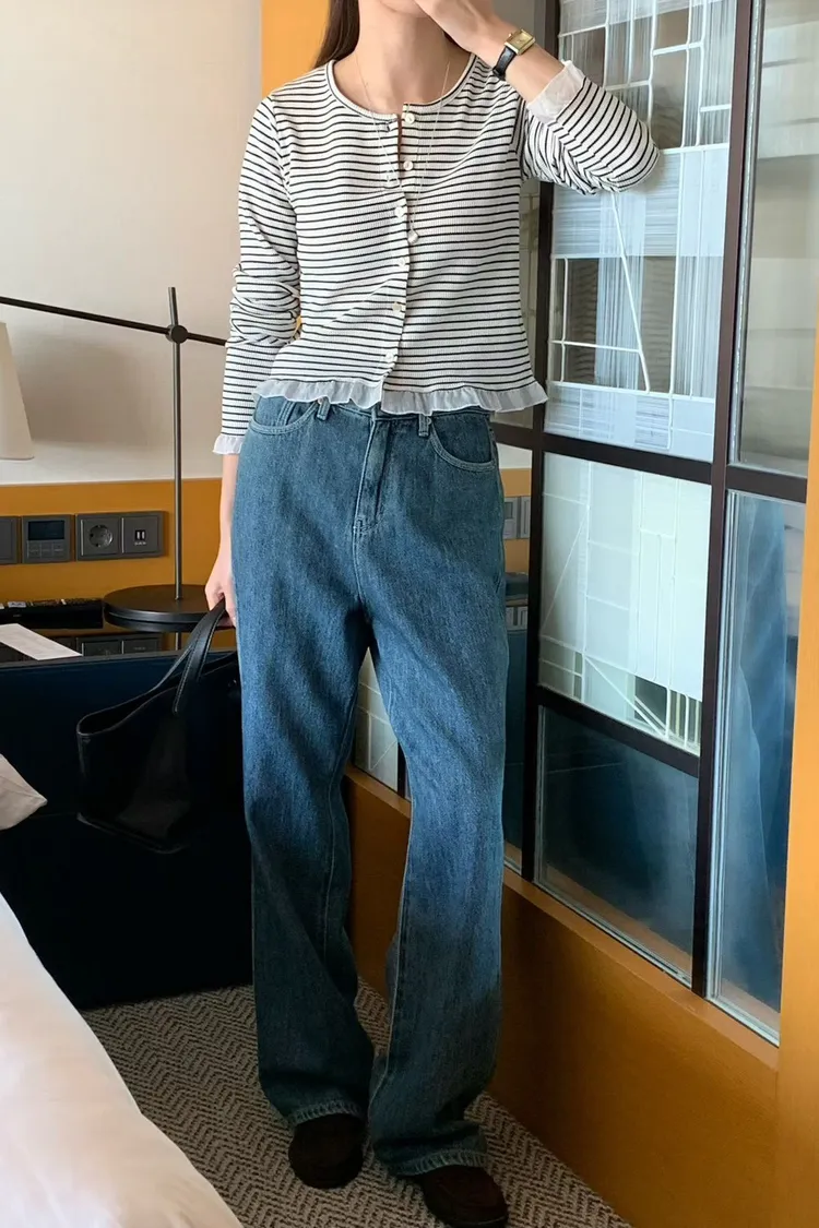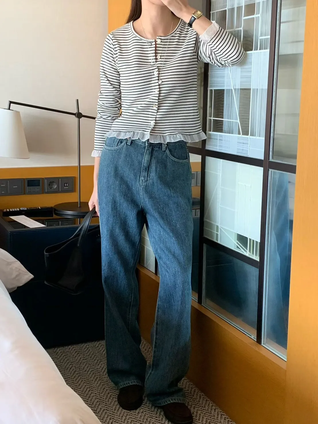 棉+彈力 面料舒適 短版好比例 下擺袖口拼接荷葉設計