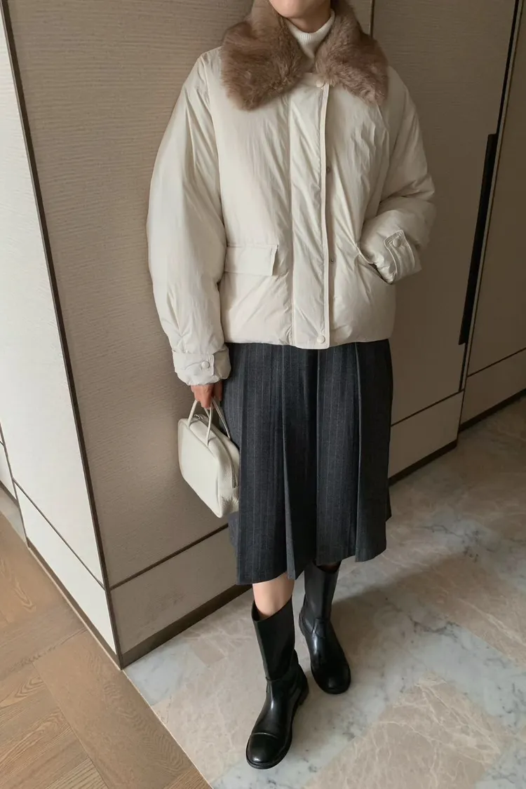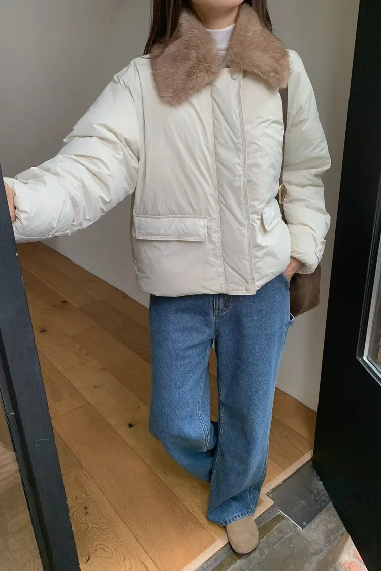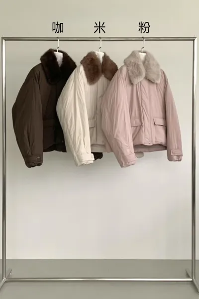 鴨絨80%+羽毛20%+尼龍 拉鍊釦穿脫 有口袋 尺寸友善 毛毛領可拆