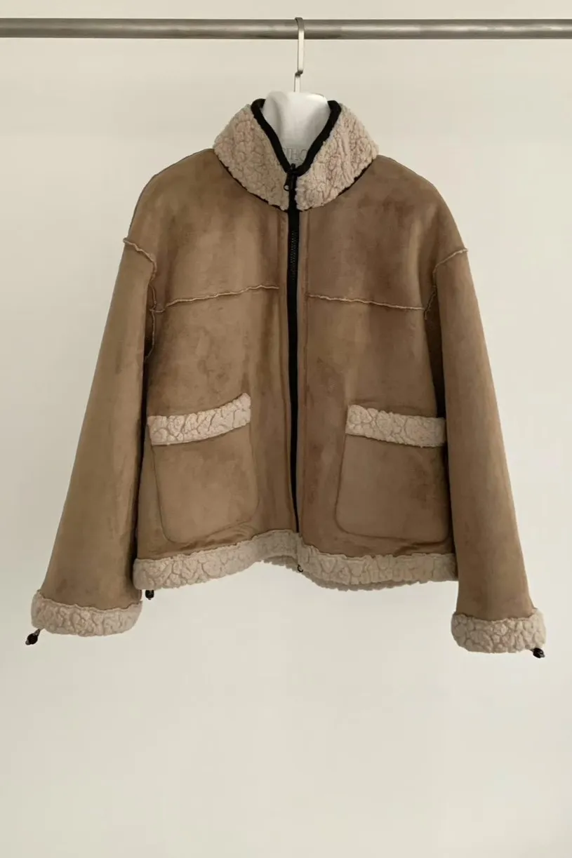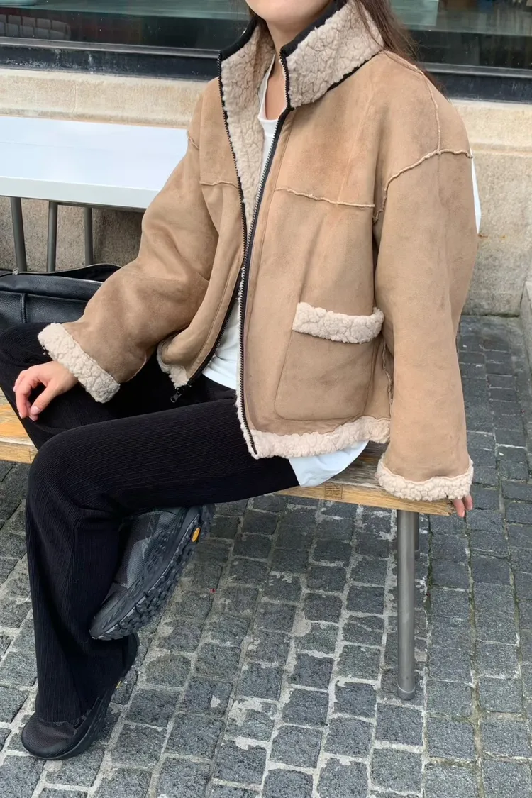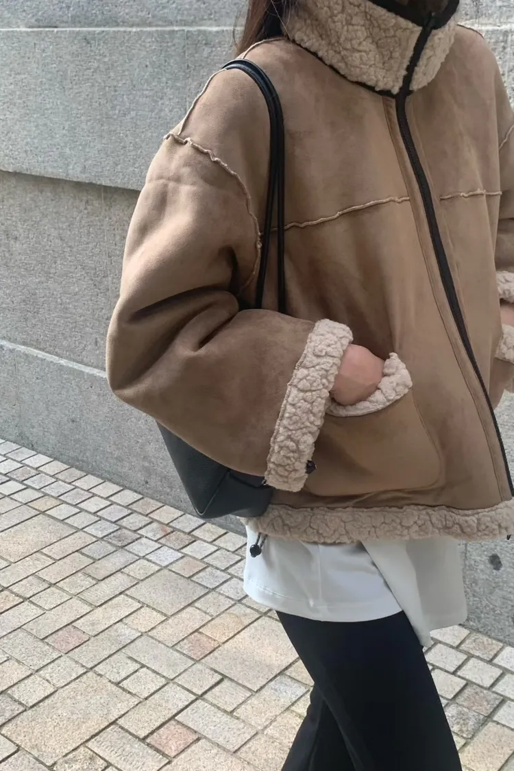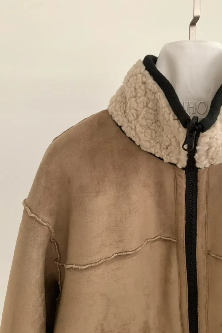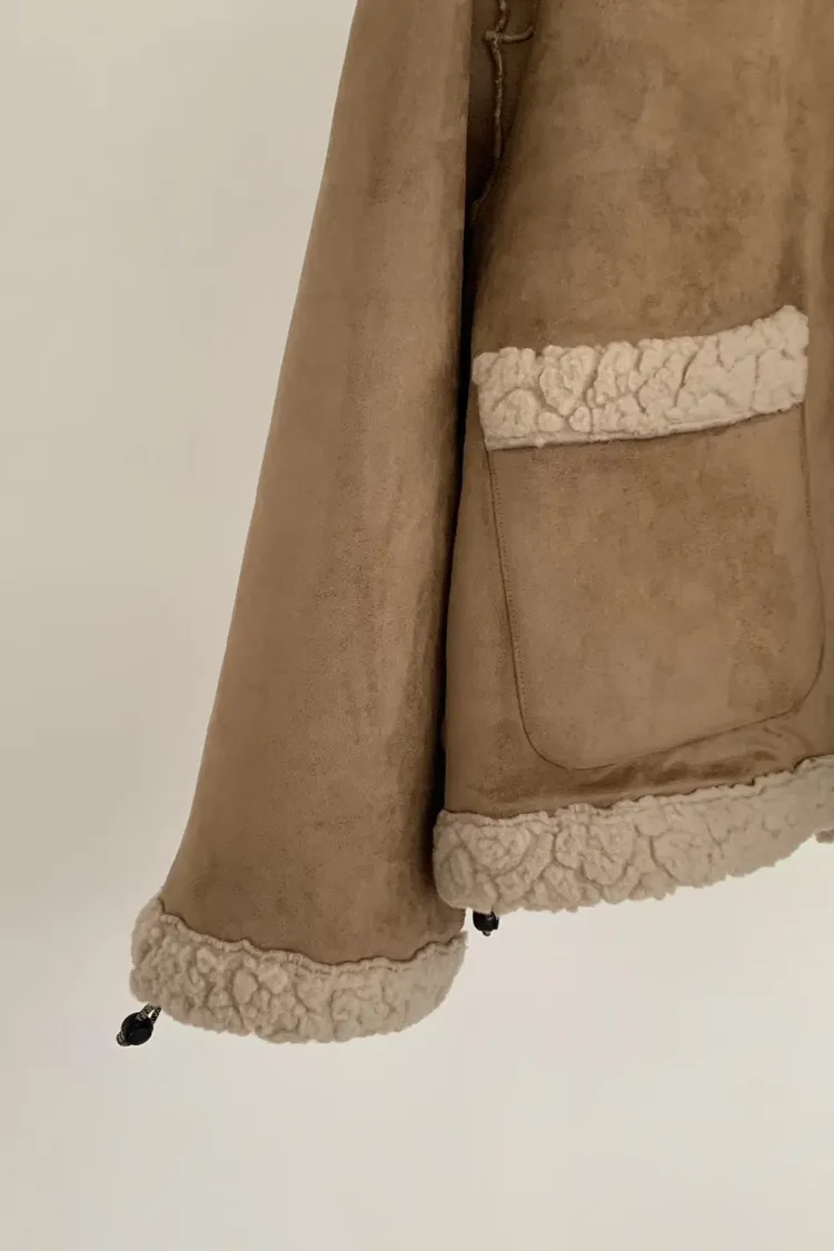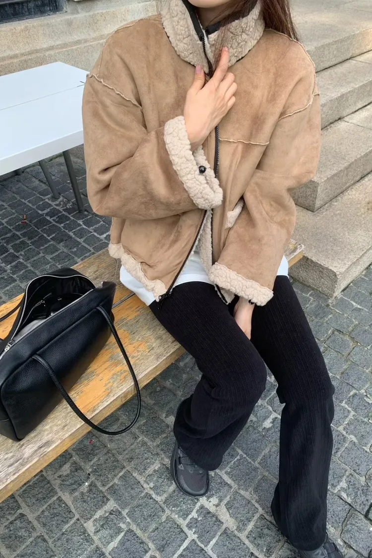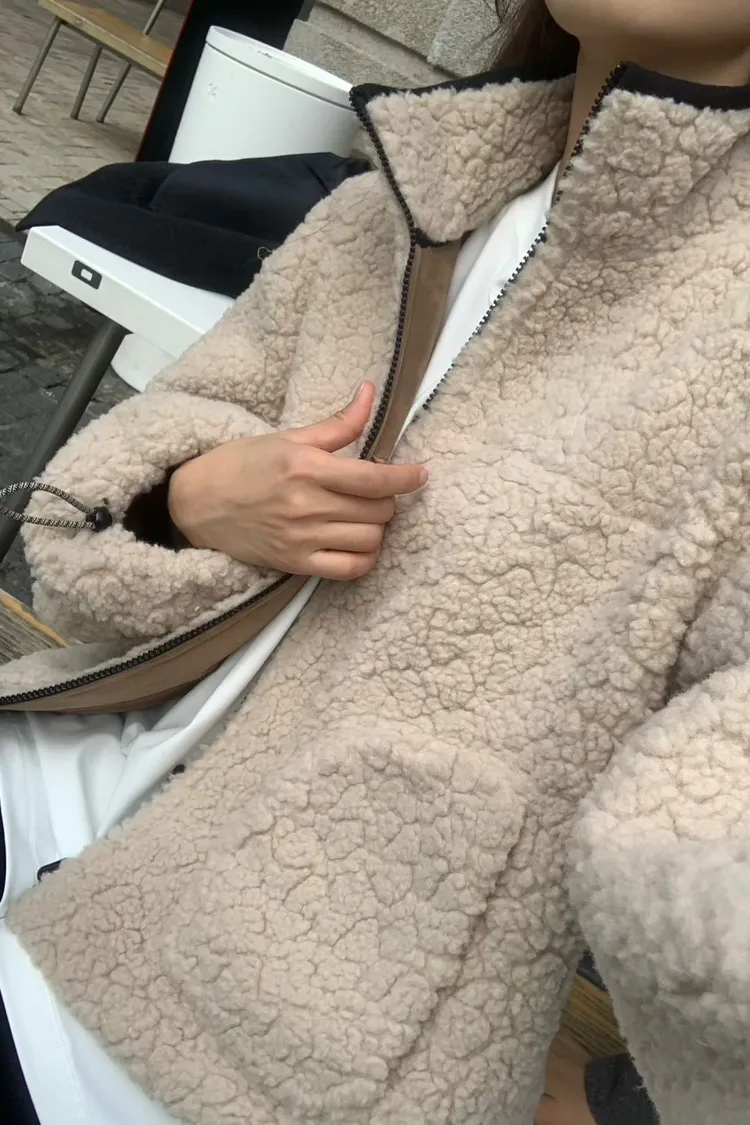 聚酯 細緻麂皮仿羊毛 輕盈不重 拉鍊穿脫 有口袋