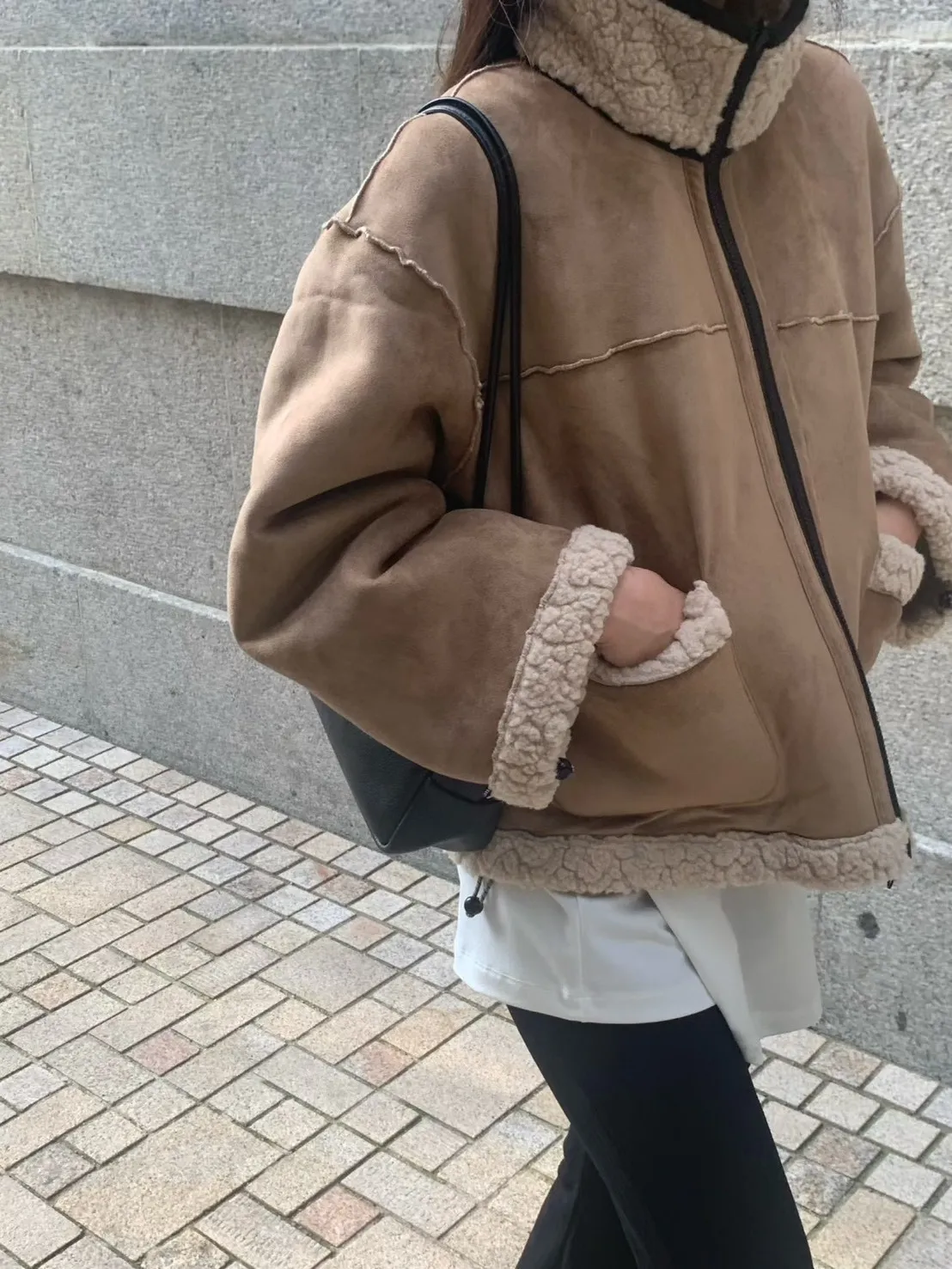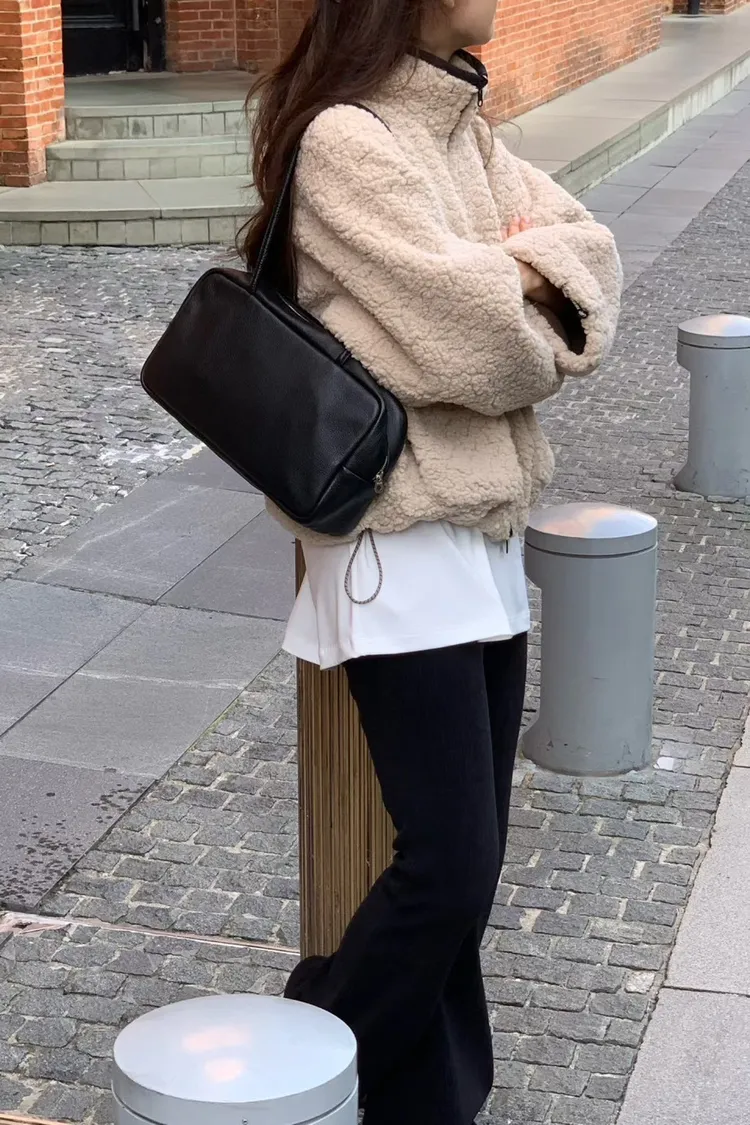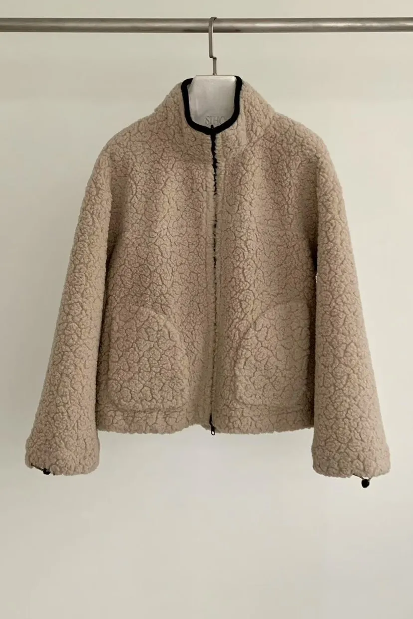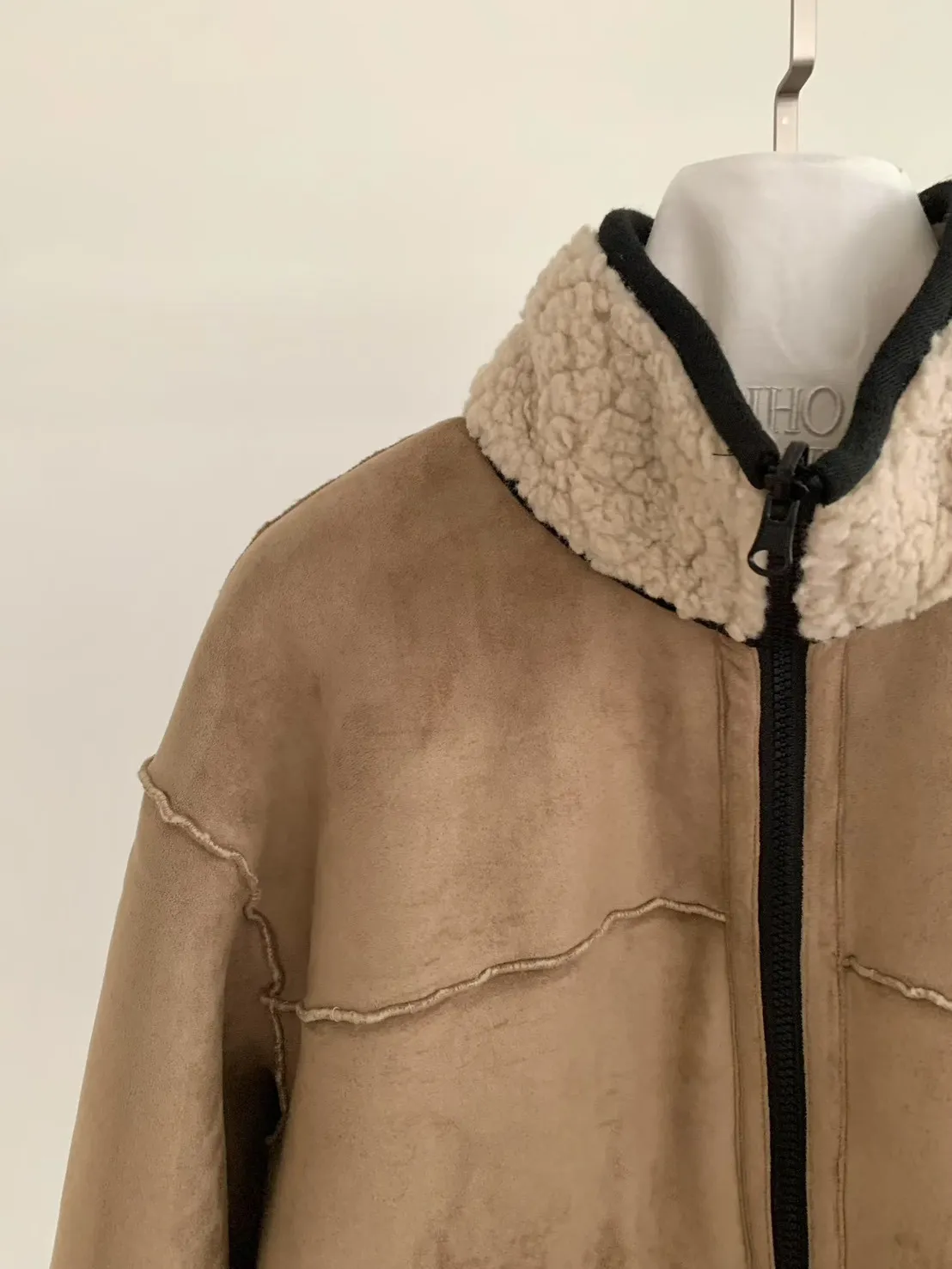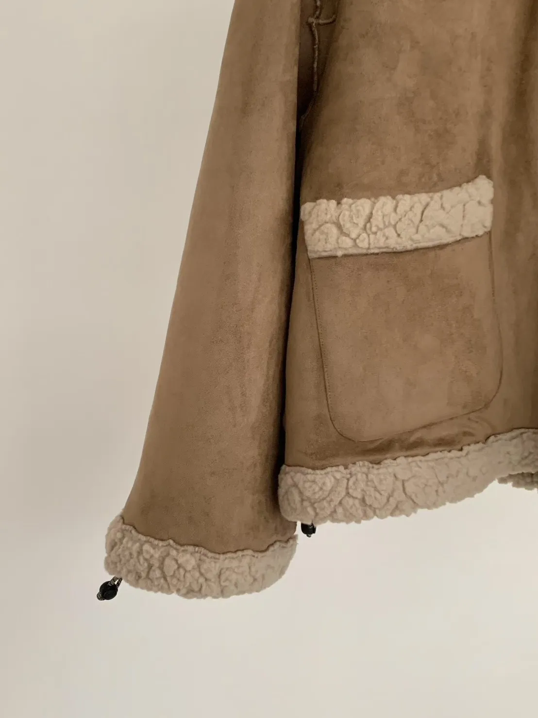聚酯 細緻麂皮仿羊毛 輕盈不重 拉鍊穿脫 有口袋