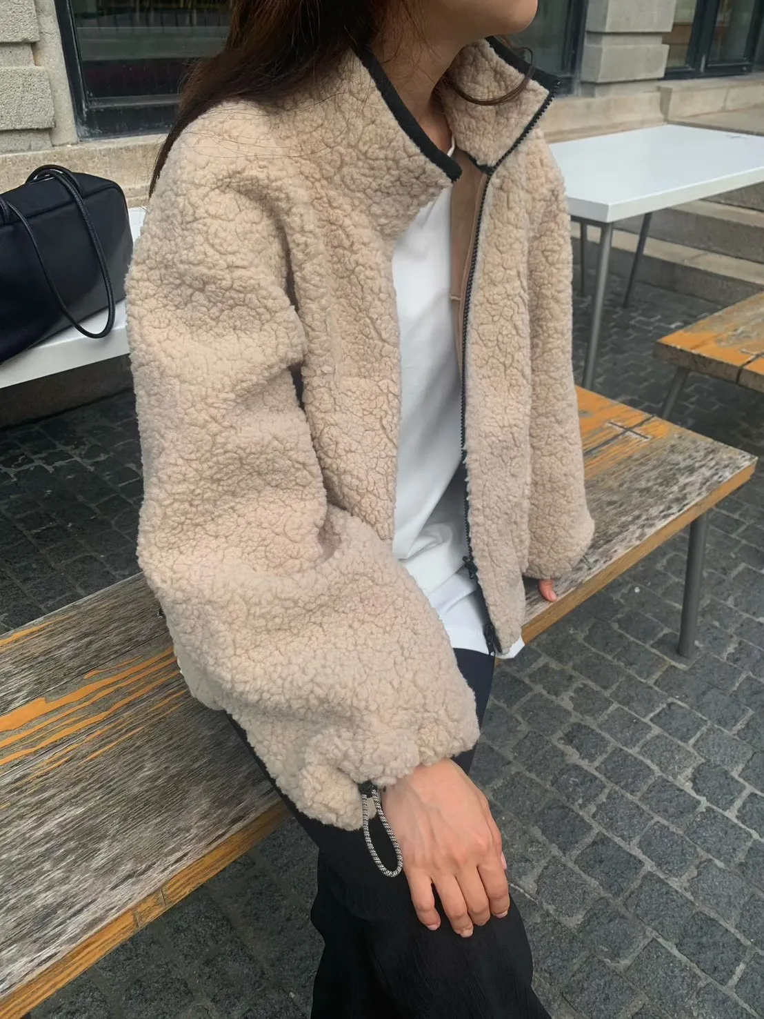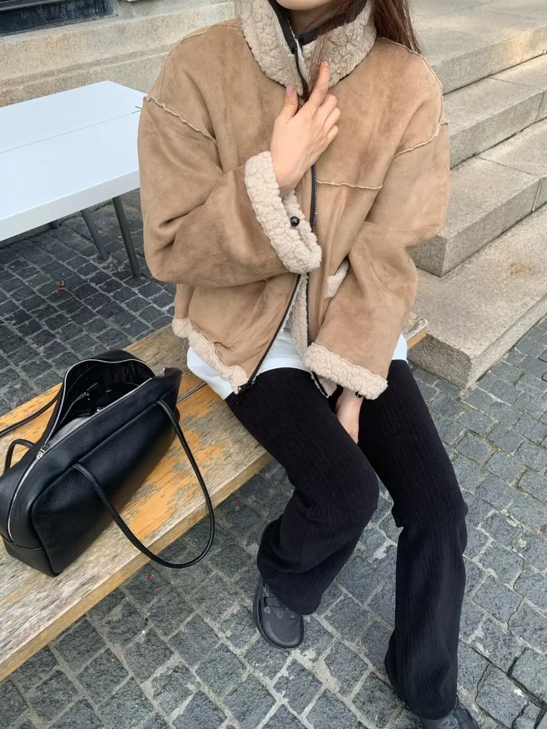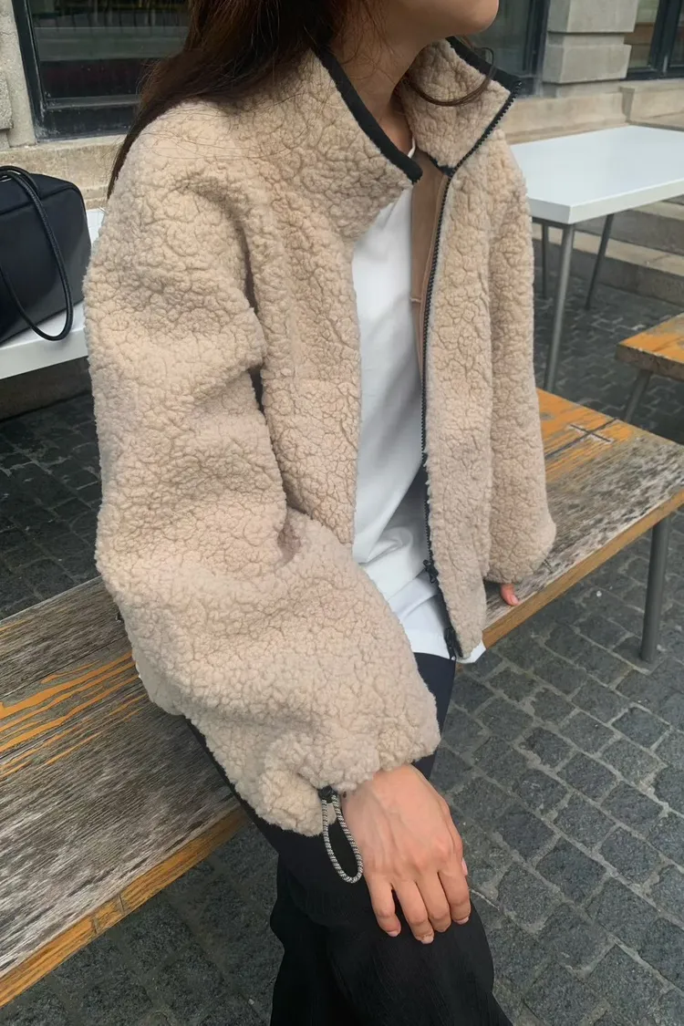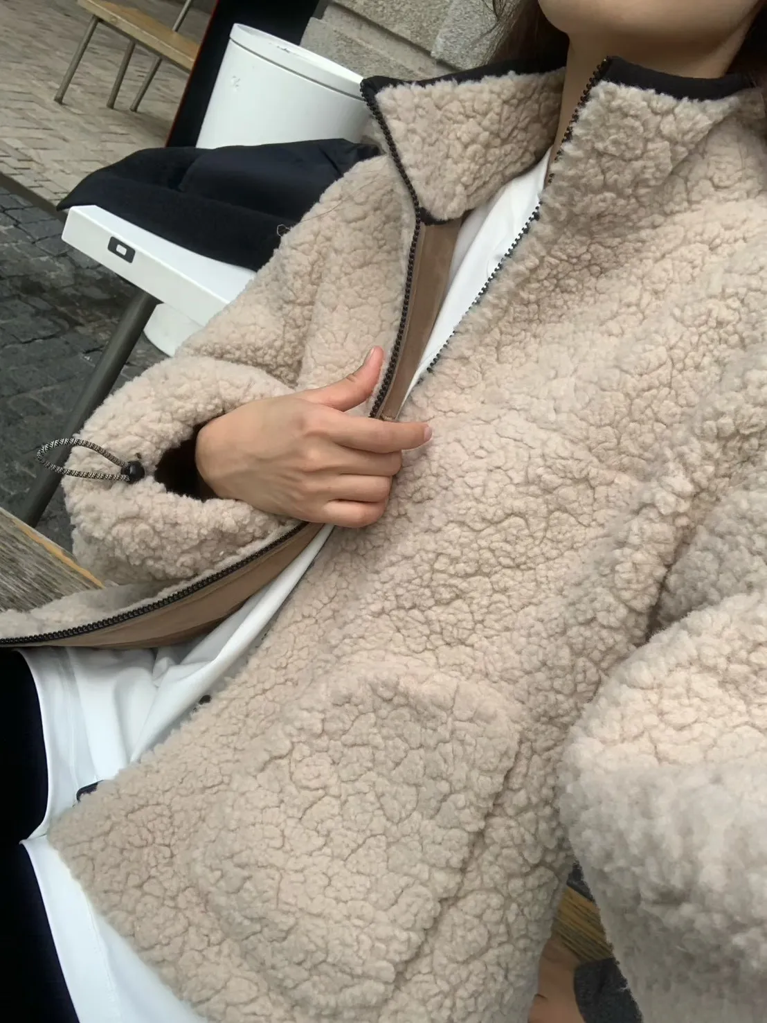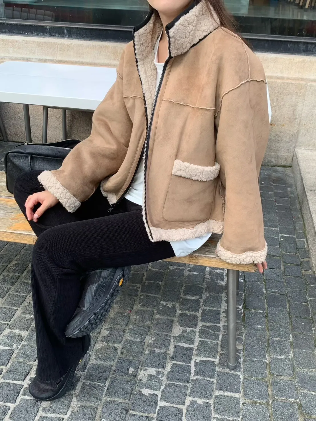 聚酯 細緻麂皮仿羊毛 輕盈不重 拉鍊穿脫 有口袋