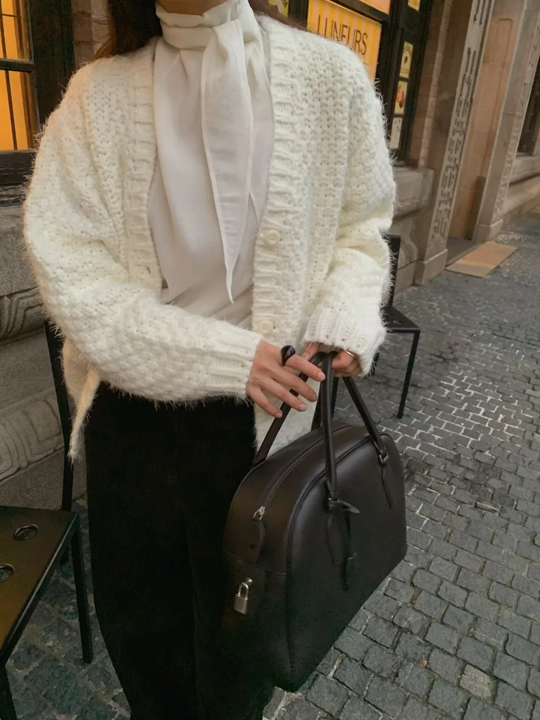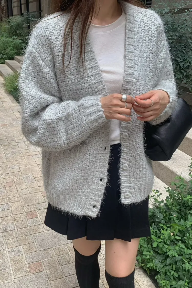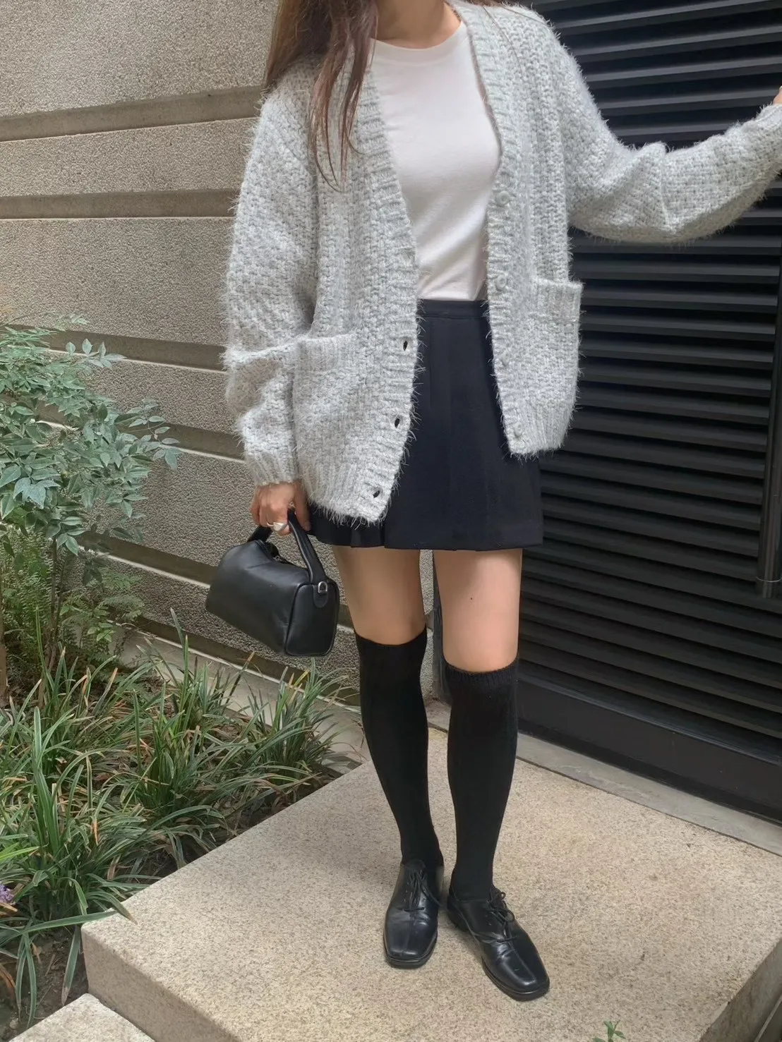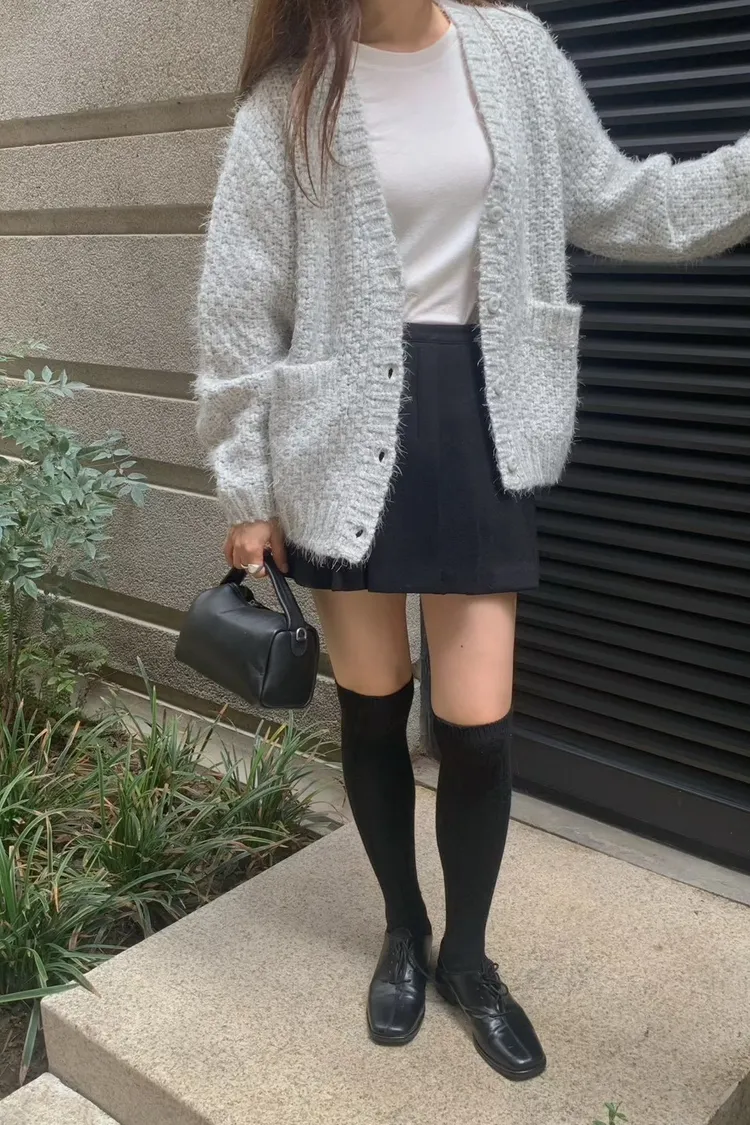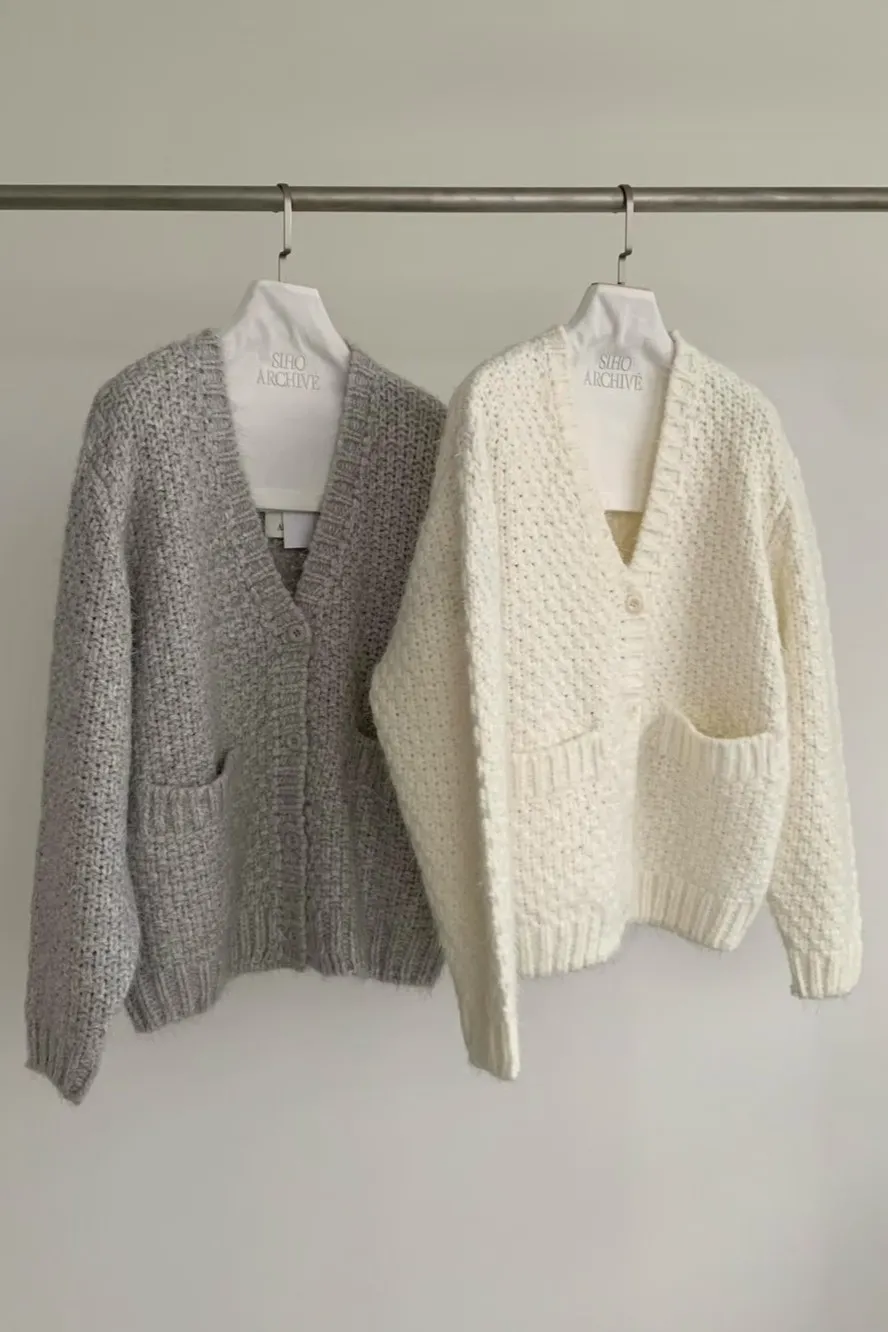 羊毛10%+聚酯 雙口袋 慵懶粗針織 藏肉顯瘦 空間寬鬆