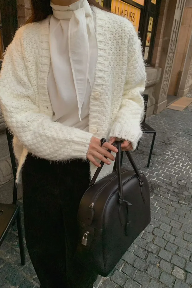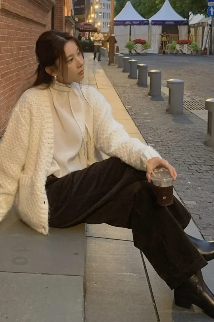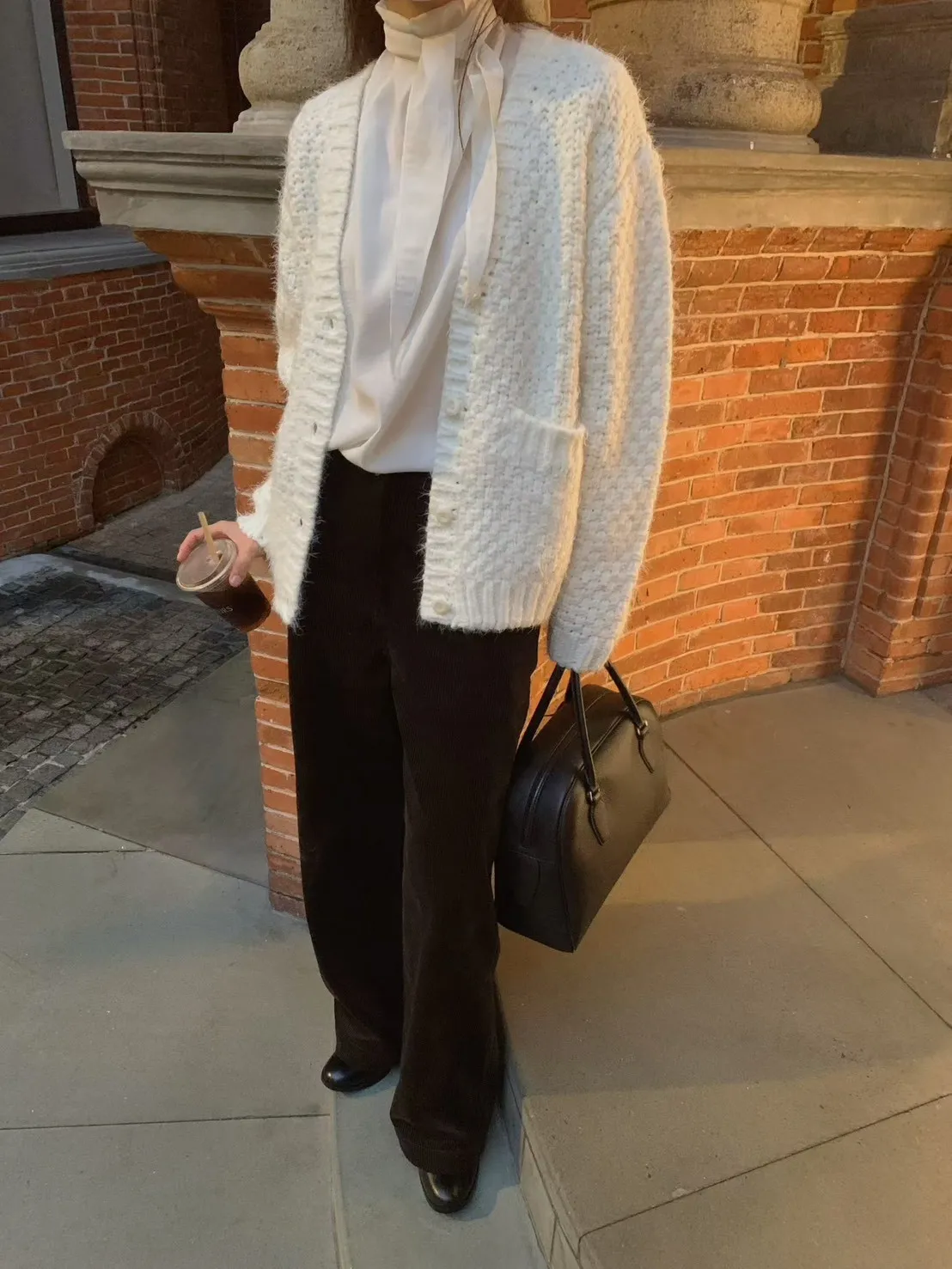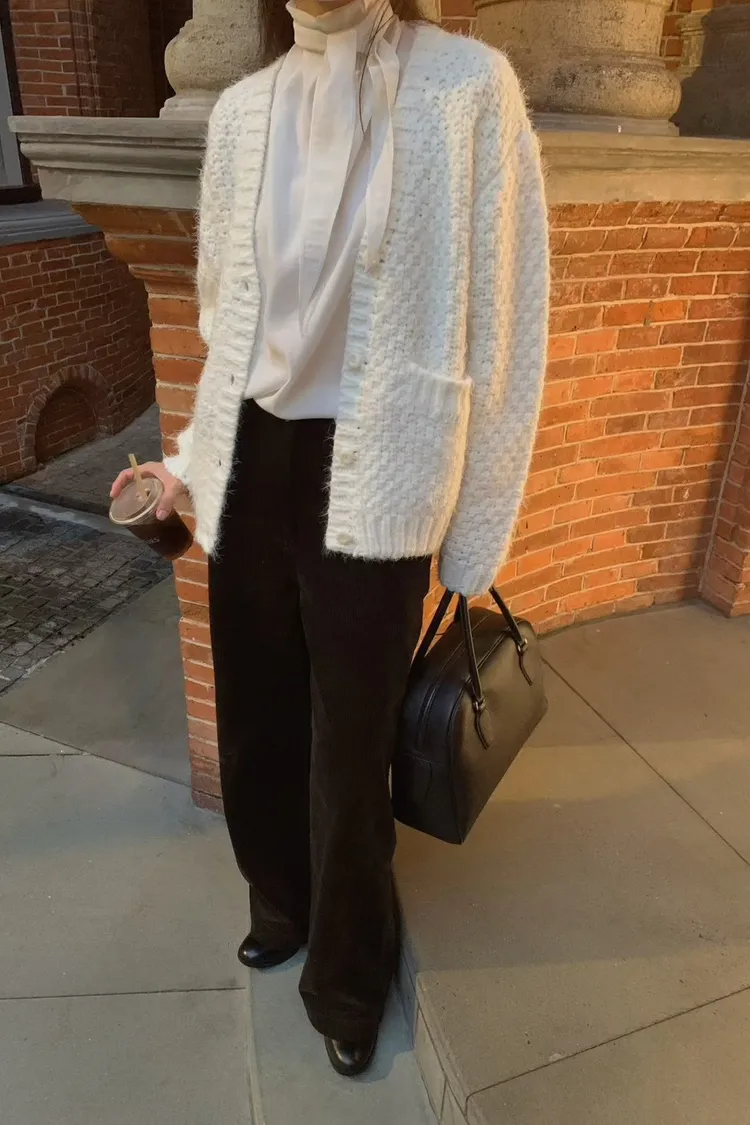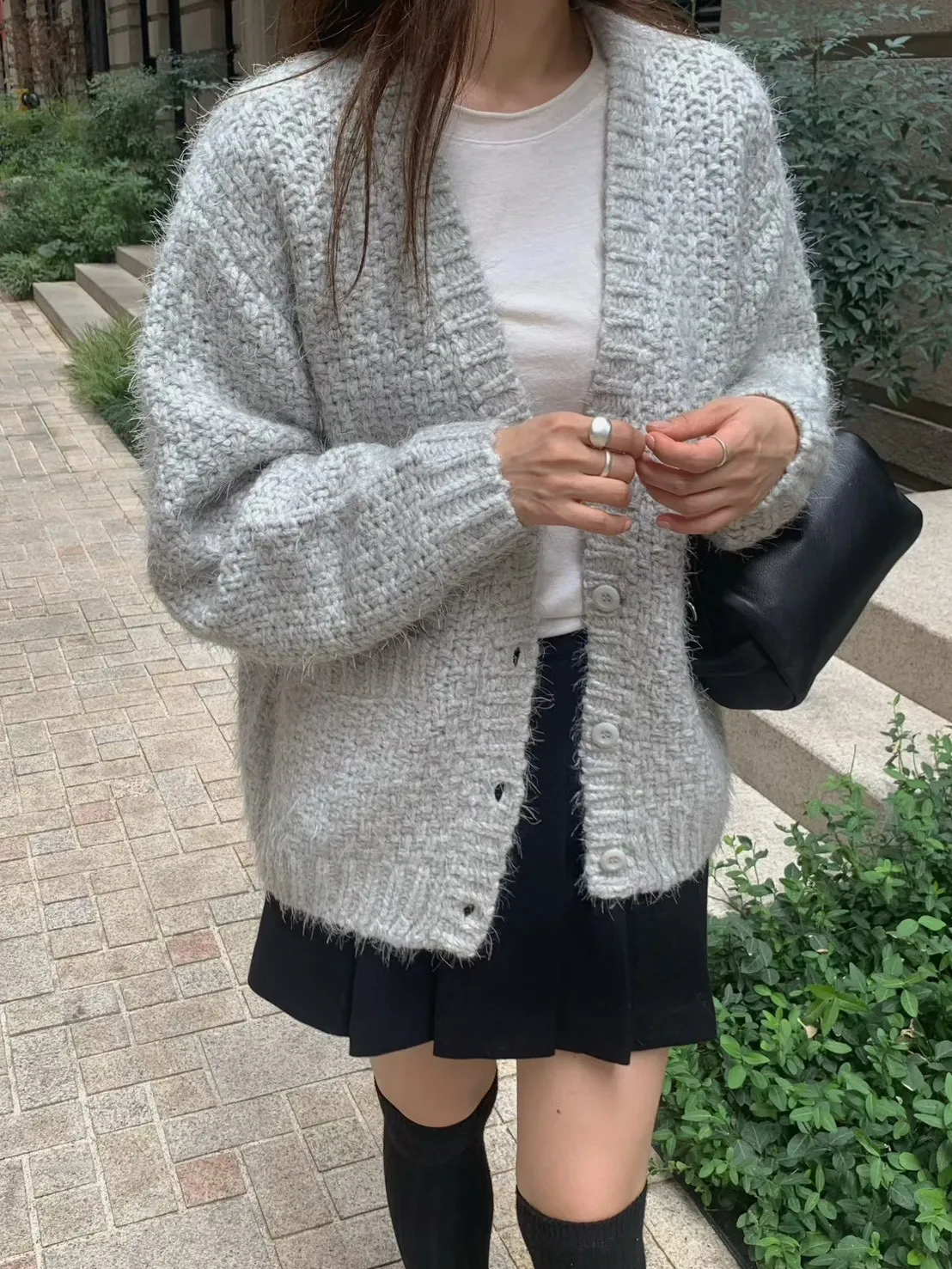 羊毛10%+聚酯 雙口袋 慵懶粗針織 藏肉顯瘦 空間寬鬆