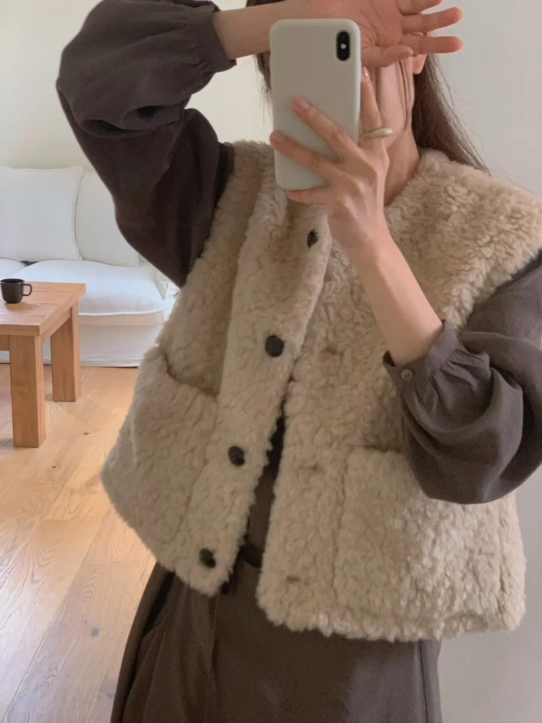 羊毛18%+聚酯 質感很好 有內裡 質地輕盈 有口袋 四釦穿脫