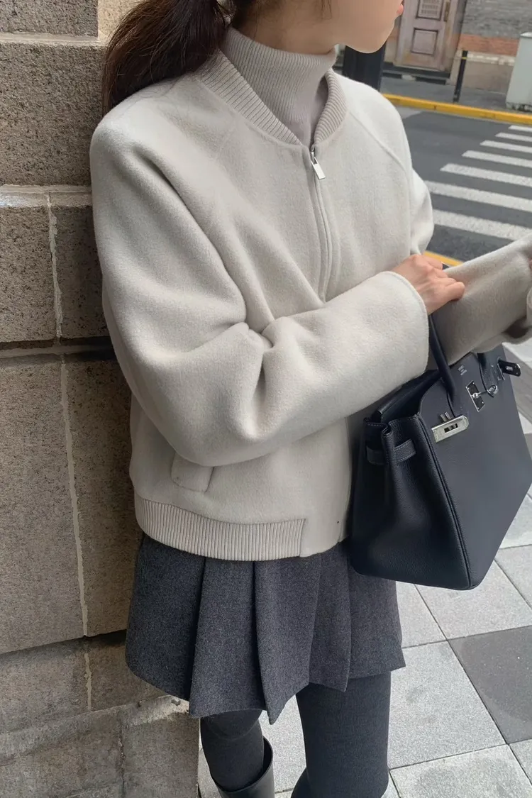 羊毛80% 手工羊毛 拉鍊穿脫 有口袋 袖口釦 有內裡 質地輕盈
