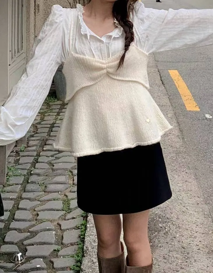 羊毛+羊駝+壓克力 親膚 疊搭單品 腰側小標 傘擺小卷邊 肩帶固定