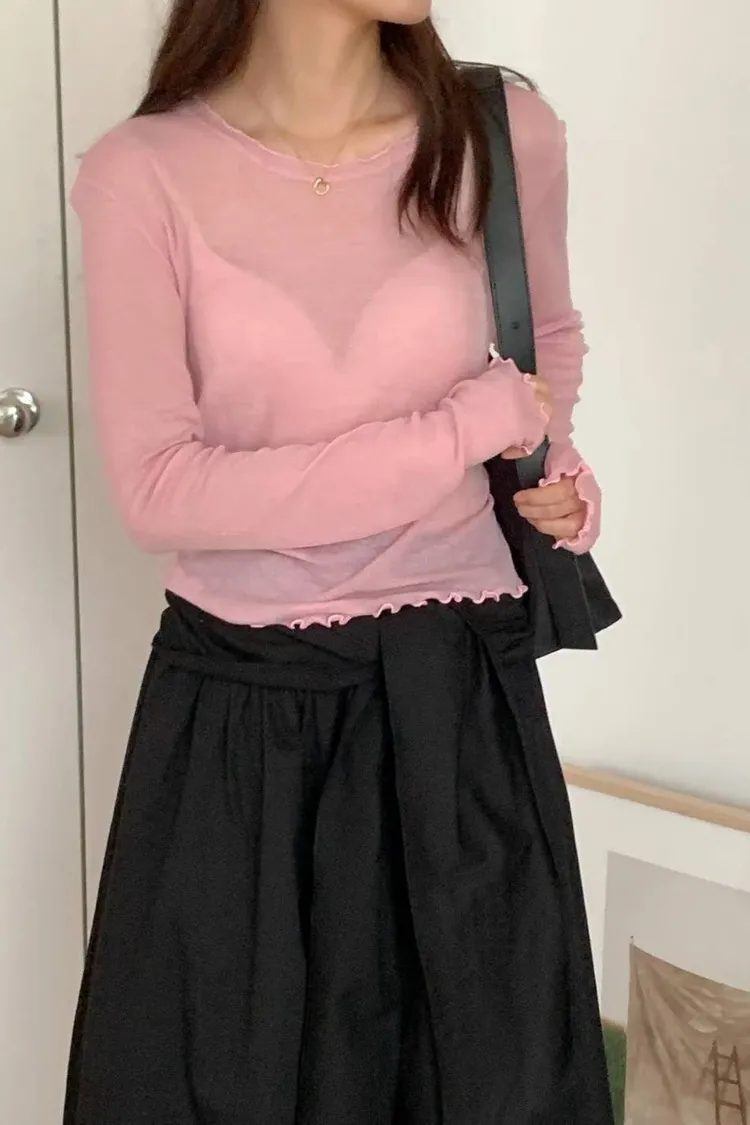 天絲+羊毛 薄款透光 輕盈質地 木耳捲邊 柔軟有彈性