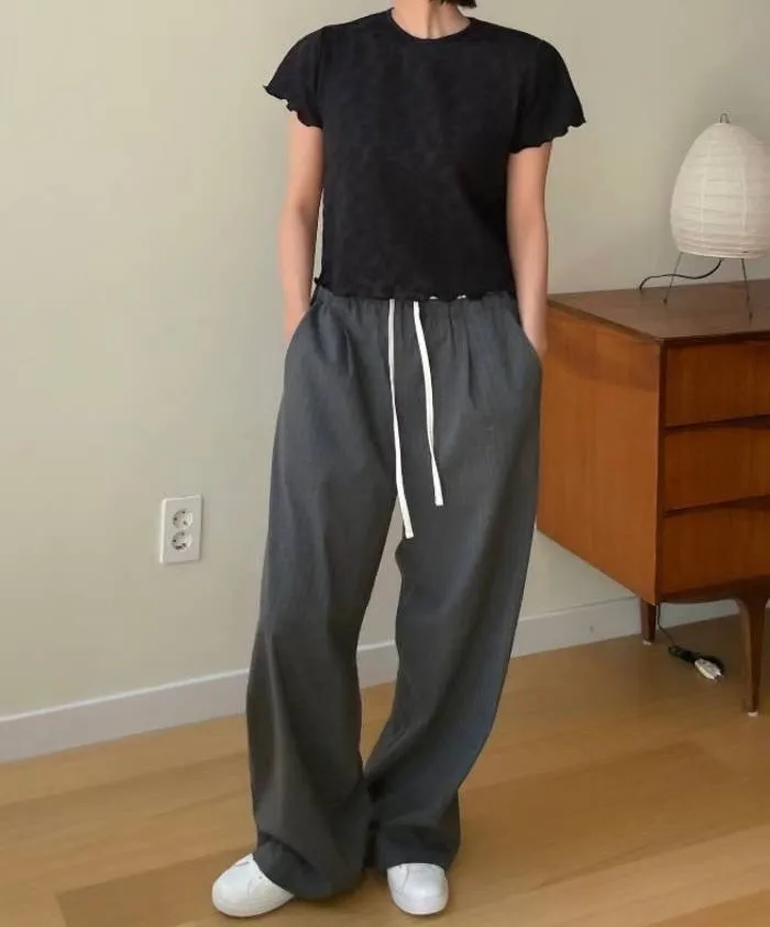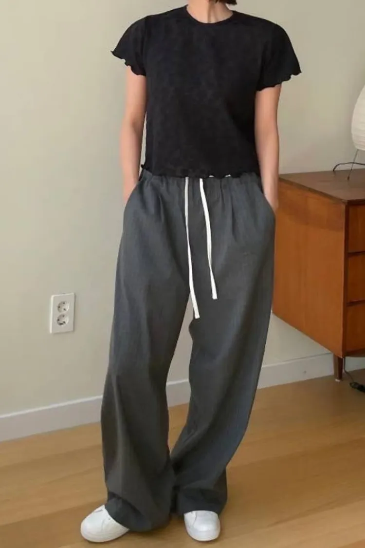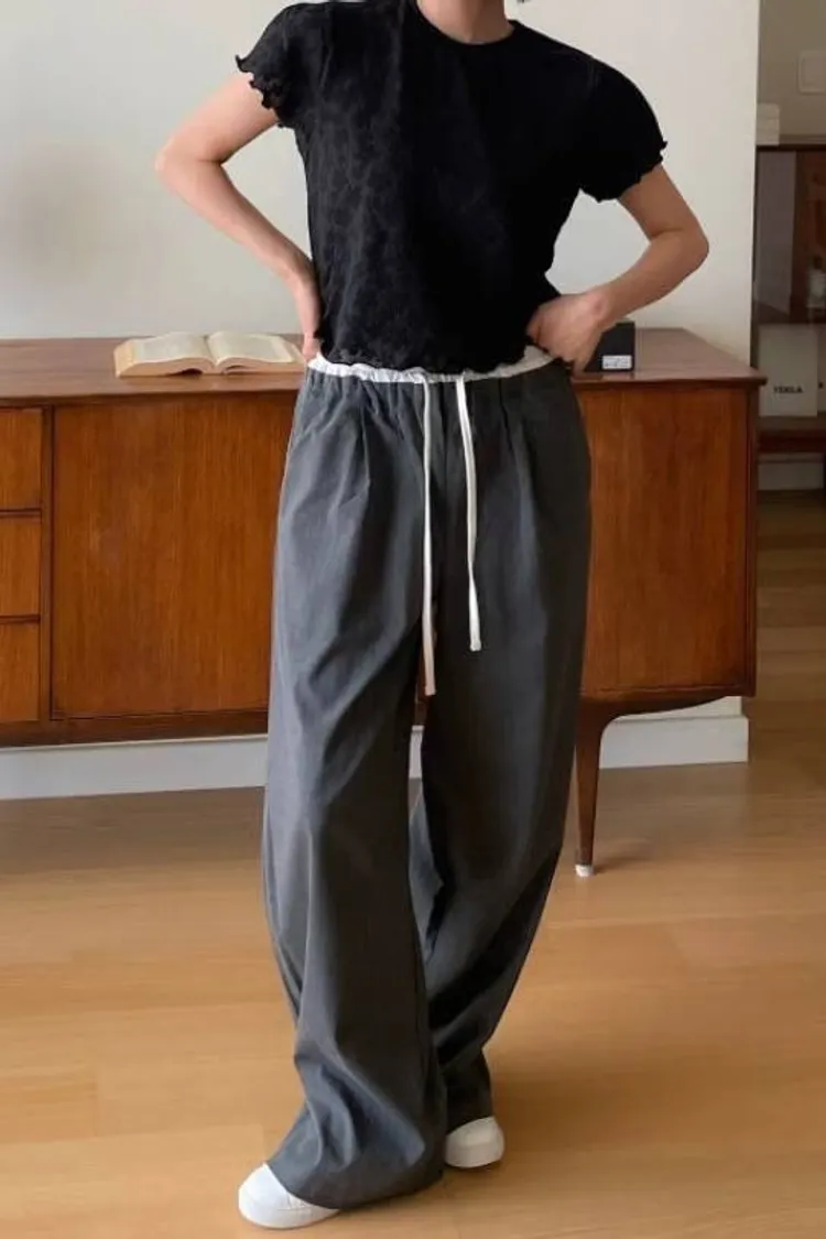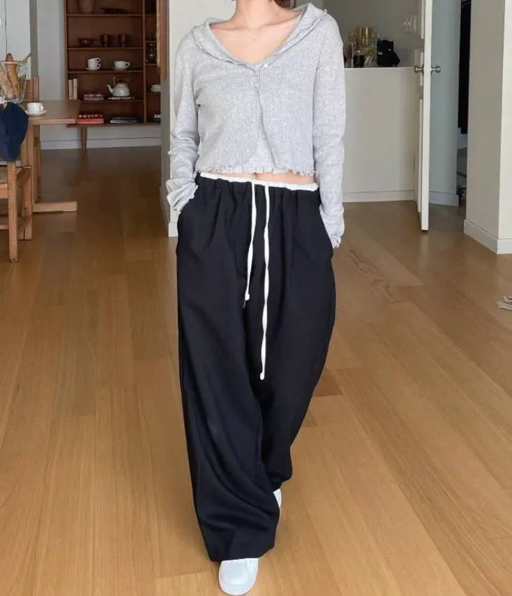 棉,全腰鬆緊有抽繩 有口袋 寬鬆褲管 顯瘦藏肉