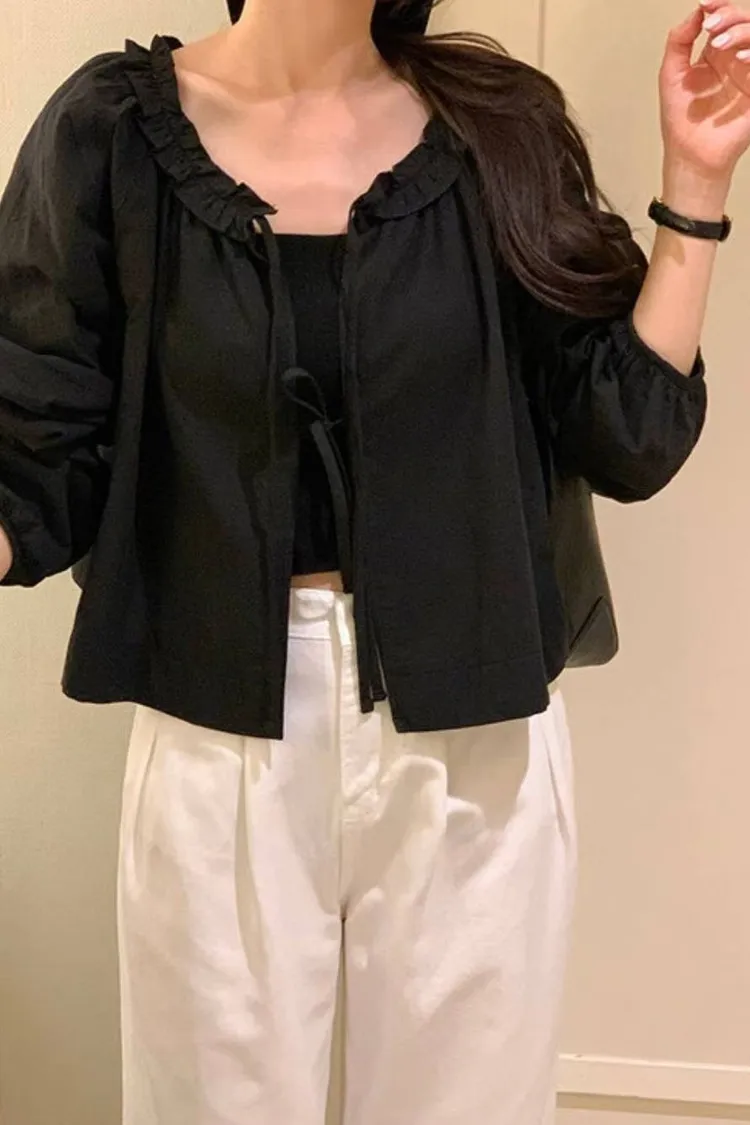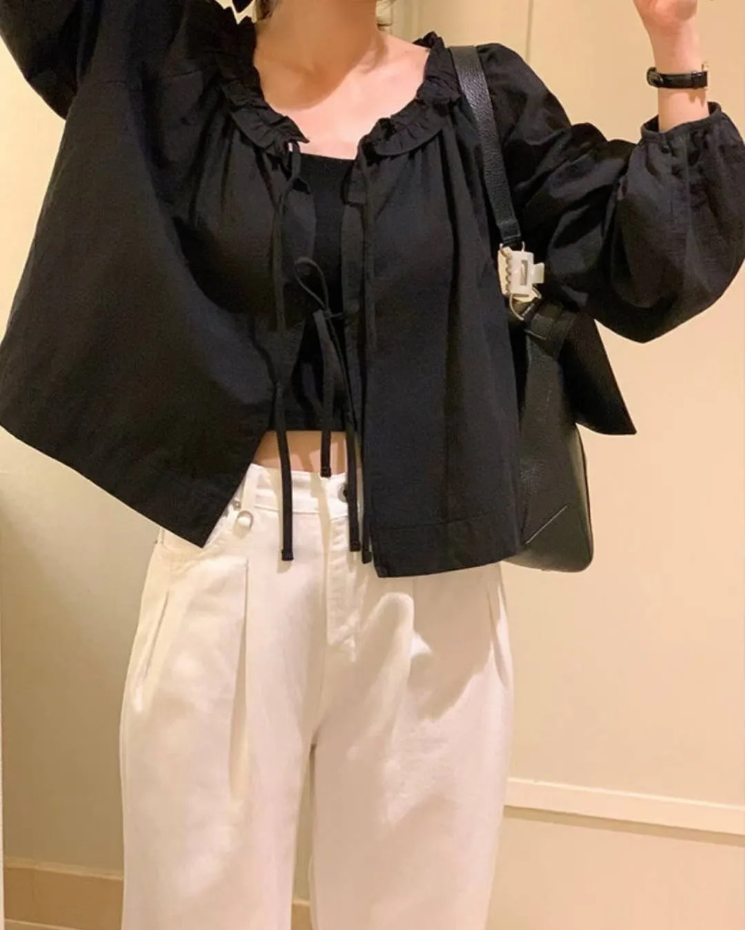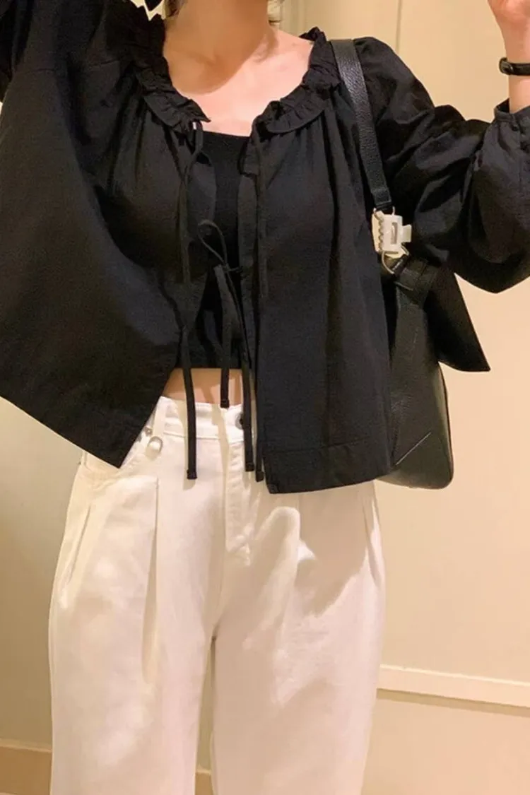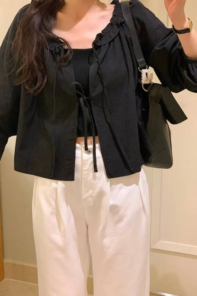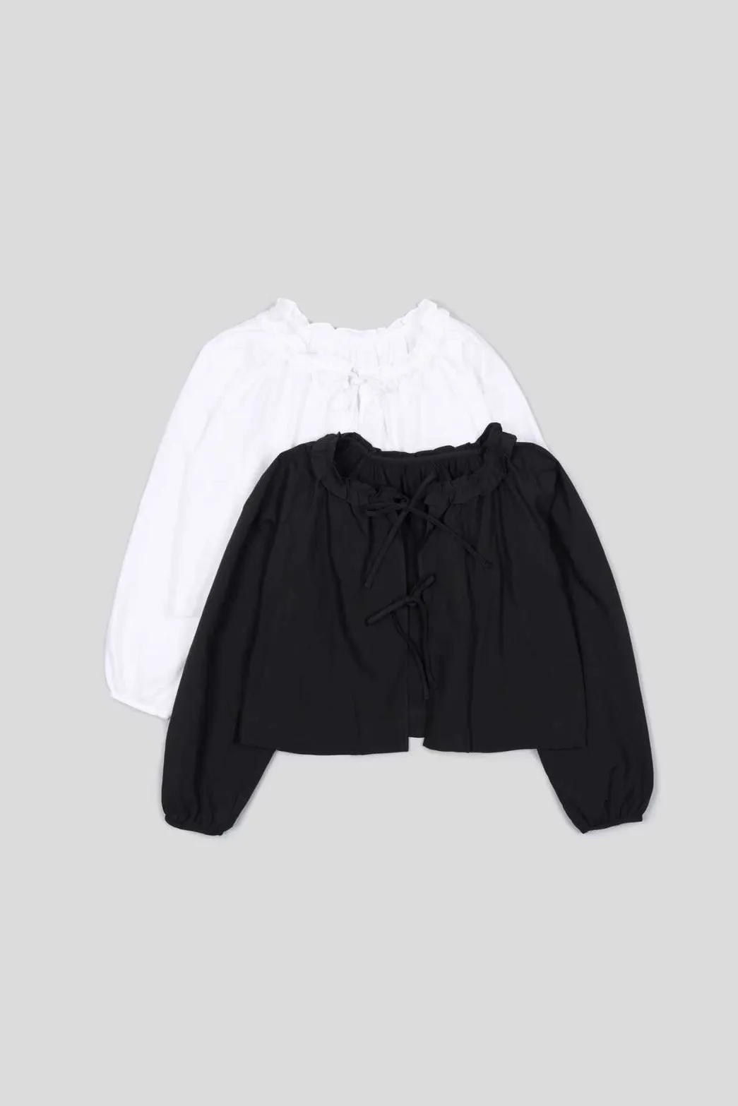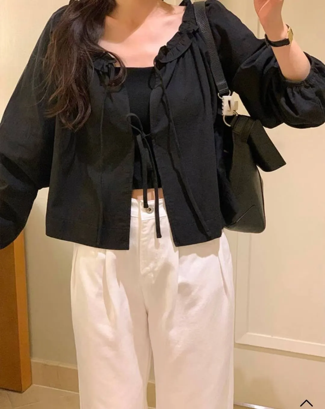 棉 雙綁帶 罩衫式上衣 花朵領 可上衣可外套 L號友善