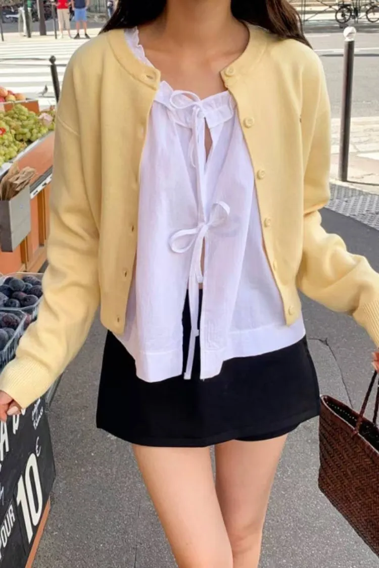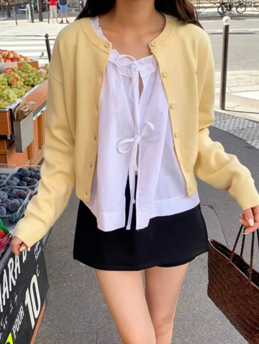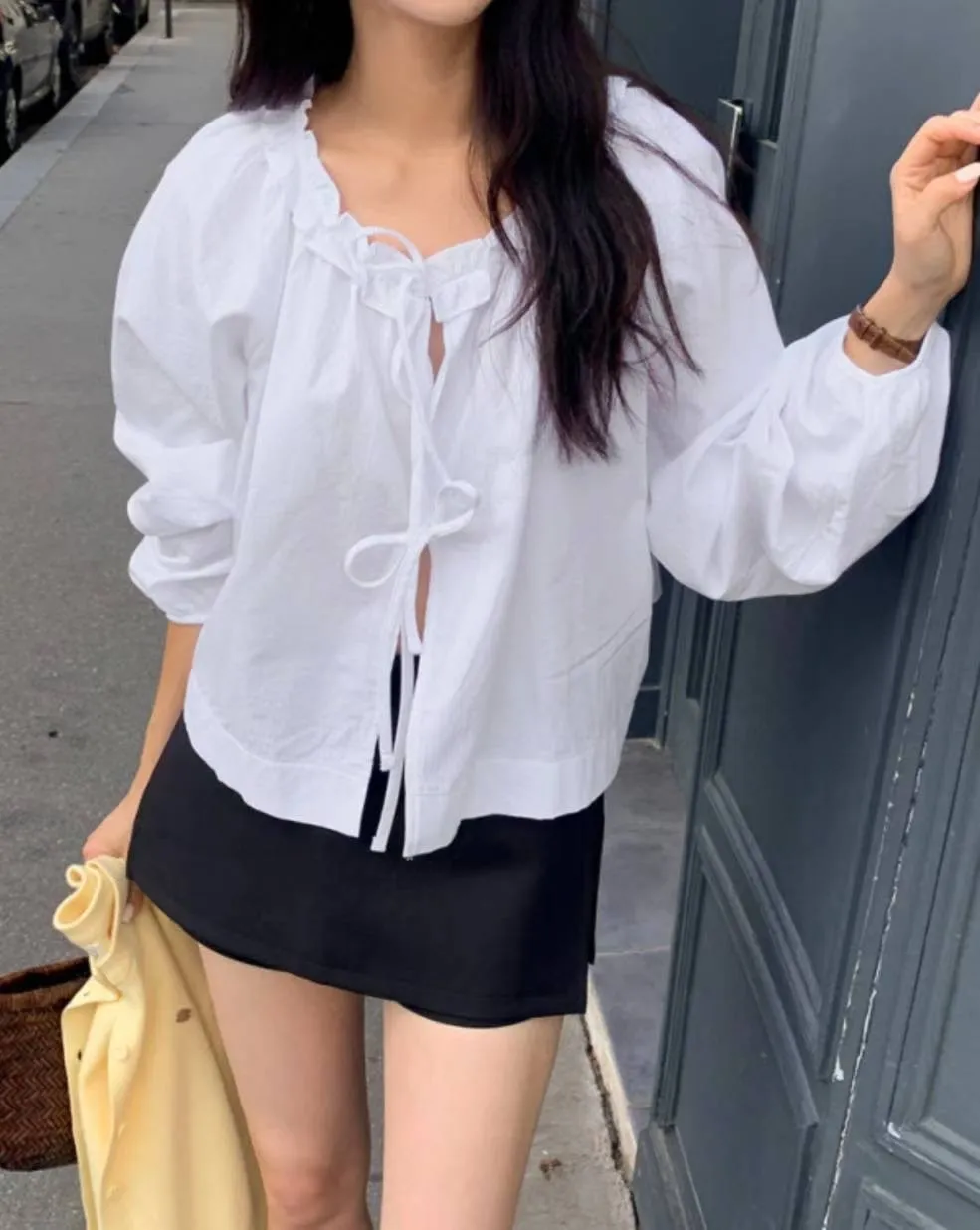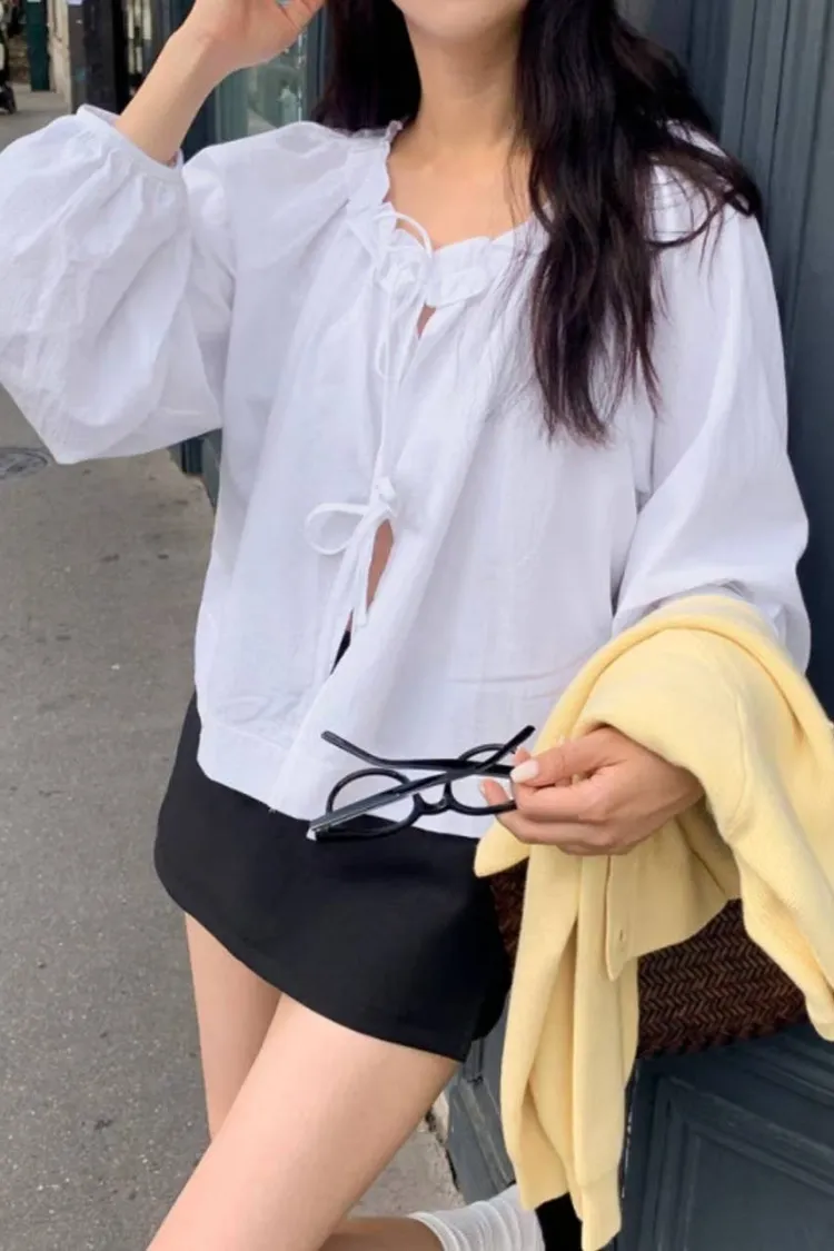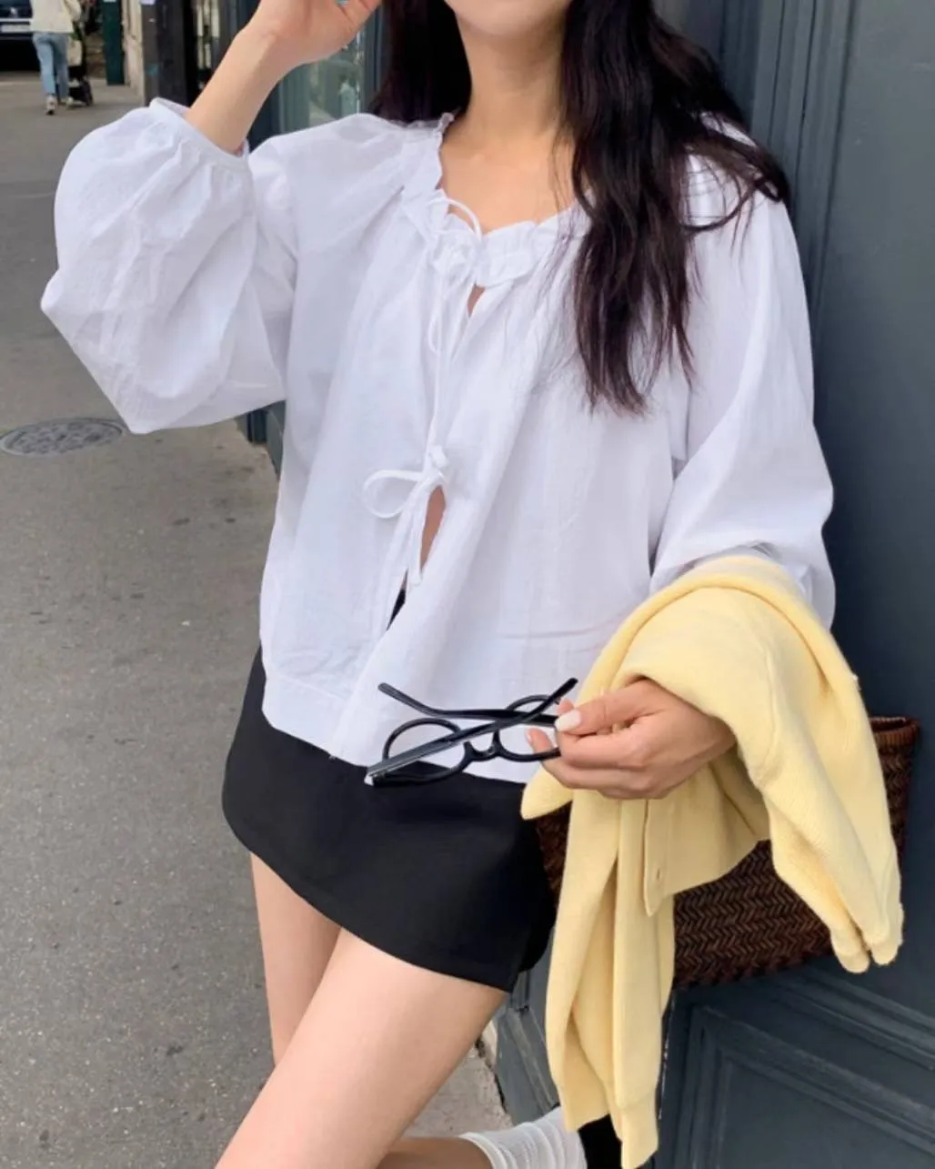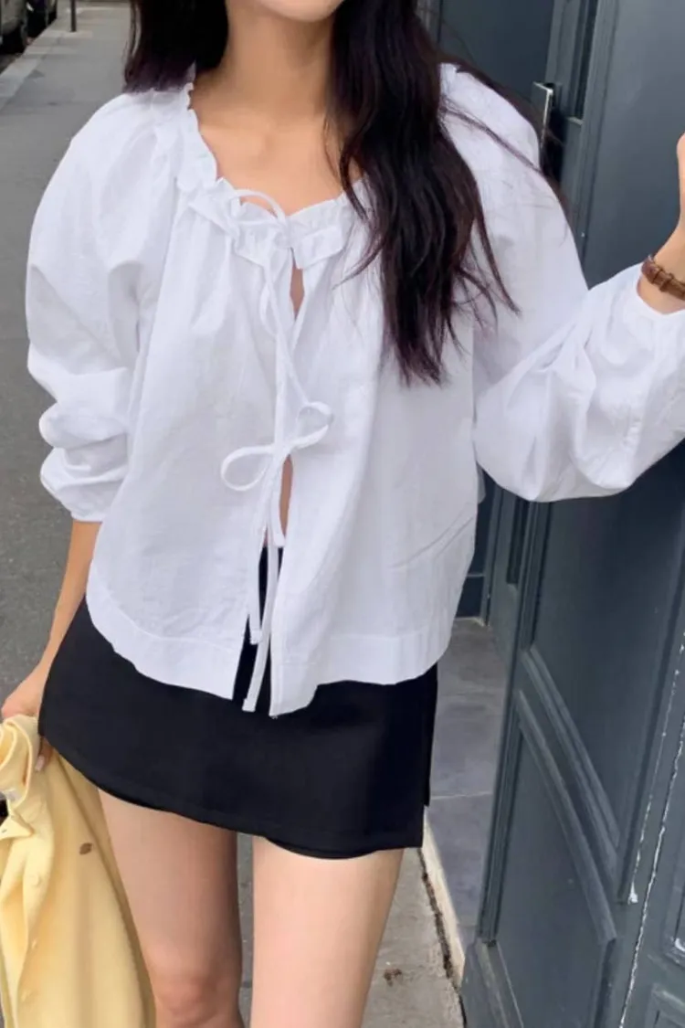 棉 雙綁帶 罩衫式上衣 花朵領 可上衣可外套 L號友善