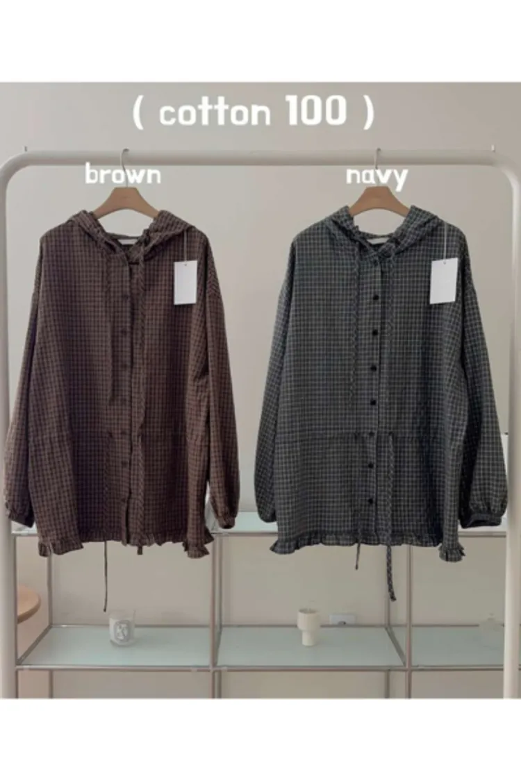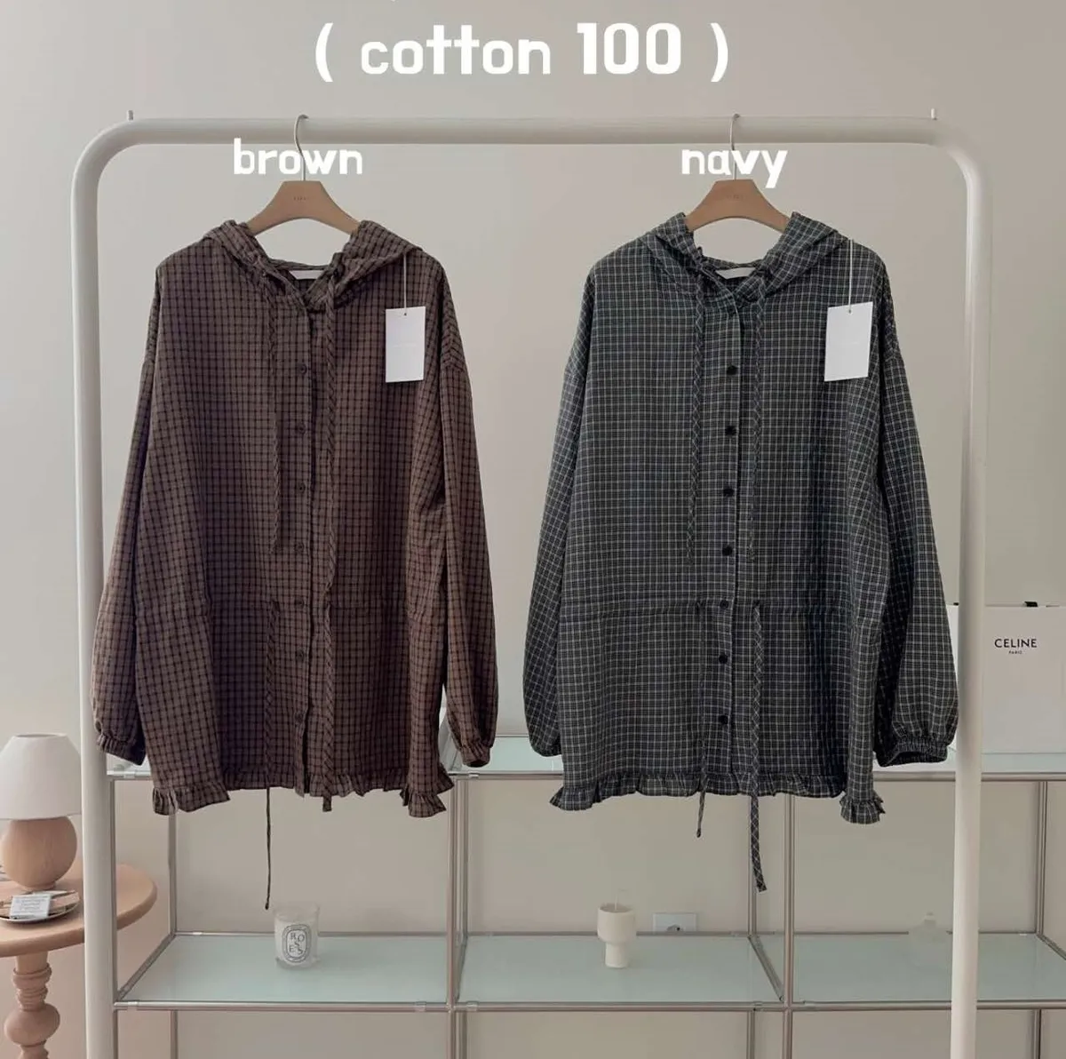 MK505加開款細格紋連帽洋裝 咖 藍 官網價$1350