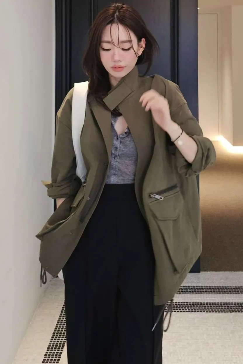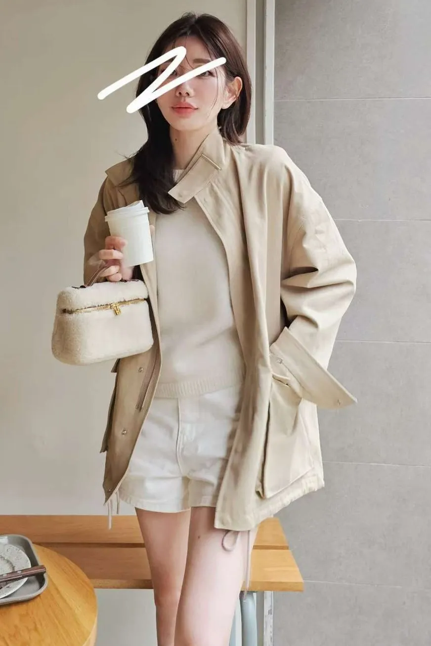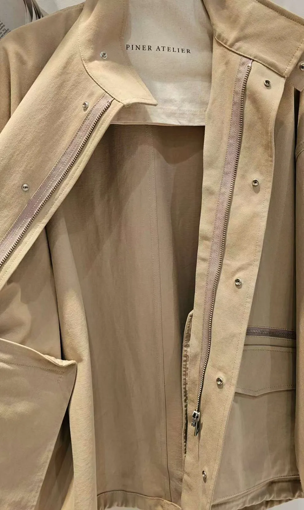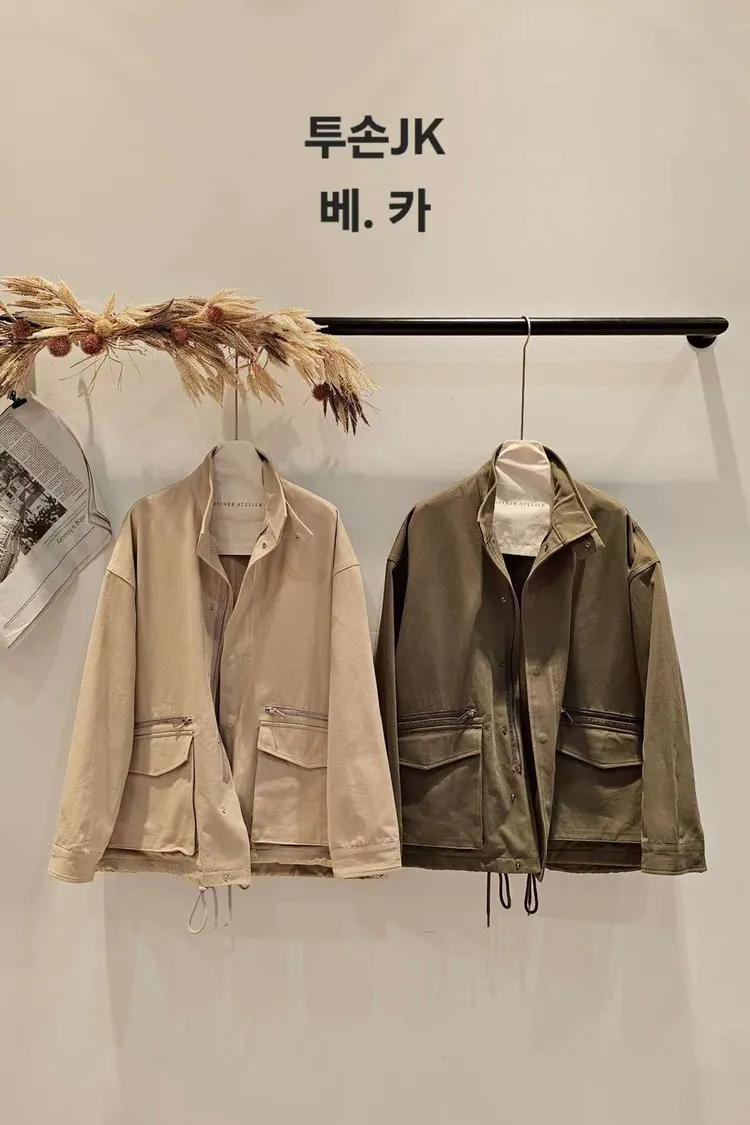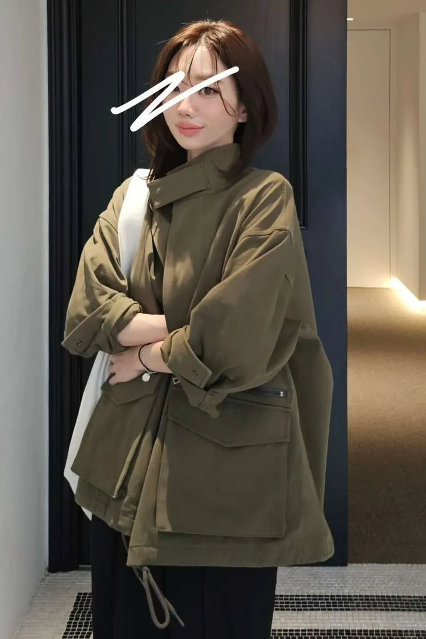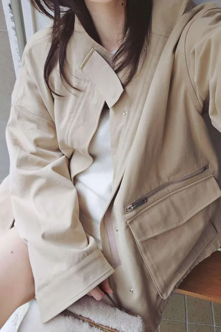 棉 巴恩風夾克 休閒時髦 下擺抽繩 小立領 拉鍊穿脫 有口袋 無內裡