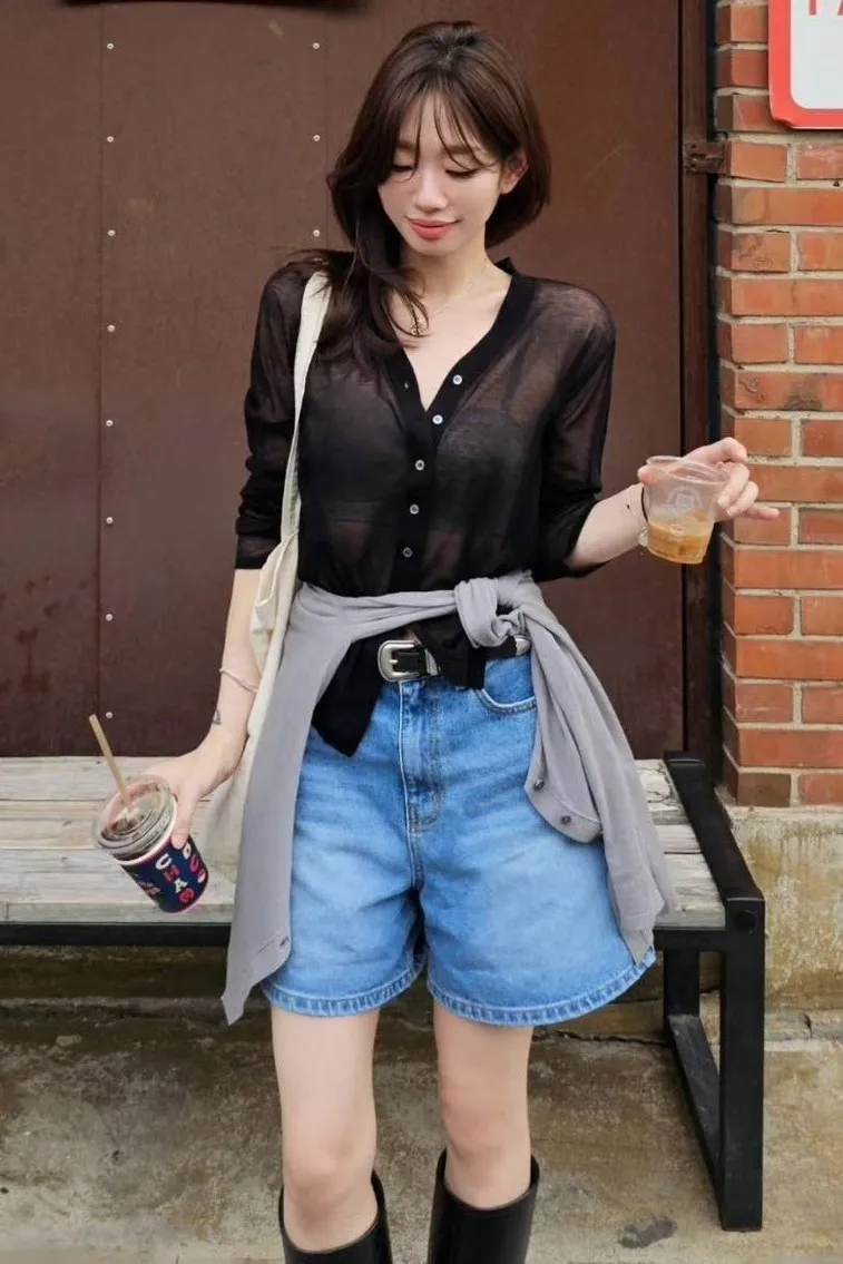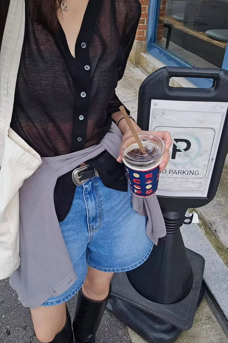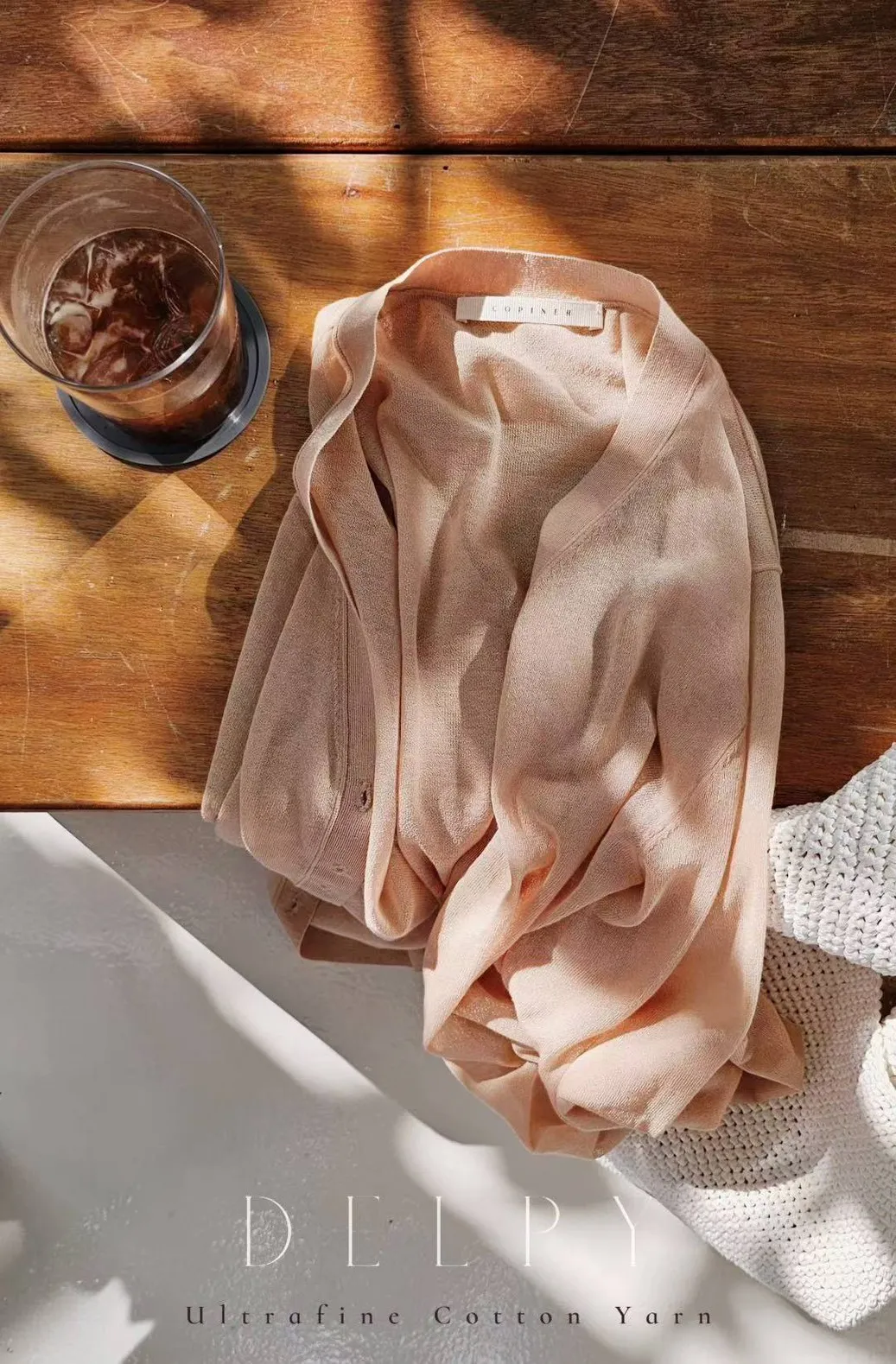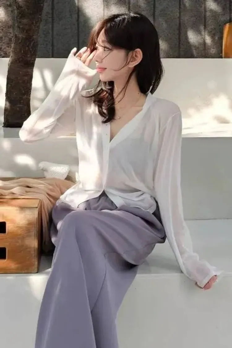 超細精梳棉82%+尼龍 柔滑如絲 透肌薄紗輕盈 下擺開叉 珍珠母貝釦