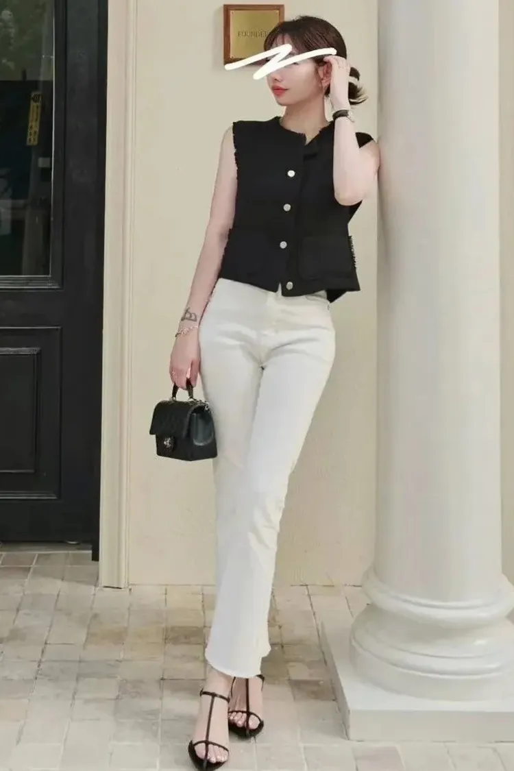 棉+彈力 高級日本彈力棉 親膚有彈性 釦鍊穿脫 中高腰小直筒
