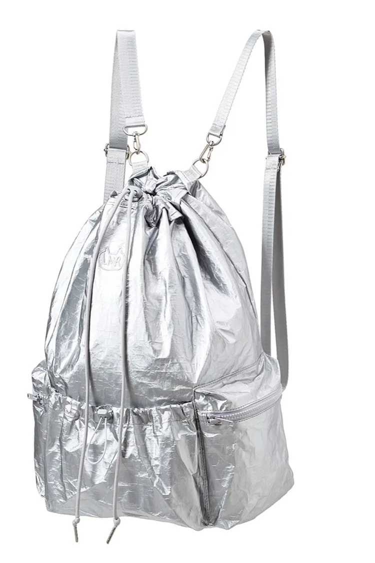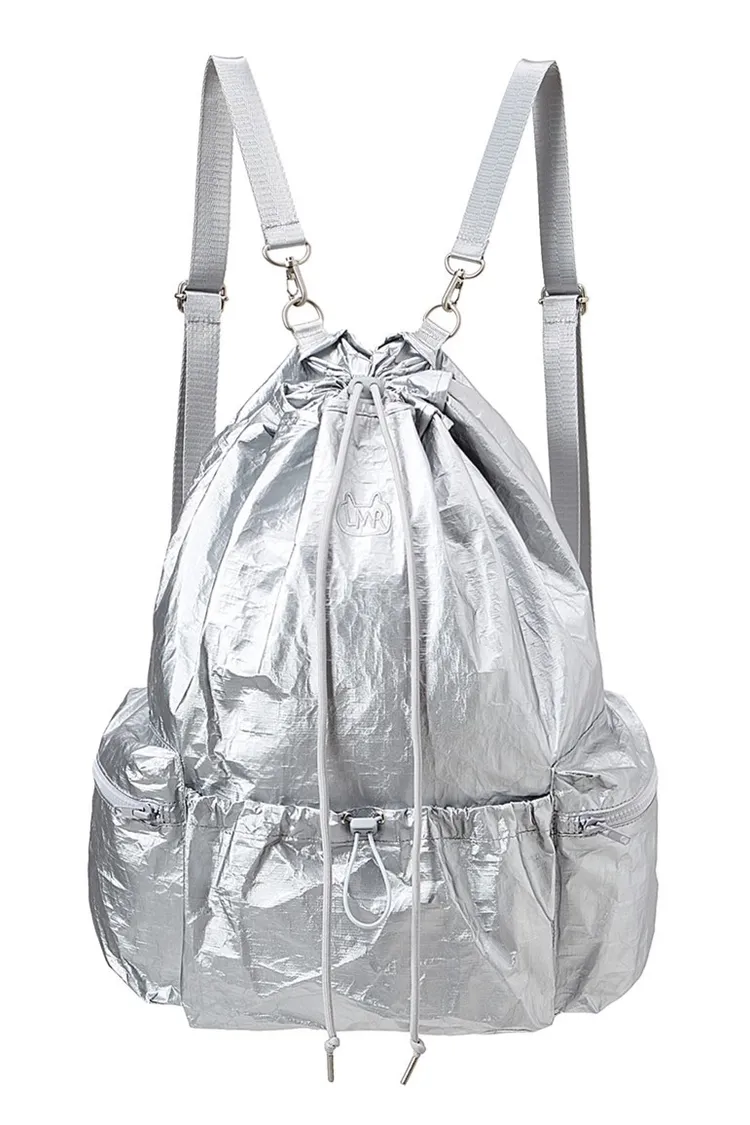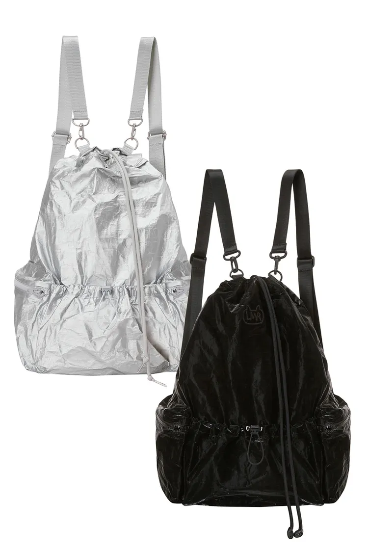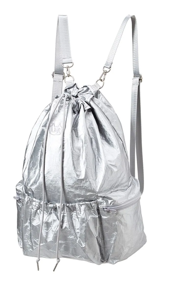 外層尼龍 內層斜紋棉 內有暗袋 抽繩閉合 可雙肩背 質地輕盈 容量大