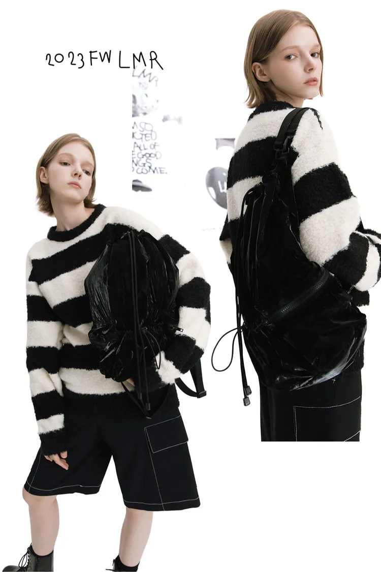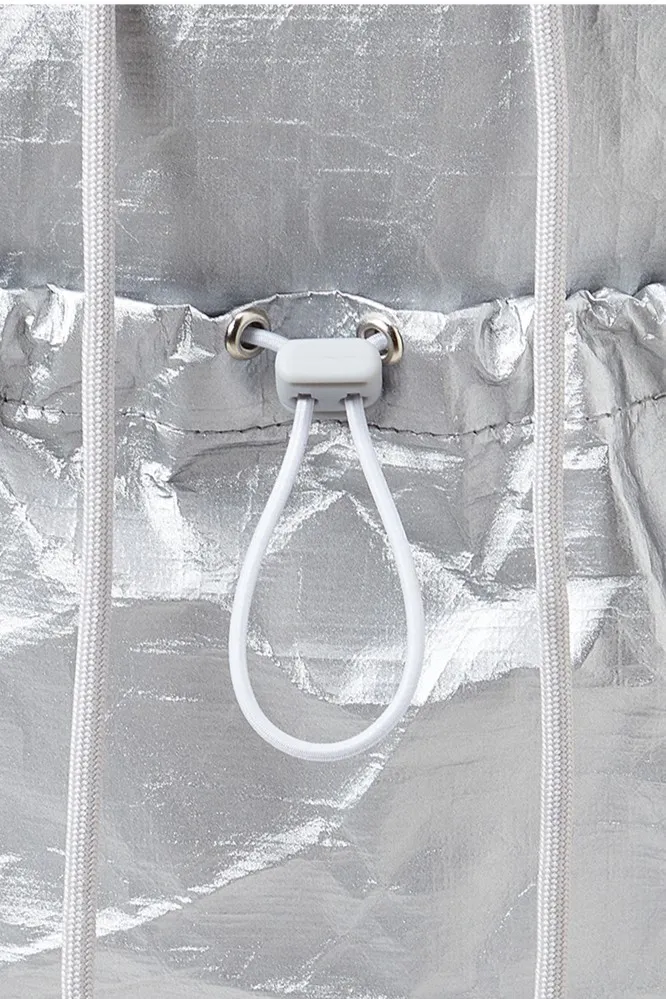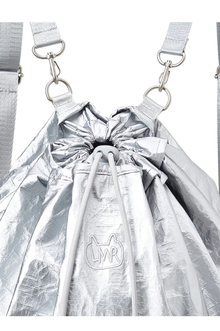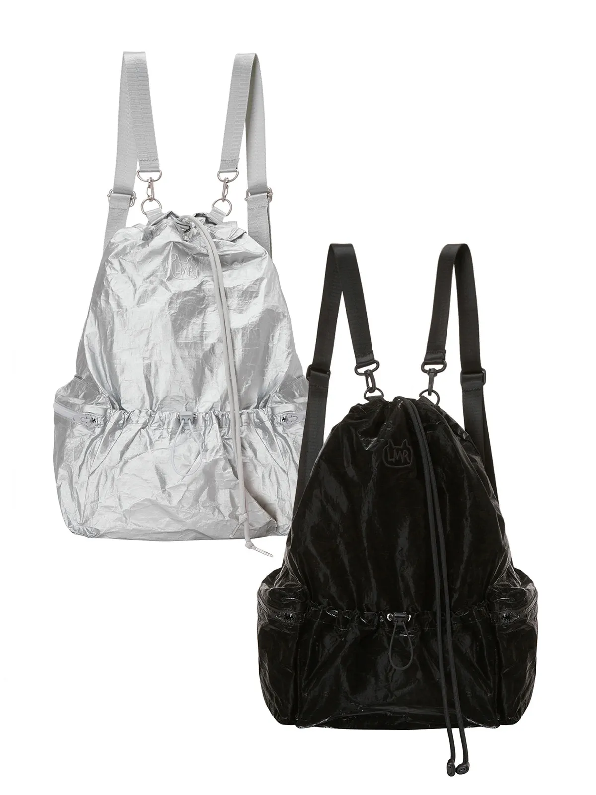 外層尼龍 內層斜紋棉 內有暗袋 抽繩閉合 可雙肩背 質地輕盈 容量大