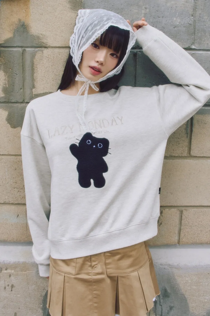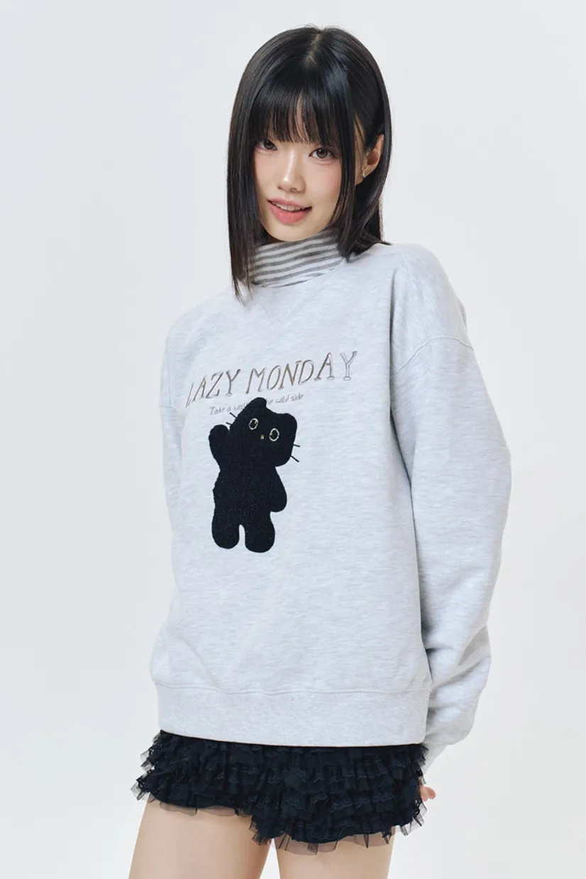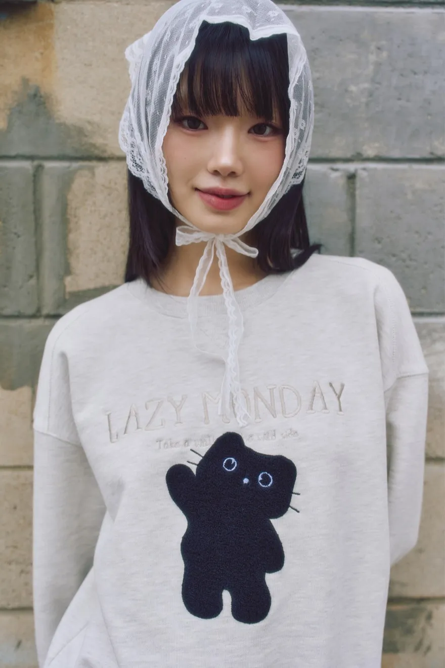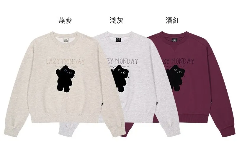 棉+聚酯 無刷毛 台灣天氣合適 絨毛貓貓 英文lazy monday