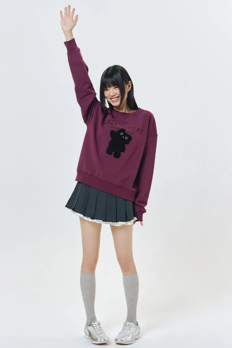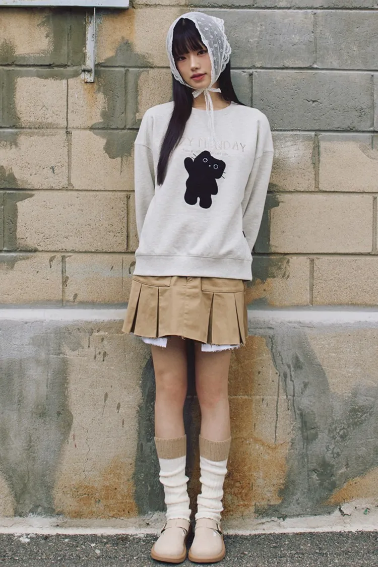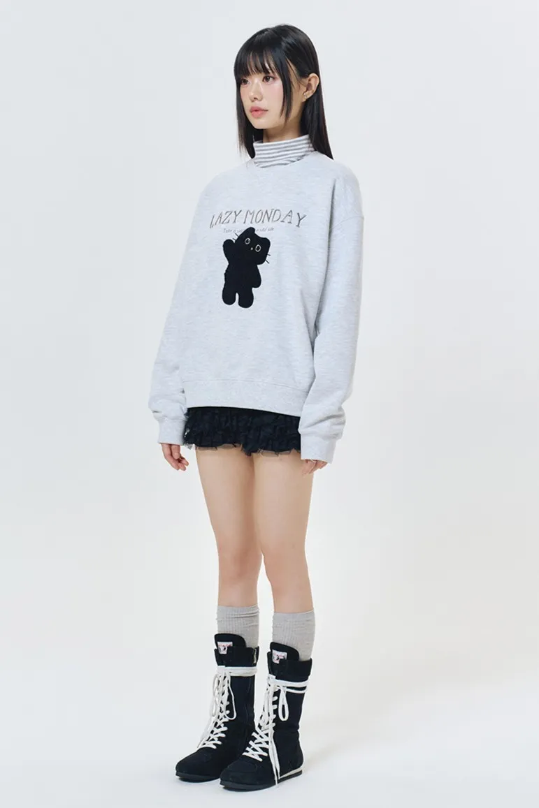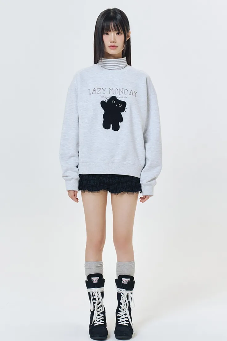 棉+聚酯 無刷毛 台灣天氣合適 絨毛貓貓 英文lazy monday